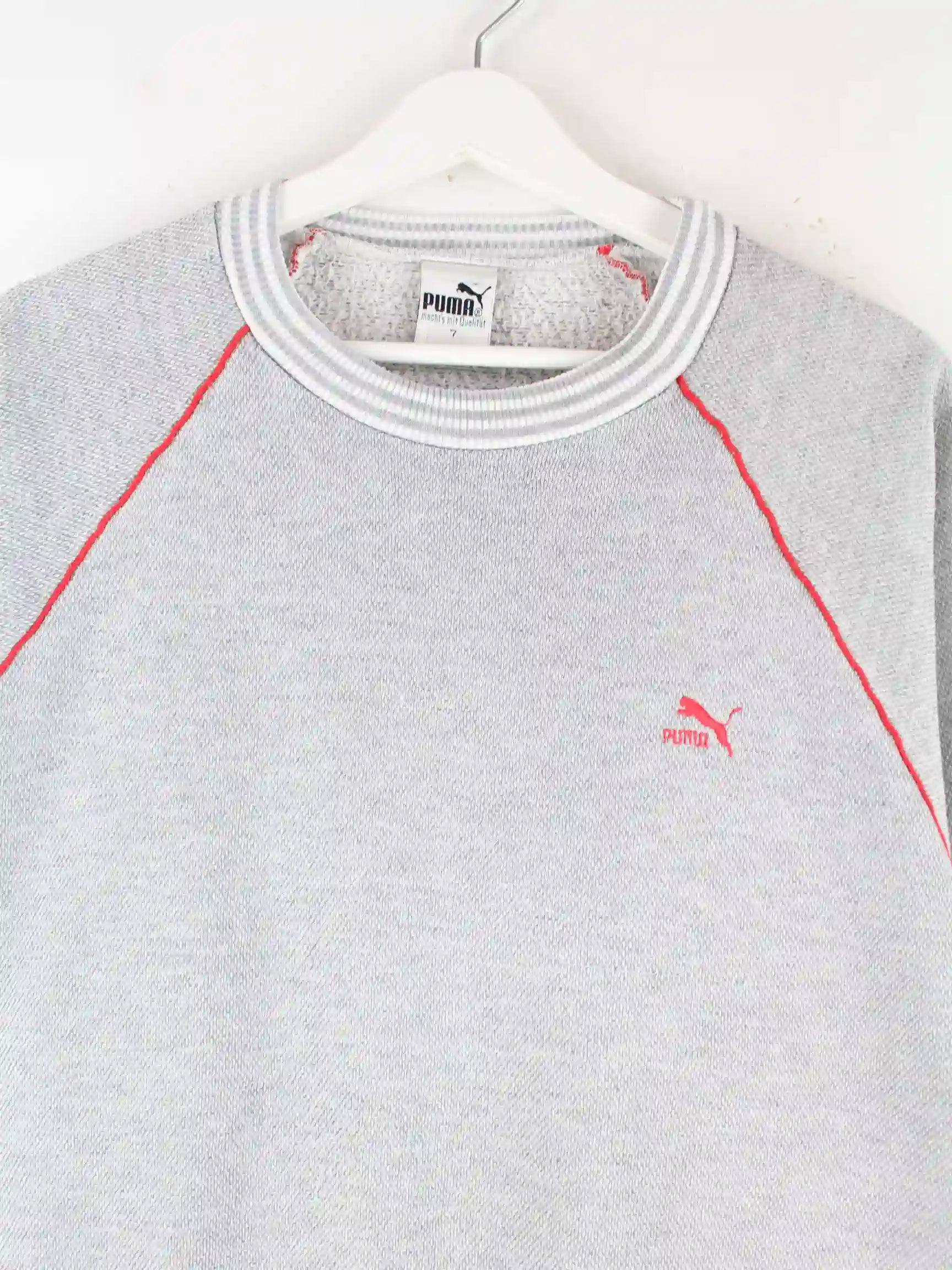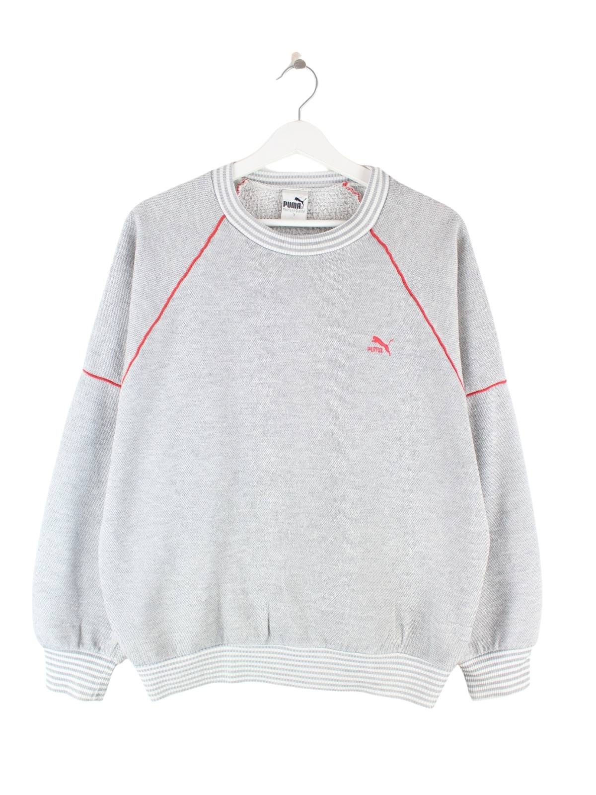 Sweater vom Label Puma in Größe M aus den 80'ern. Er ist aus einer Baumwollmischung gemacht und in Grau vorrätig.