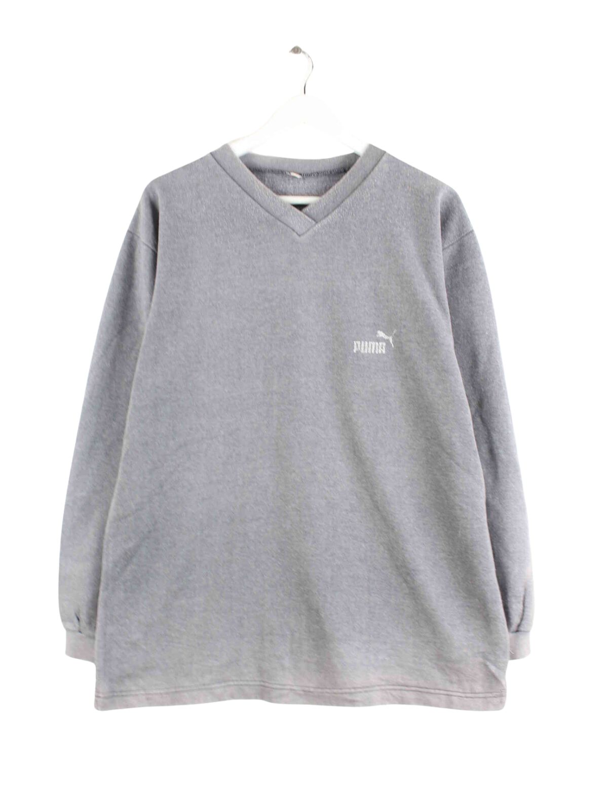 Sweater der Brand Puma in Größe L aus den 80'ern. Er ist aus einer Baumwollmischung gefertigt und in Grau auf Lager.