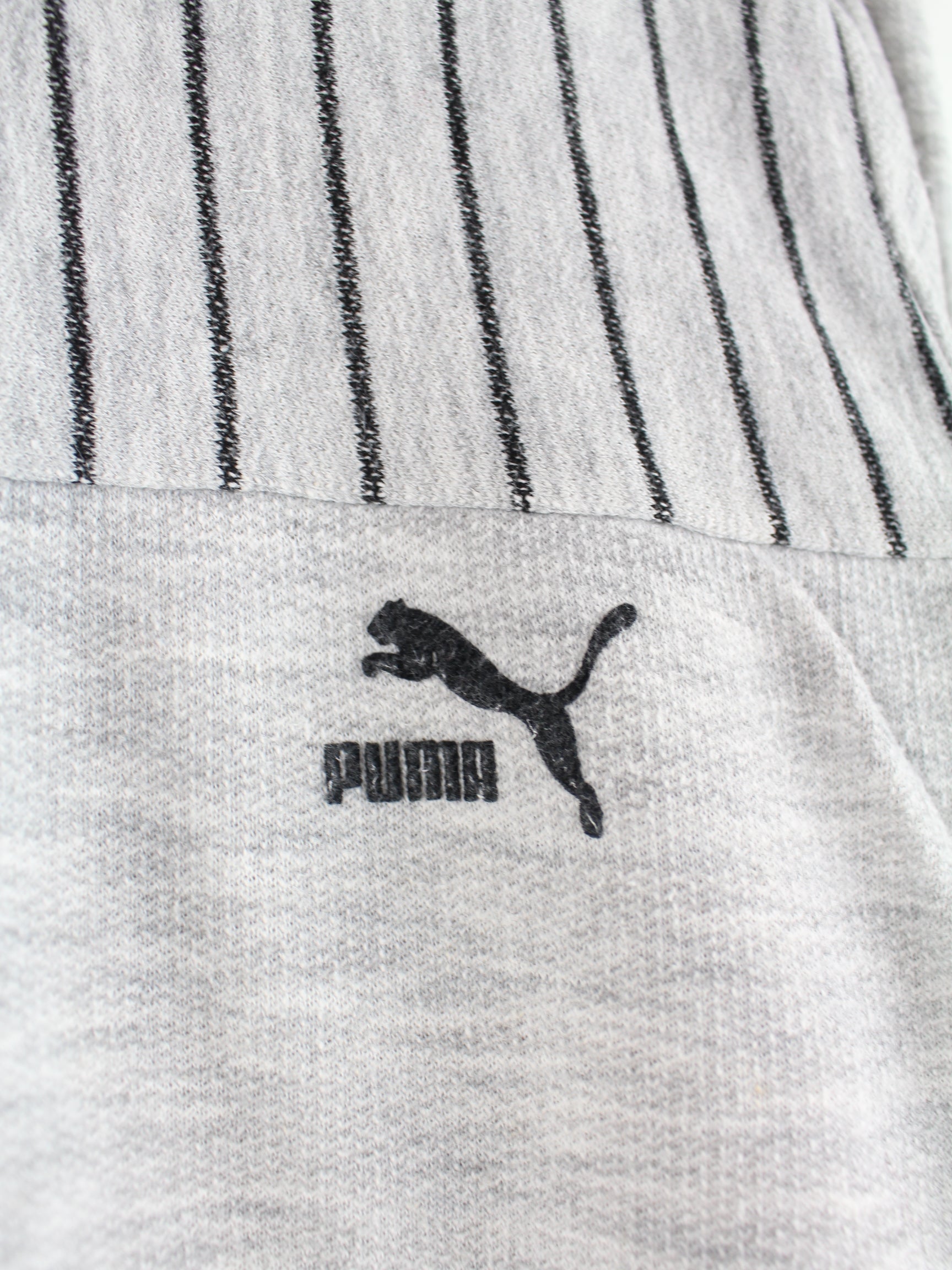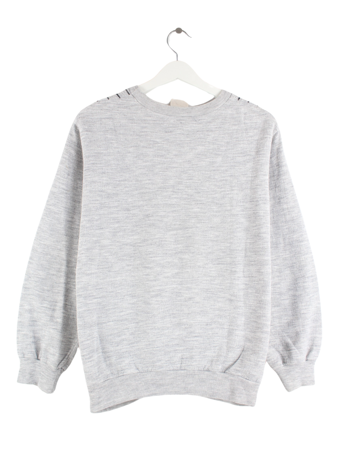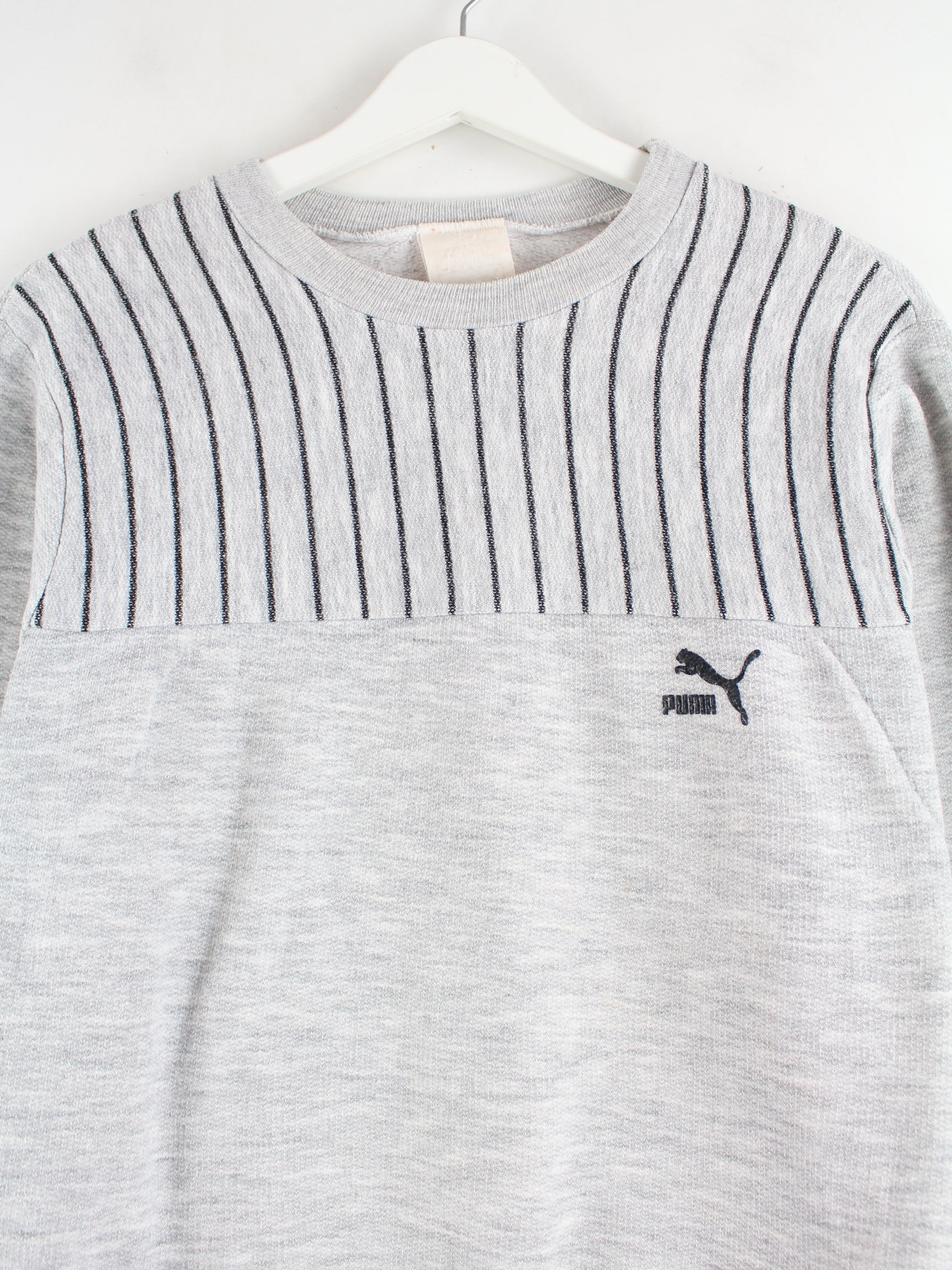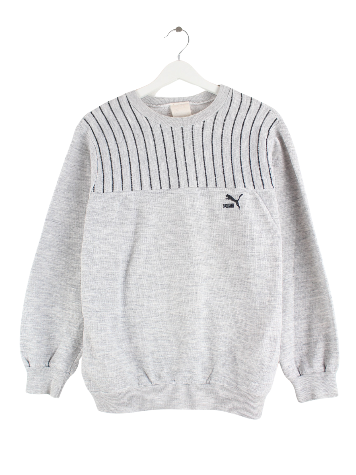 Grauer Sweater der Brand Puma aus den 80'ern in Größe S. Er ist aus einer Baumwollmischung hergestellt und in sehr gutem Zustand bei uns zu bekommen.