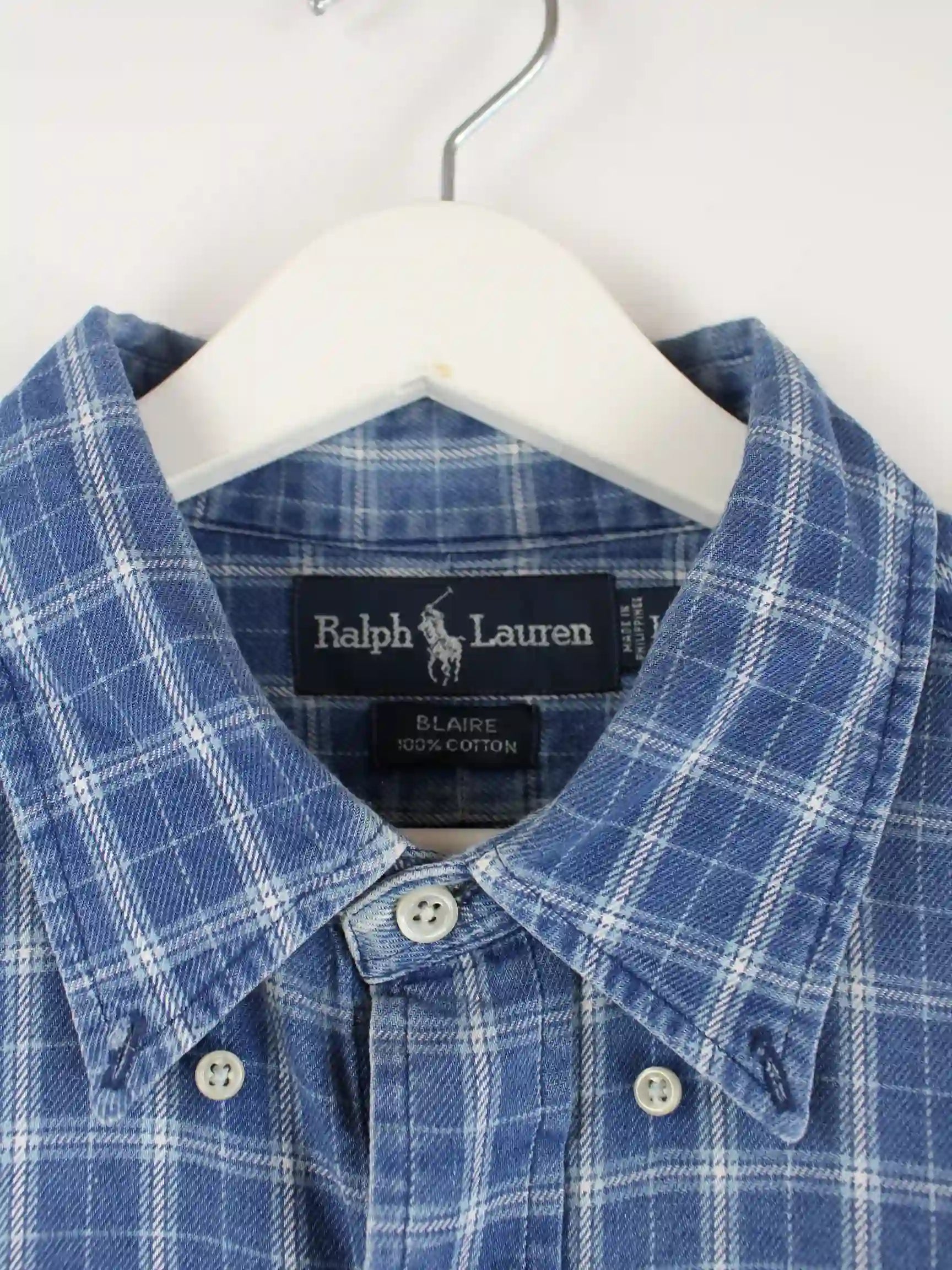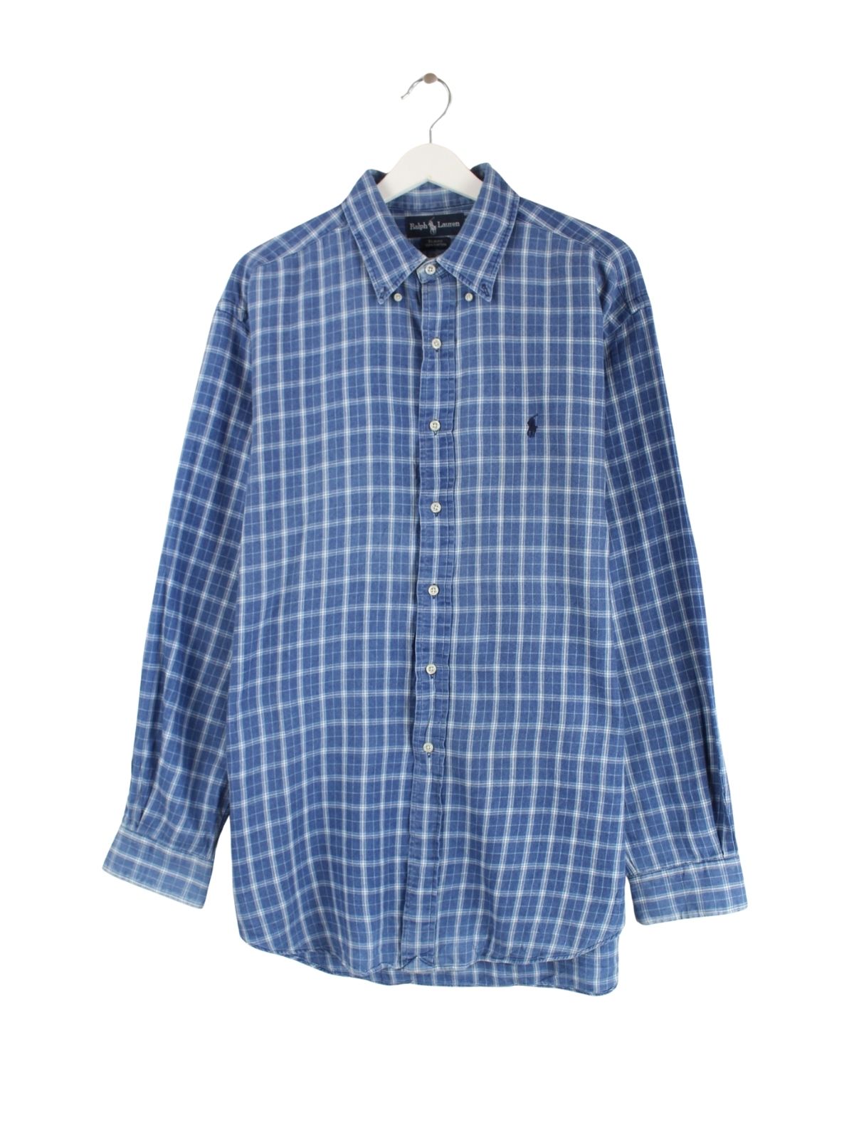 Hemd vom Brand Ralph Lauren in Größe L aus den 90'ern. Es ist aus Baumwolle produziert und in Blau zu bekommen.