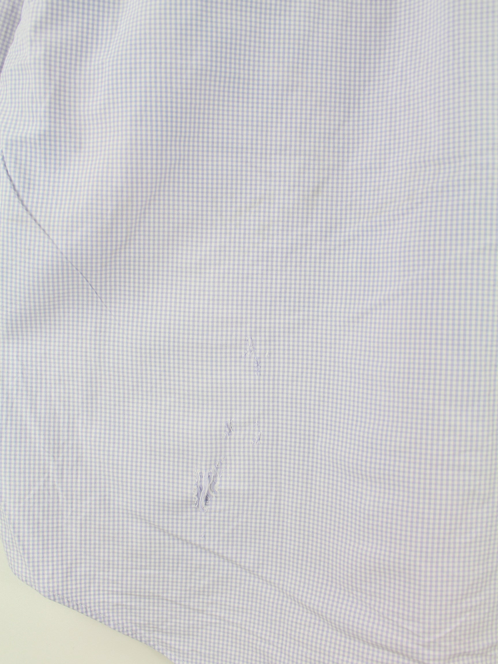 Mängel: Ein Knopf fehlt, der unterste Knopf ist etwas beschädigt und Beschädigung am Rücken (siehe Bilder)