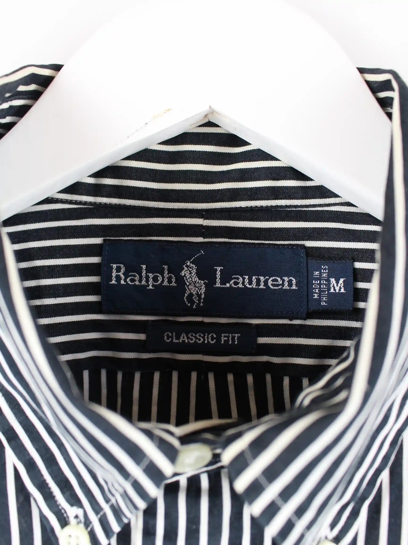 Ralph Lauren 90s Vintage Classic Fit Striped Hemd Schwarz M