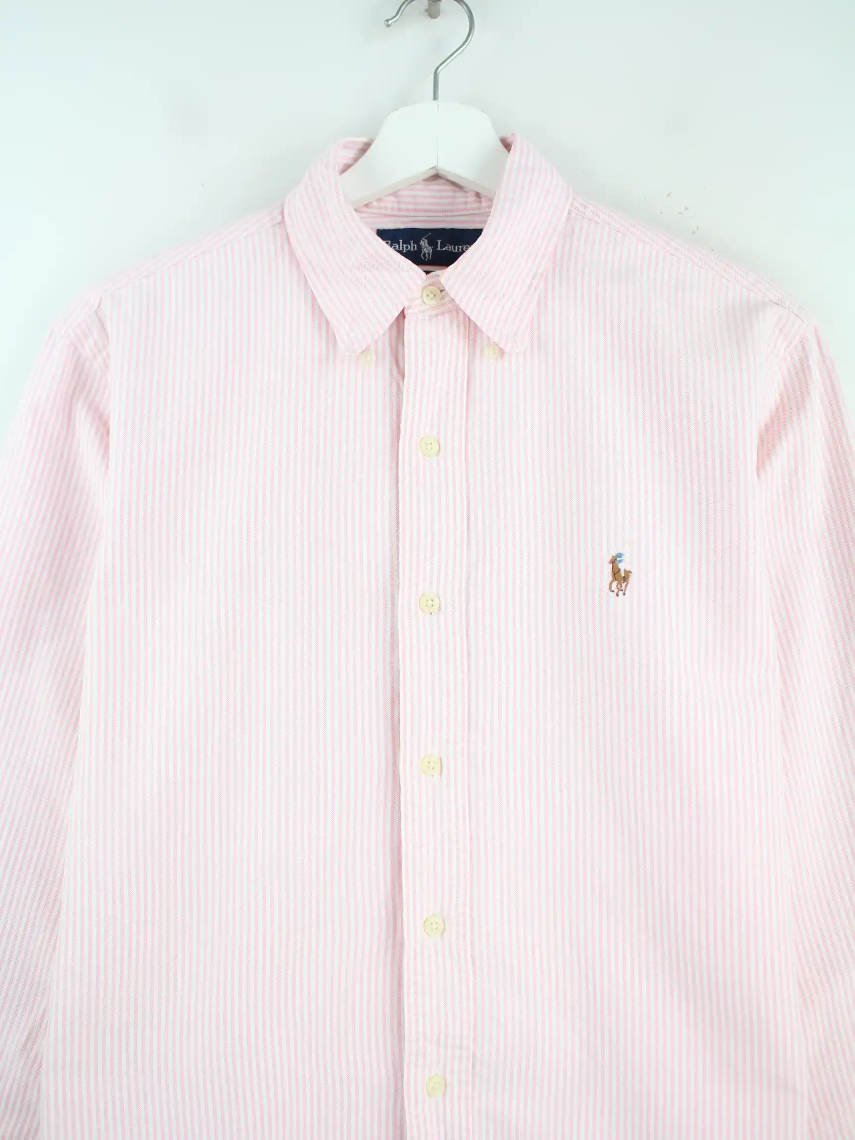 Hemd des Labels Ralph Lauren in Größe M aus den 90'ern. Es ist aus Baumwolle gemacht und in Rosa vorrätig.