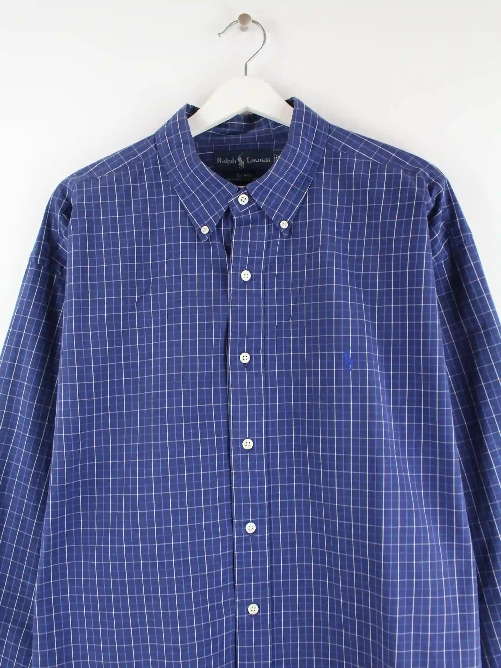 Blaues kariertes Vintage Hemd vom Label Ralph Lauren aus den 90ern in Größe XXL. Es ist aus Baumwolle und in sehr gutem Zustand zu haben.