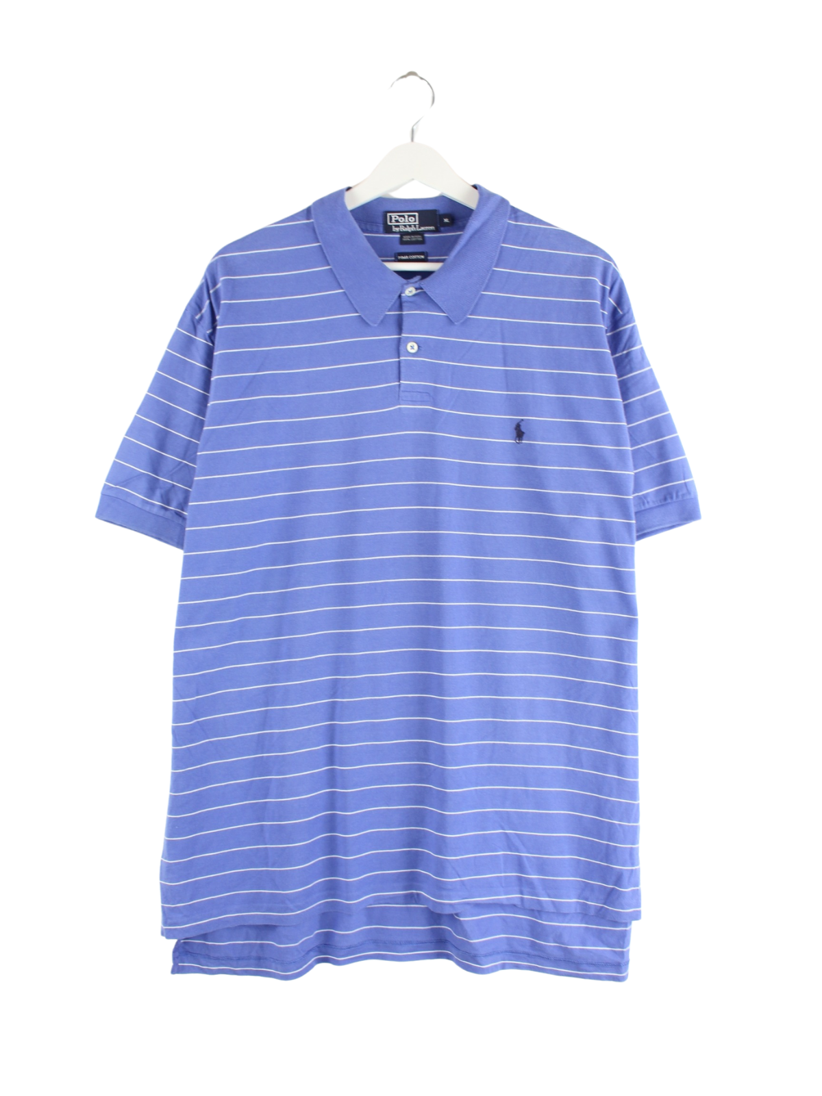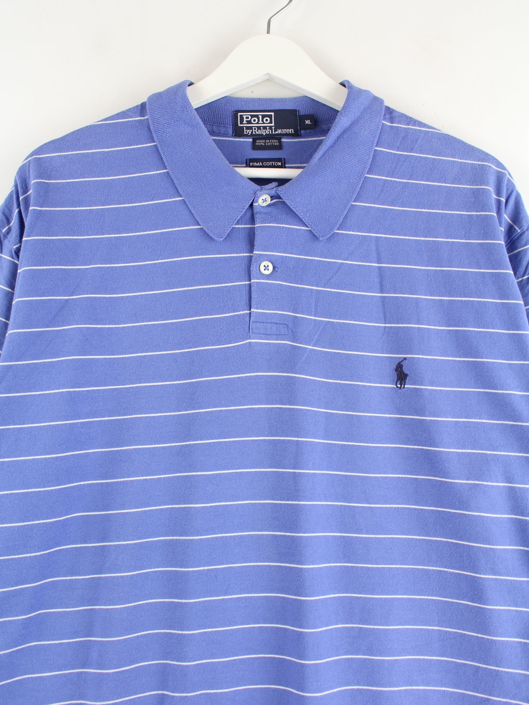 Ralph Lauren 90s Vintage Striped Pima Cotton Polo Blau XL