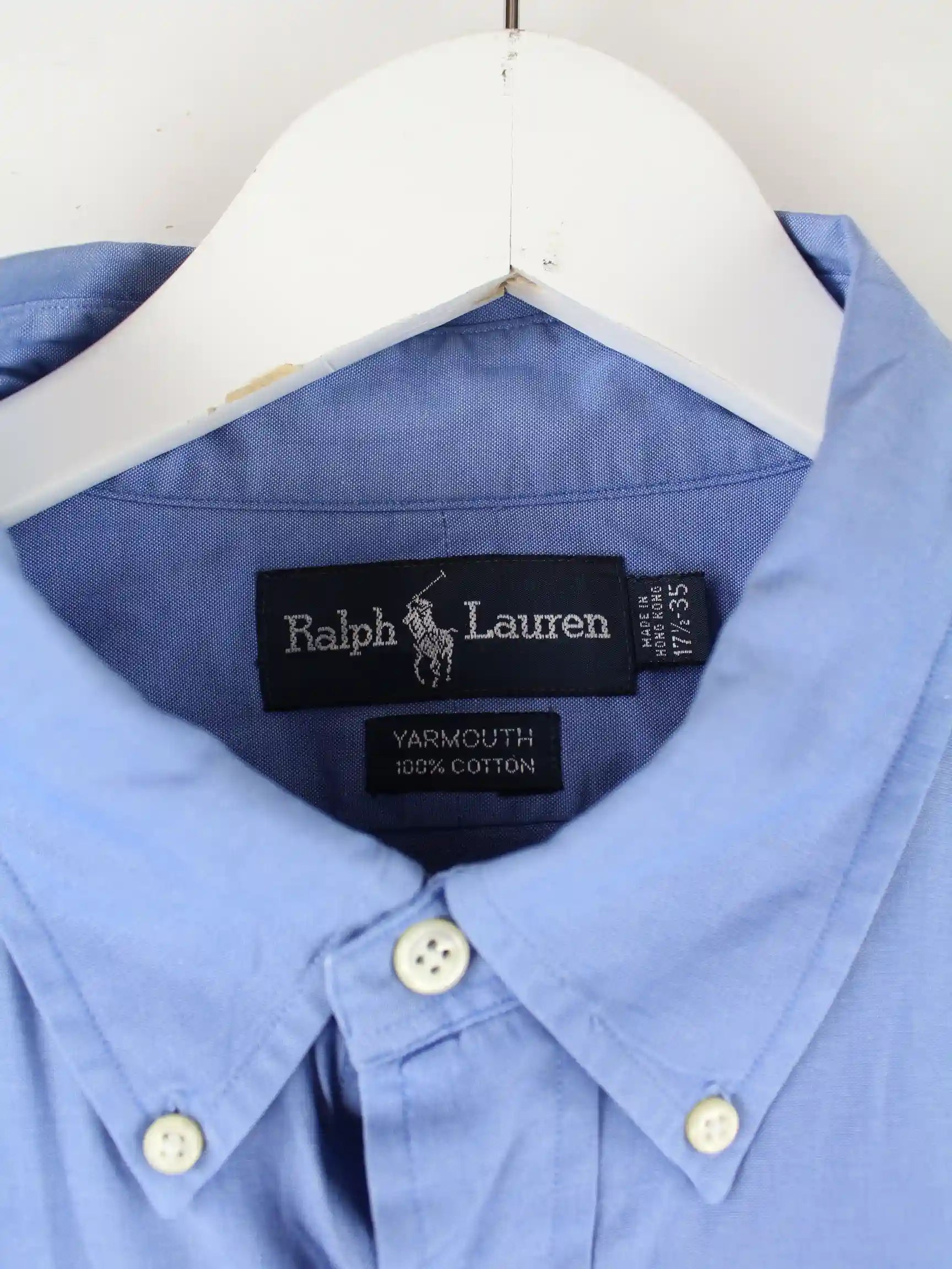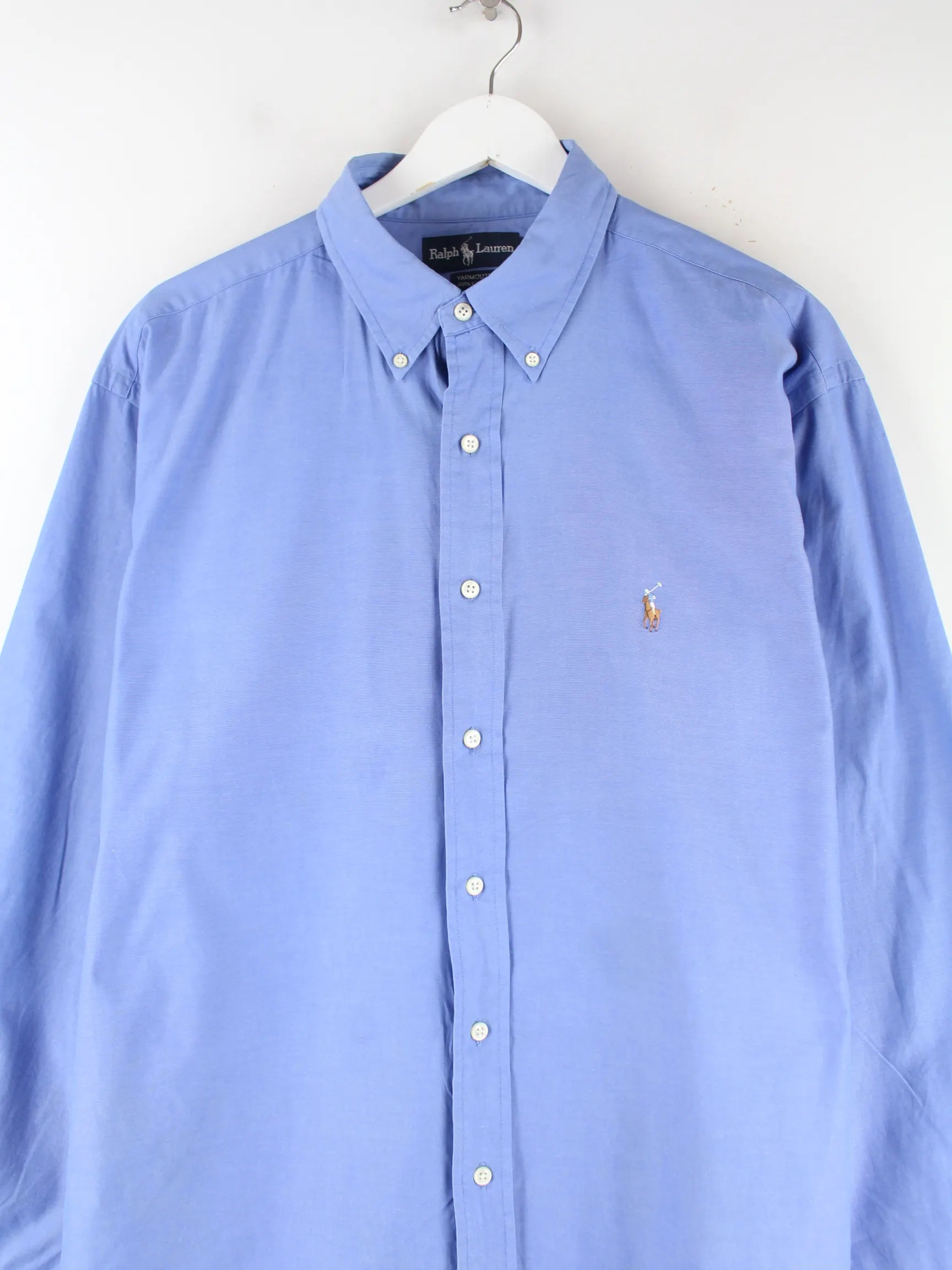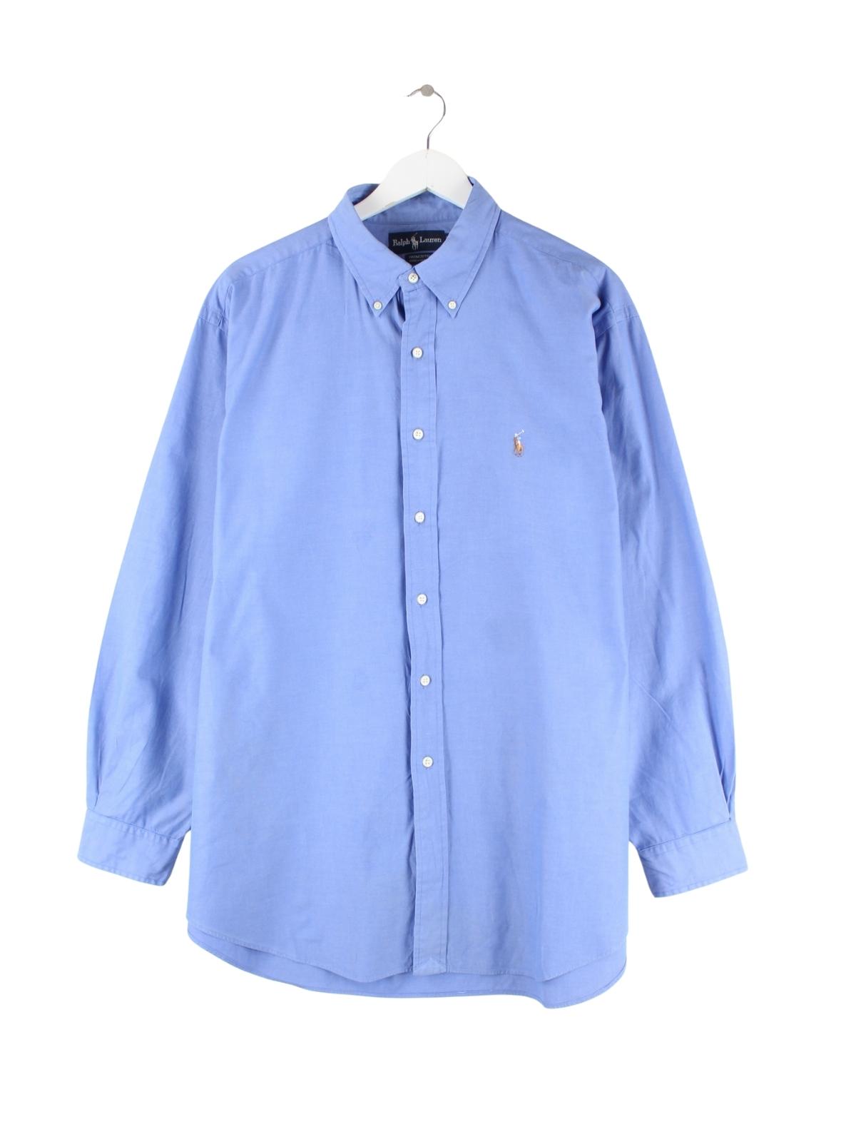Blaues Hemd aus dem Hause Ralph Lauren aus den 90'ern in Größe XL. Es ist aus Baumwolle hergestellt und in gutem Zustand in Stock.