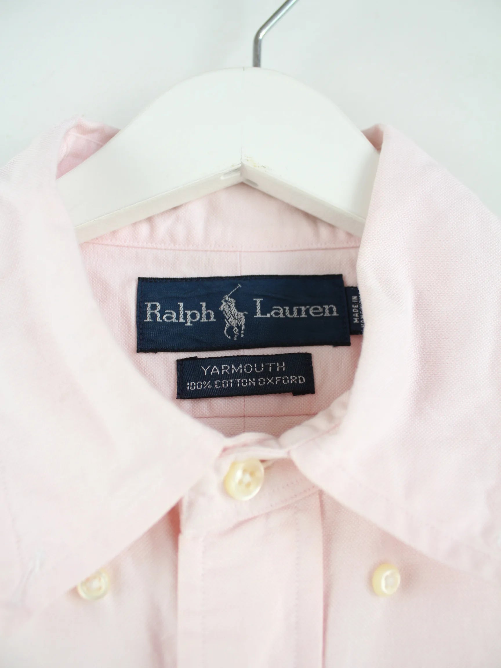 Hemd der Marke Ralph Lauren in Größe M aus den 90'ern. Es ist aus Baumwolle gemacht und in Rosa im Bestand.