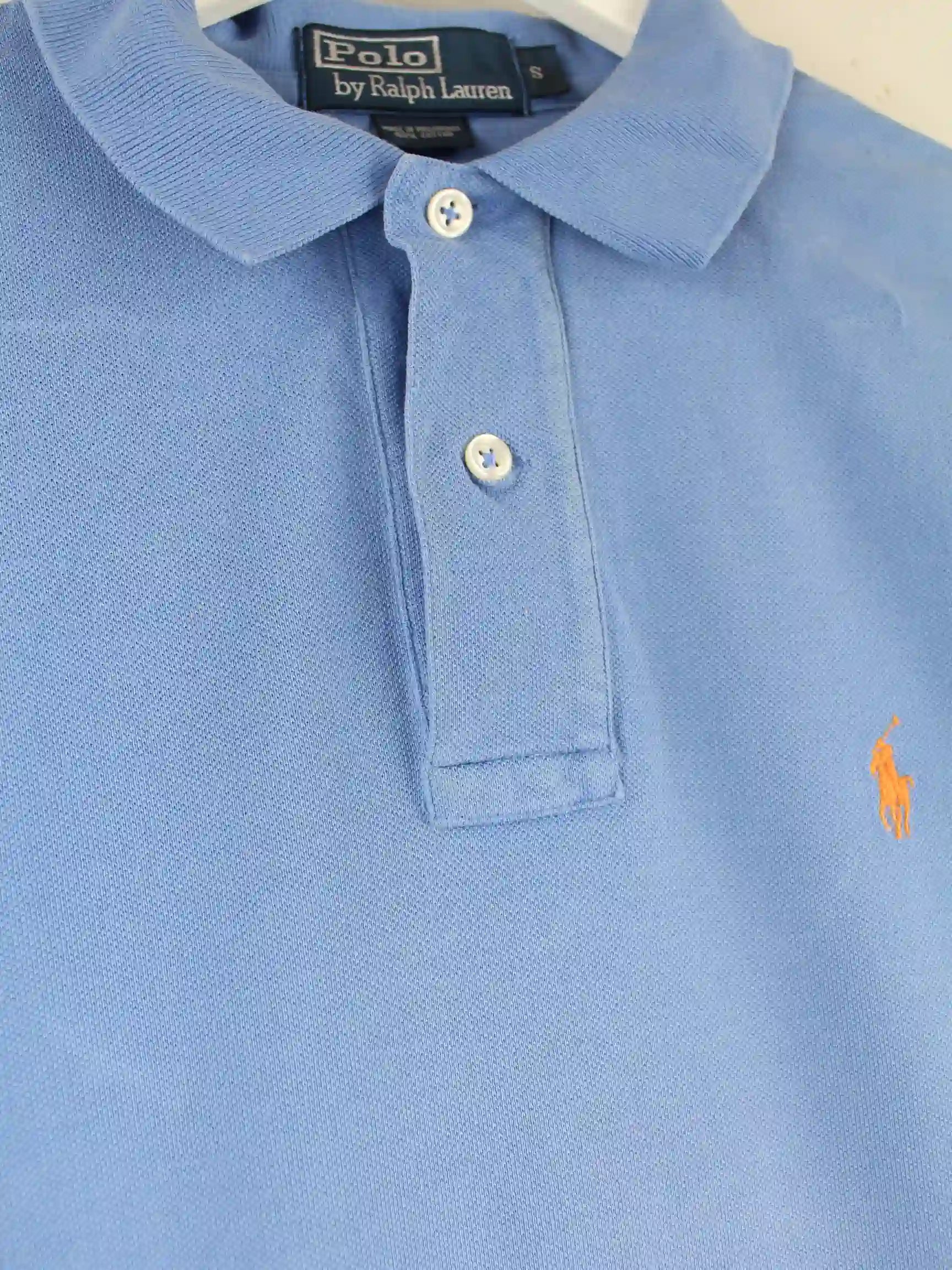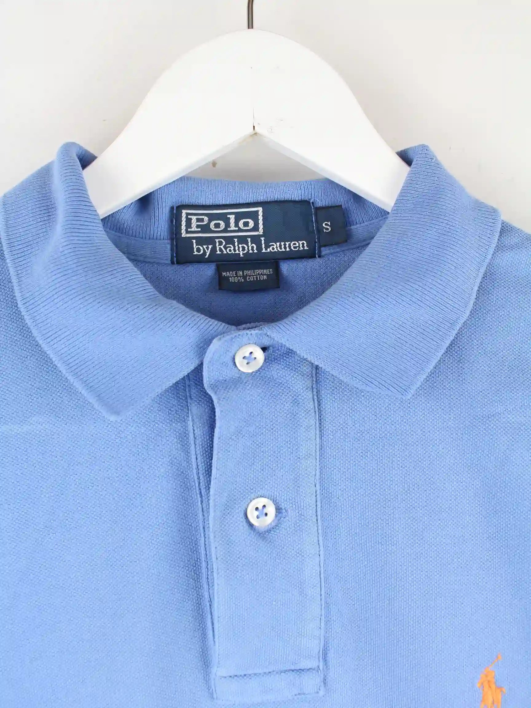 Blaues Poloshirt vom Brand Ralph Lauren aus den 90'ern in Größe S. Es ist aus Baumwolle hergestellt und in gutem Zustand zu bekommen.