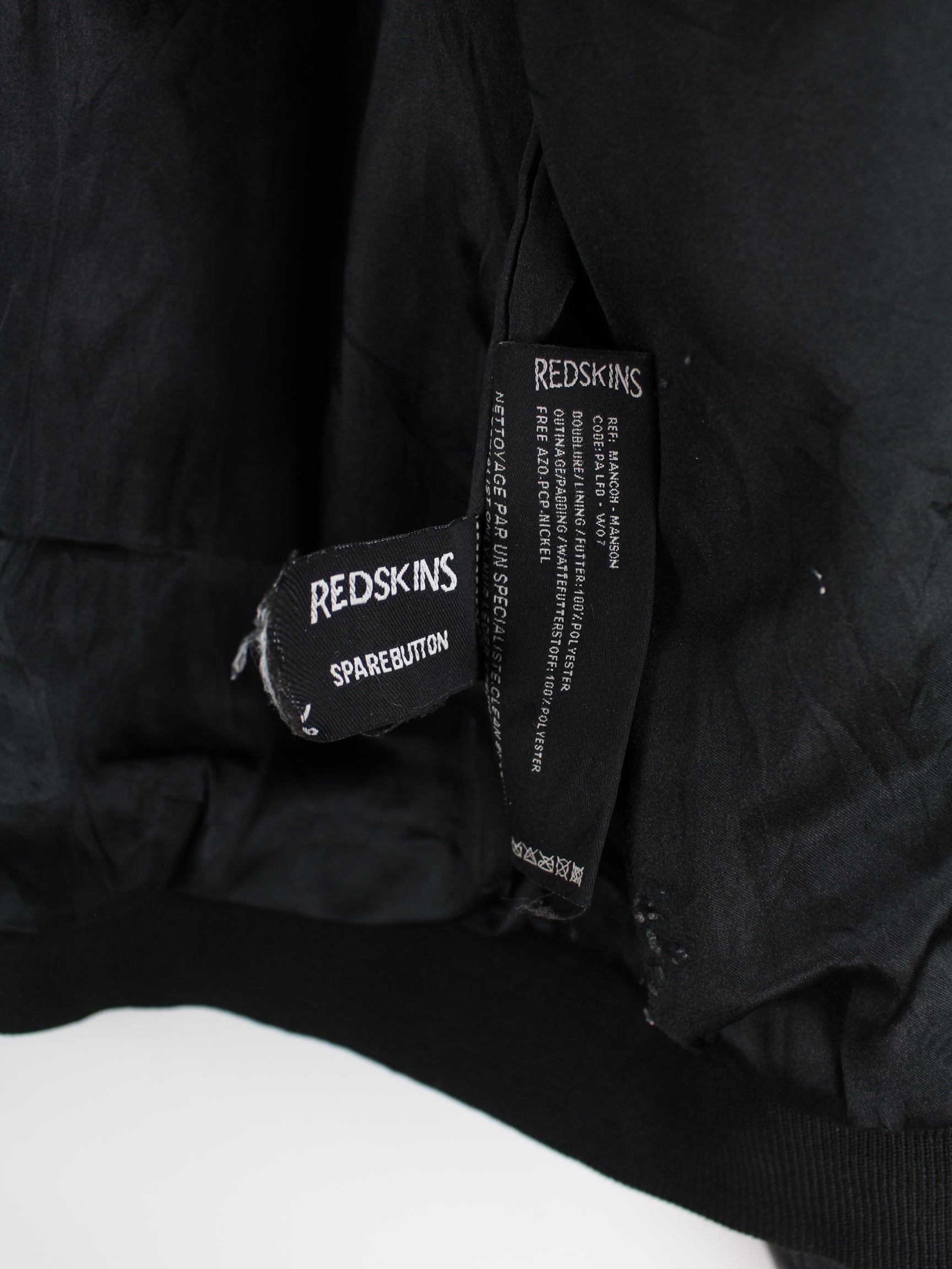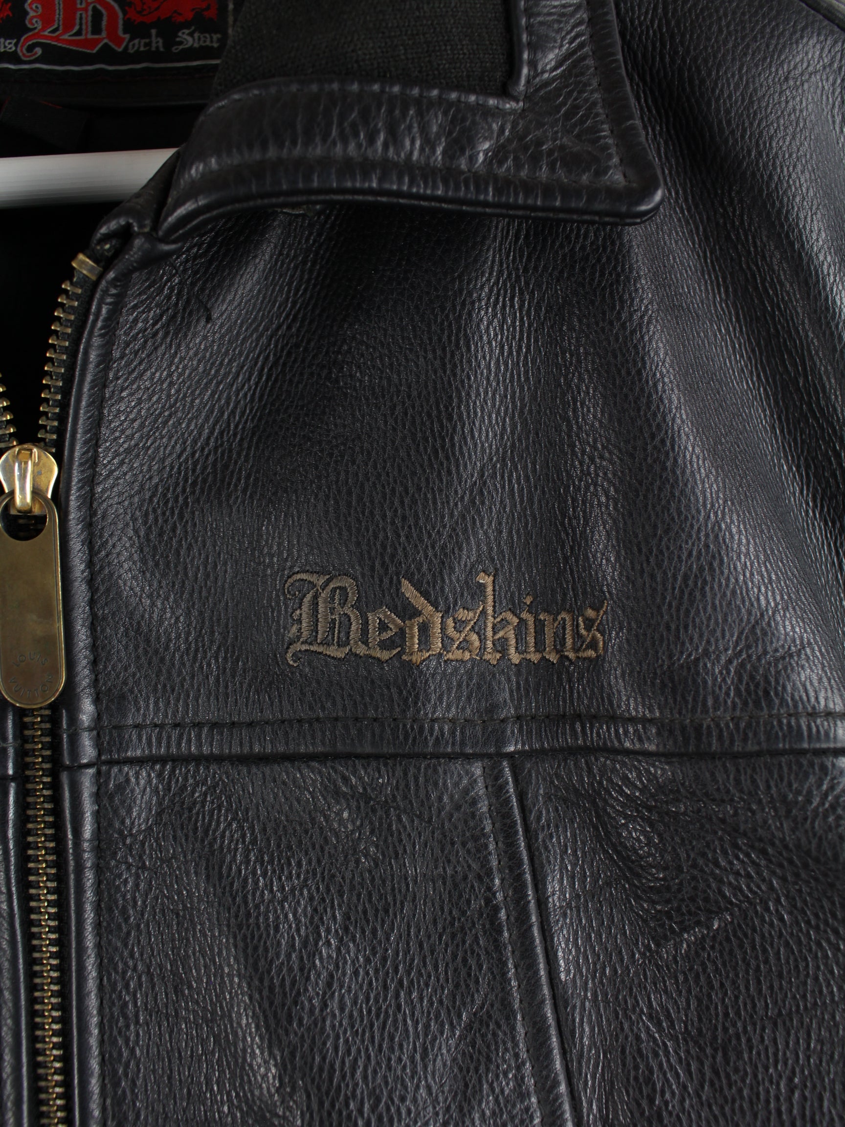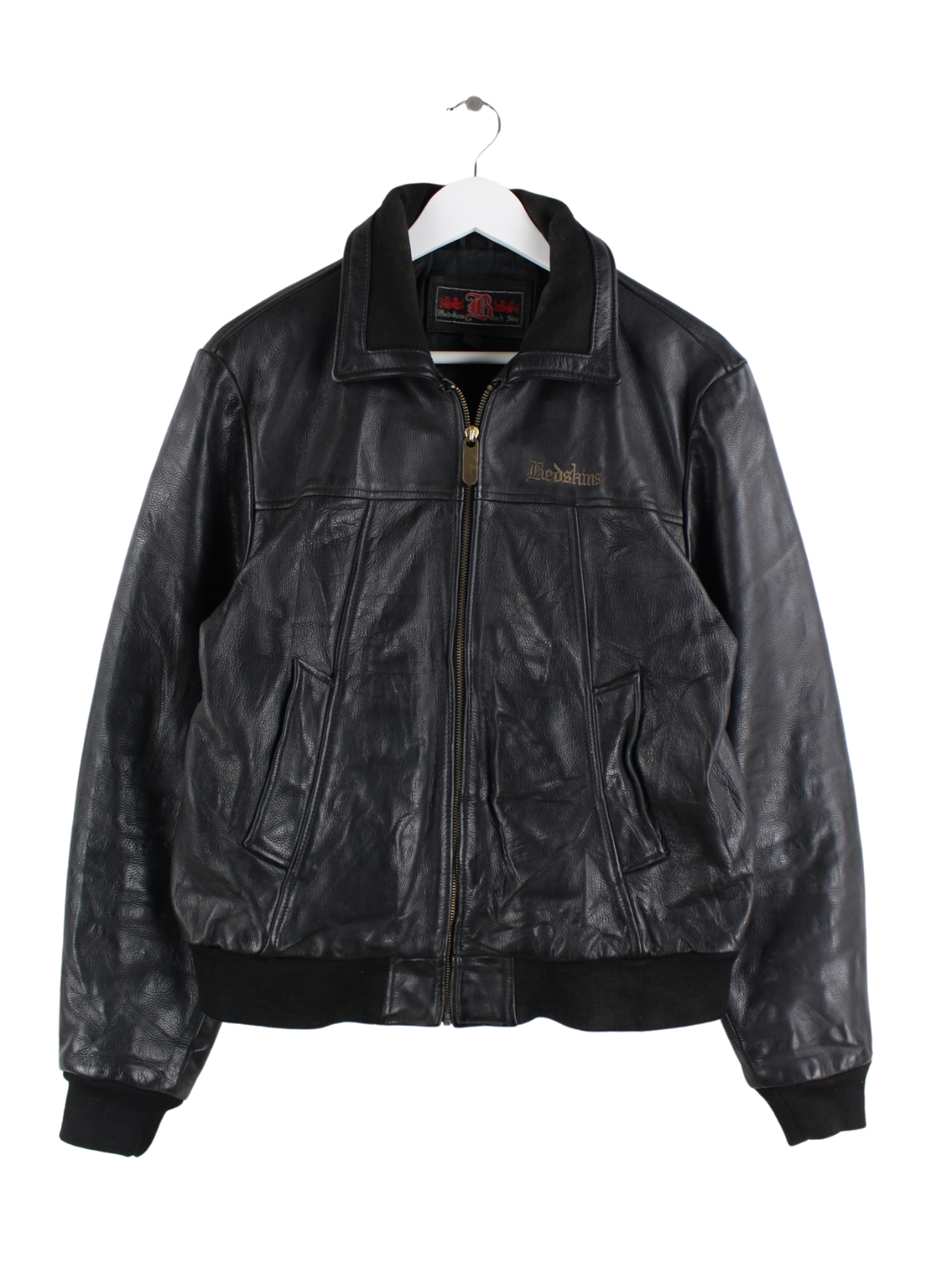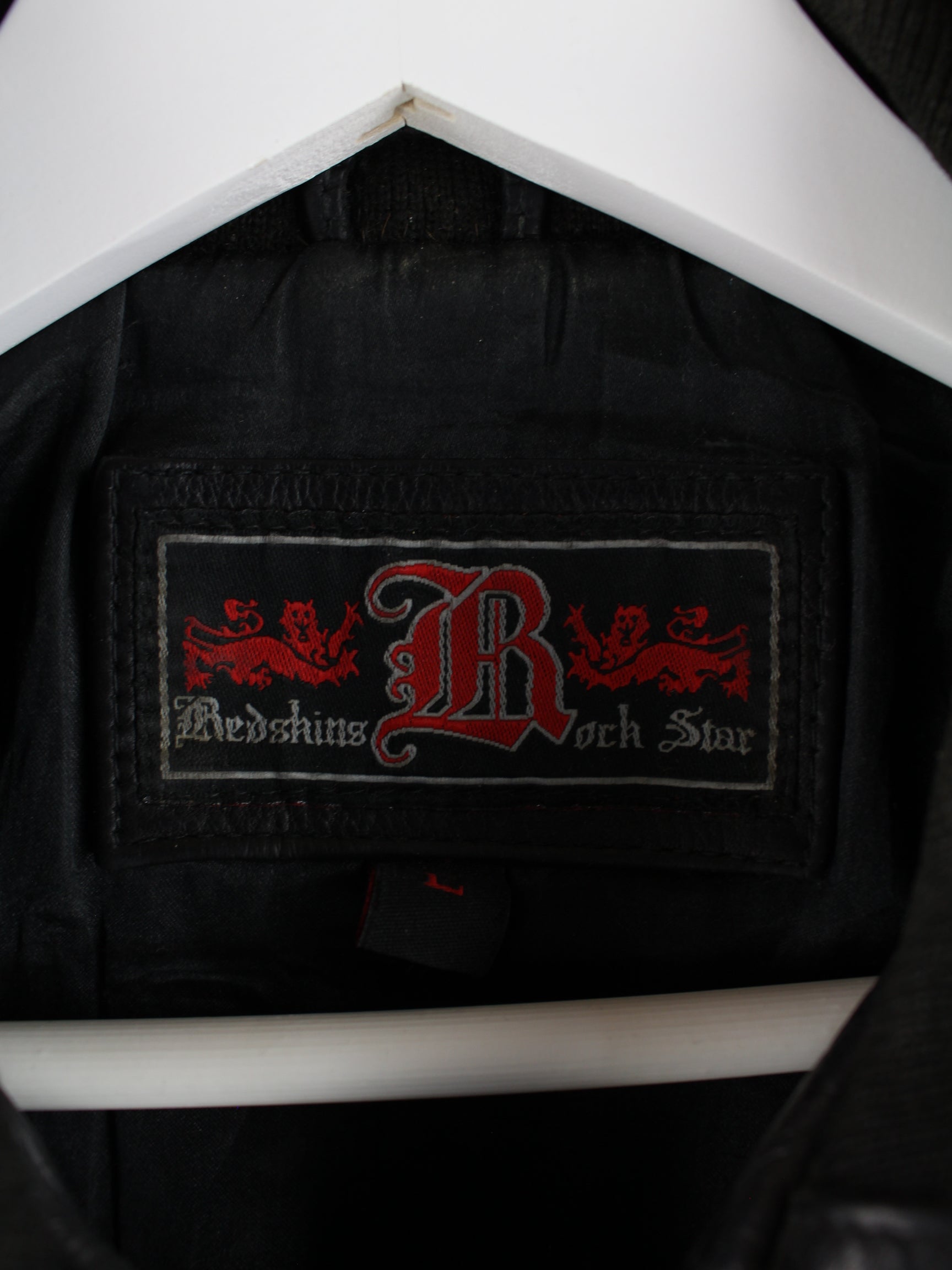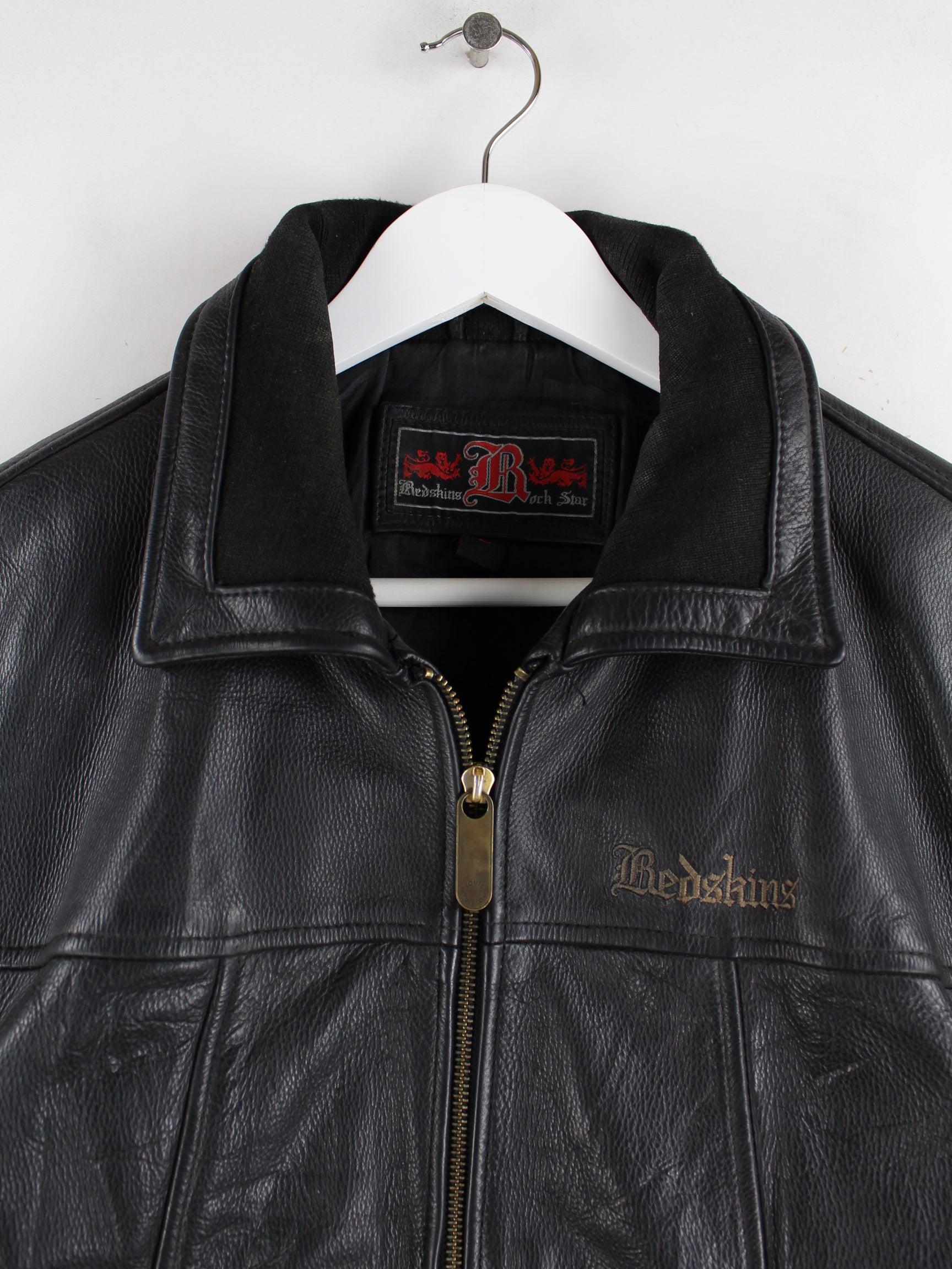 Jacke aus dem Hause Redskins mit Stick in Größe L aus den 90'ern. Sie ist aus Leder hergestellt und in Schwarz auf Lager.