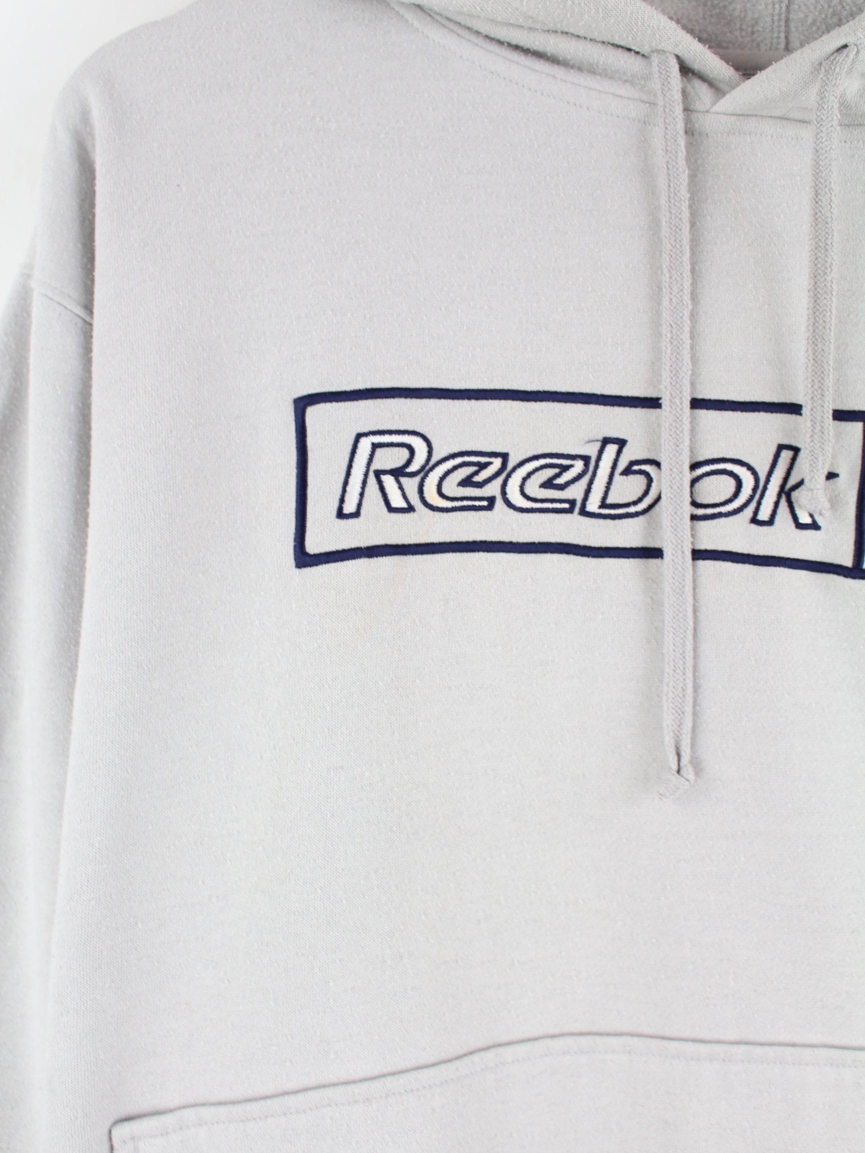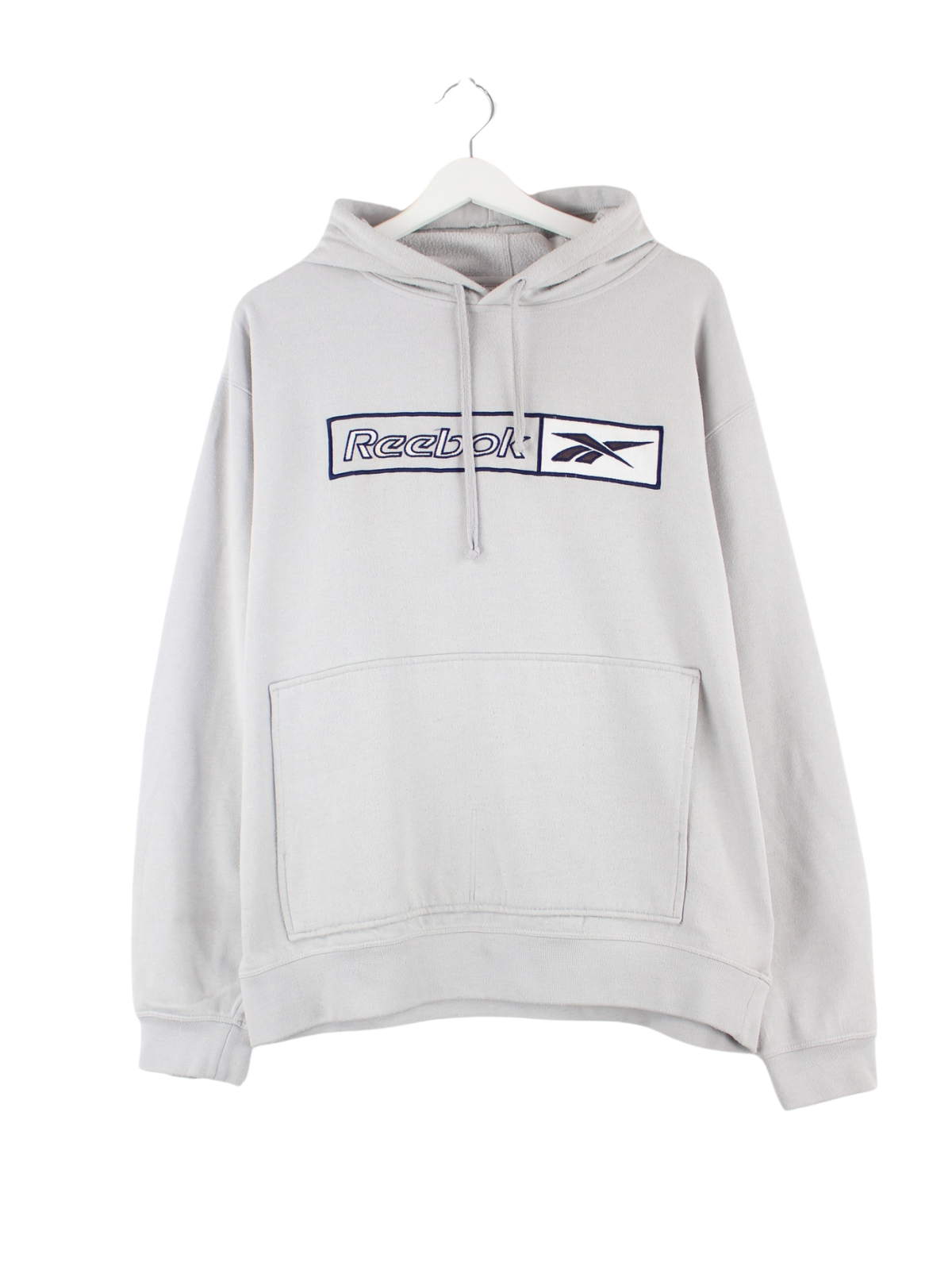 Hoodie vom Brand Reebok mit gesticktem Logo in Größe XL. Er ist aus einer Baumwollmischung hergestellt und in Grau zu bekommen.