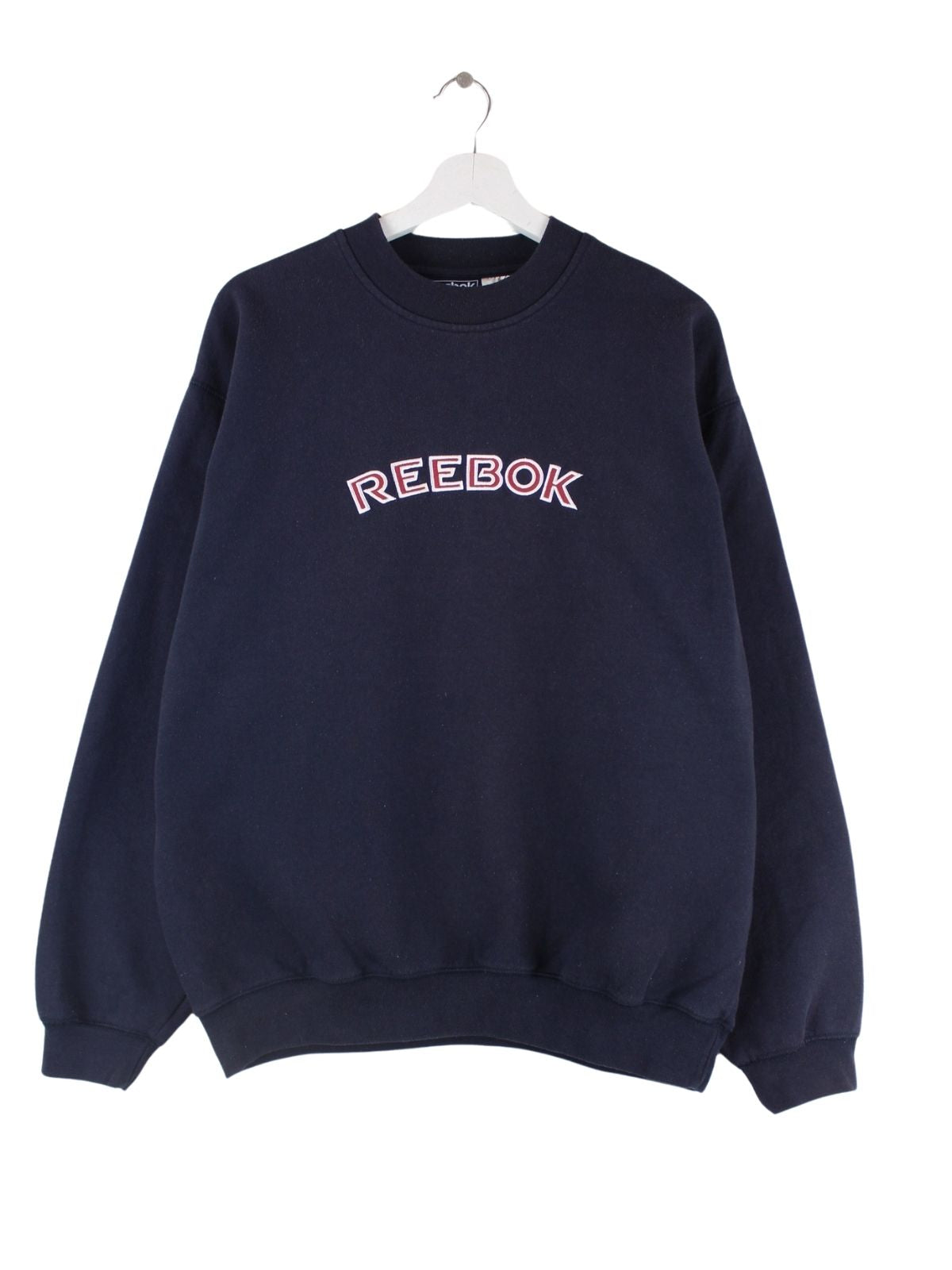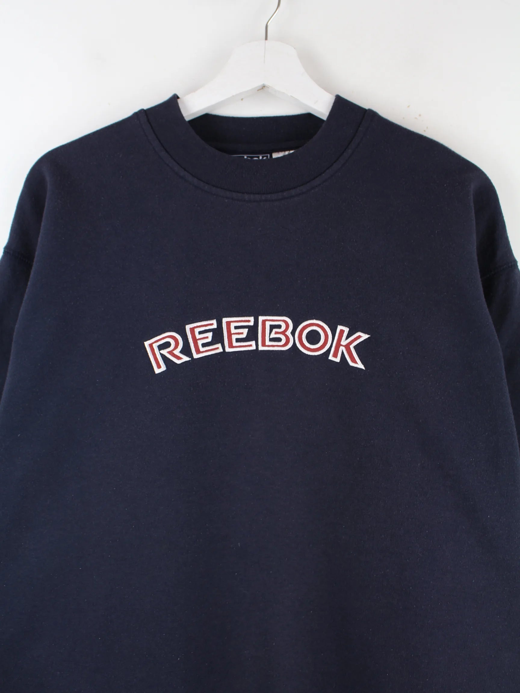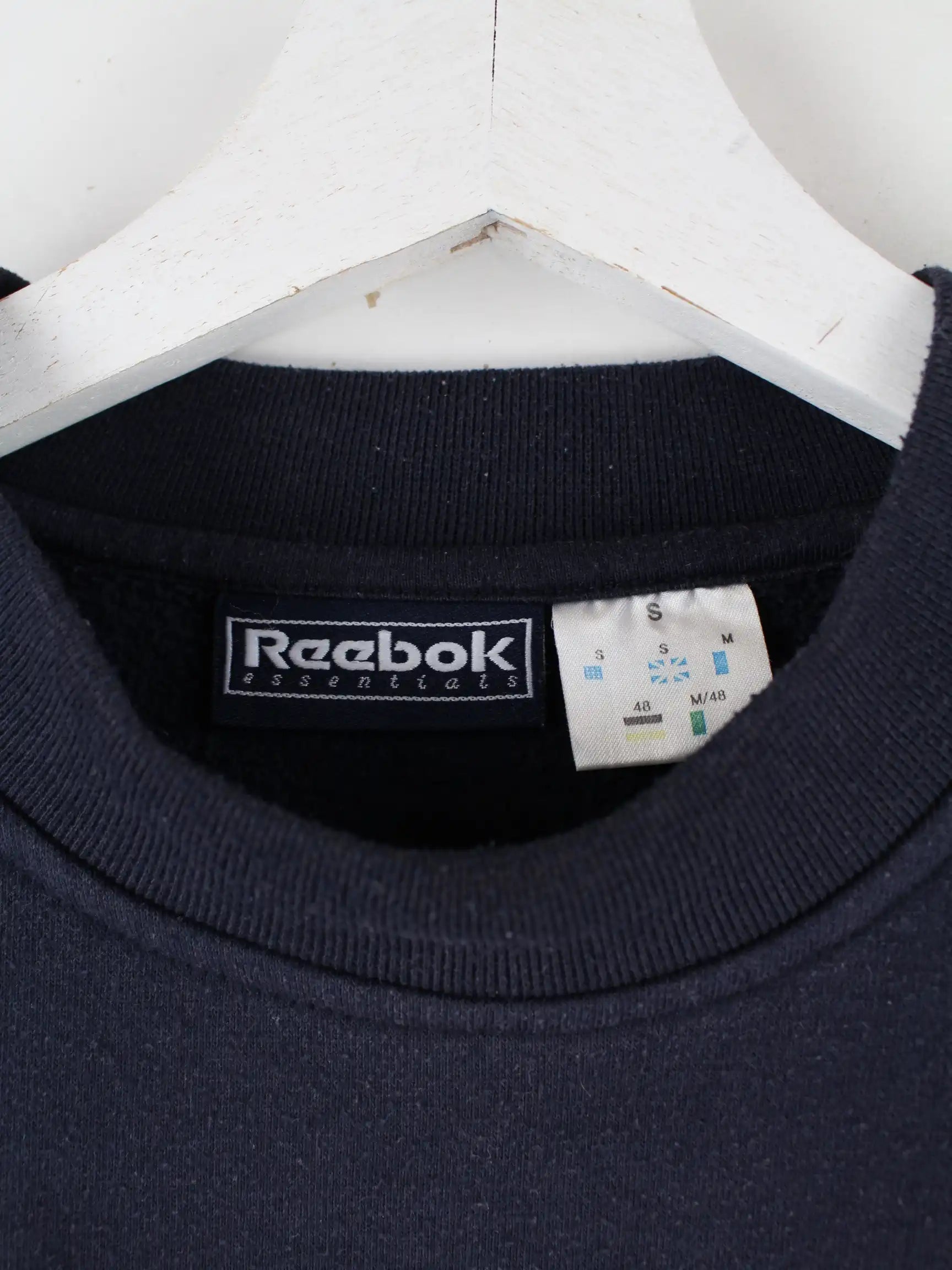 Schwarzer Sweater mit gestickten Motiven aus dem Hause Reebok in Größe S. Er ist aus einer Baumwollmischung gefertigt und in sehr gutem Zustand bei uns vorrätig.