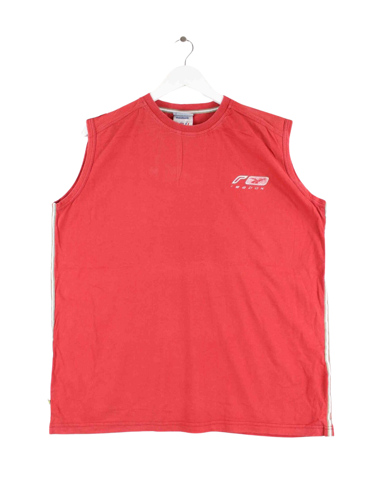 Roter Tank Top des Labels Reebok in Größe L. Er ist aus Baumwolle angefertigt und in gutem Zustand auf Lager. Mit schickem 00s Print.