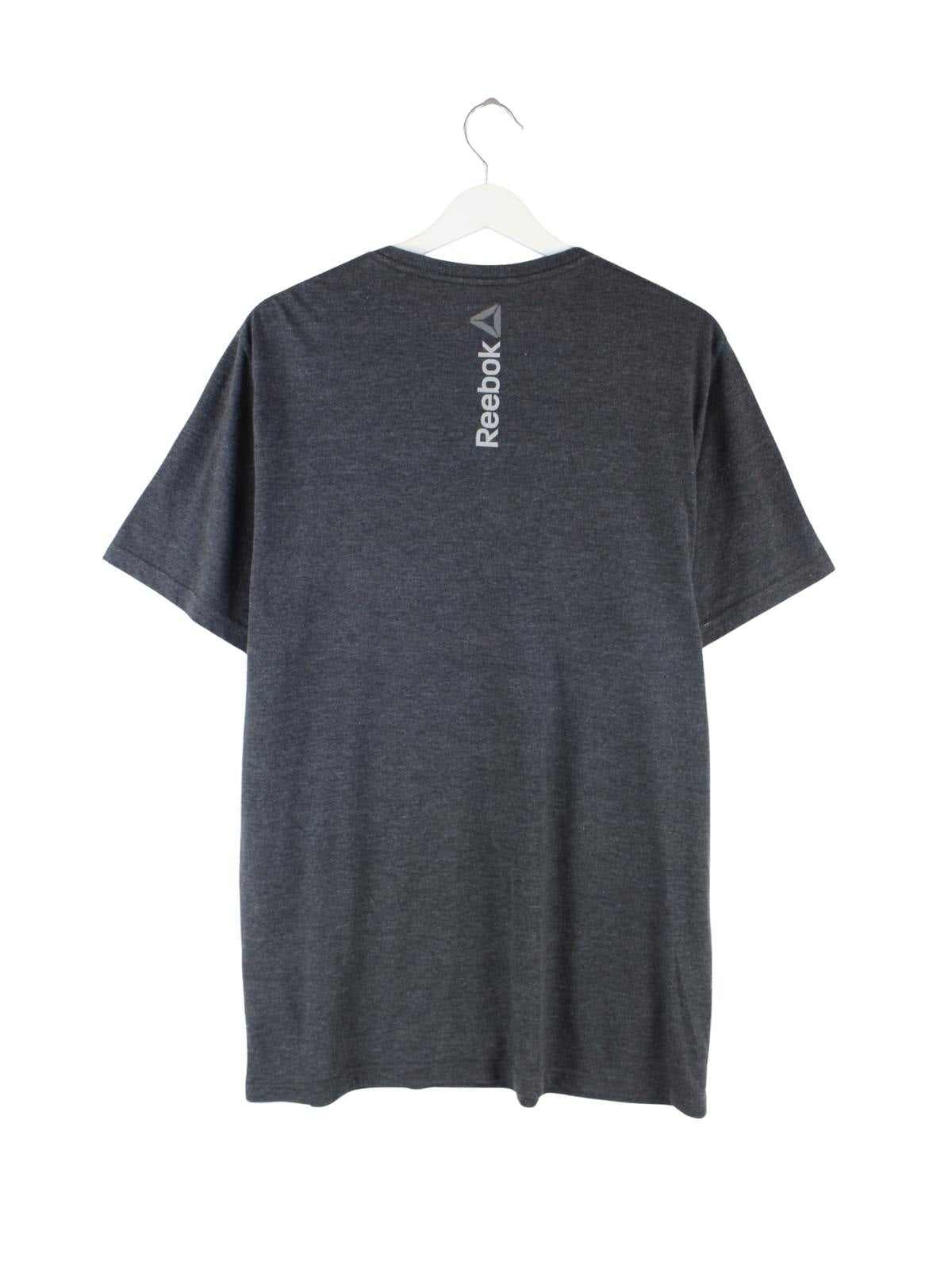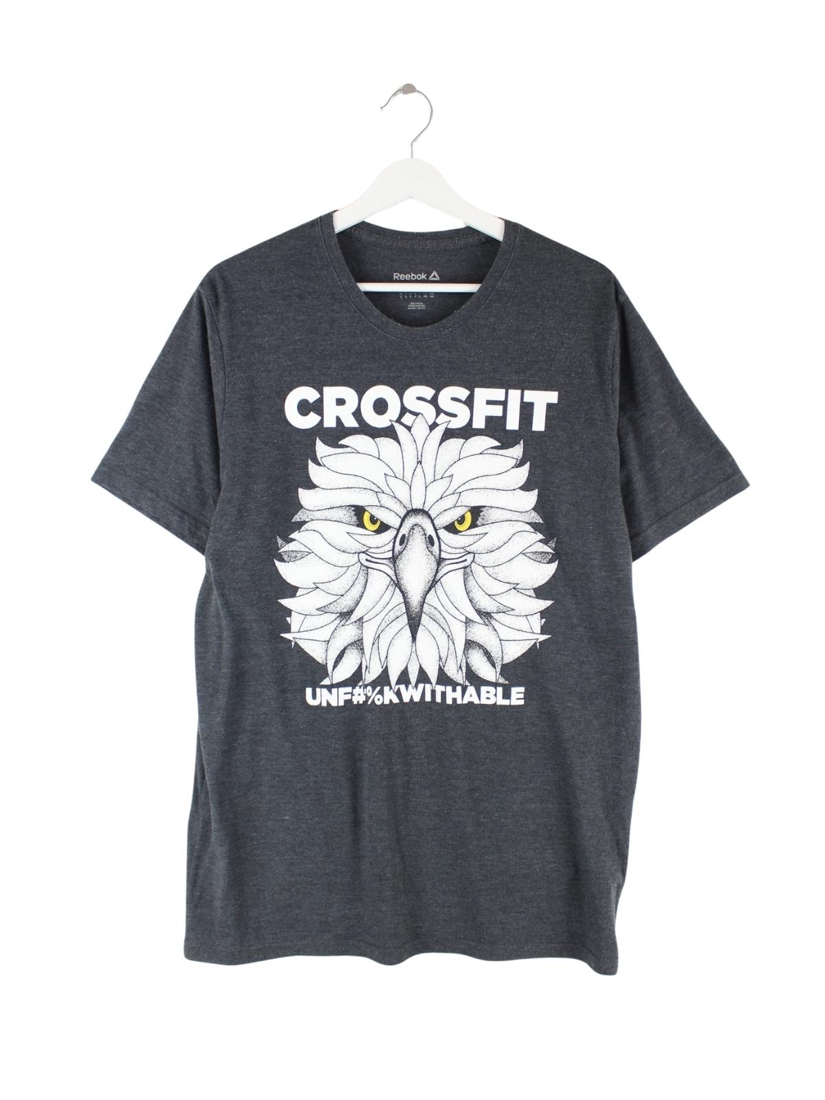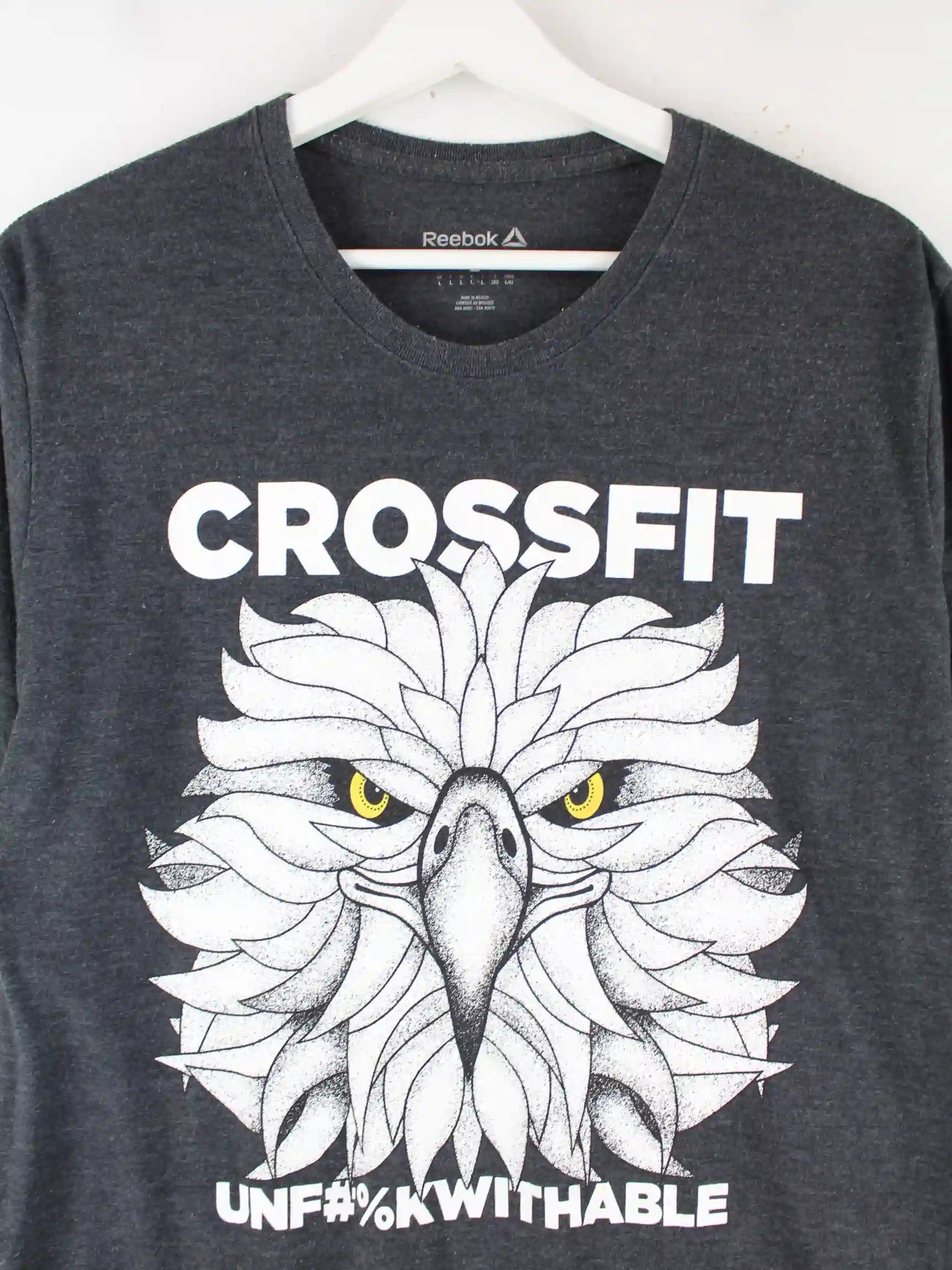 T-Shirt vom Label Reebok in Größe L. Es ist aus einer Baumwollmischung gefertigt und in Grau bei uns zu bekommen. Mit schönem Crossfit Print.