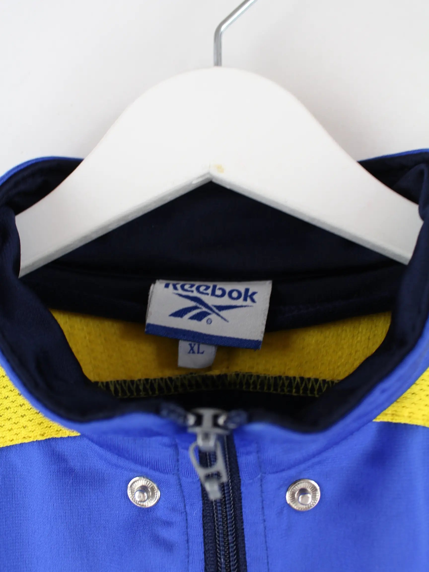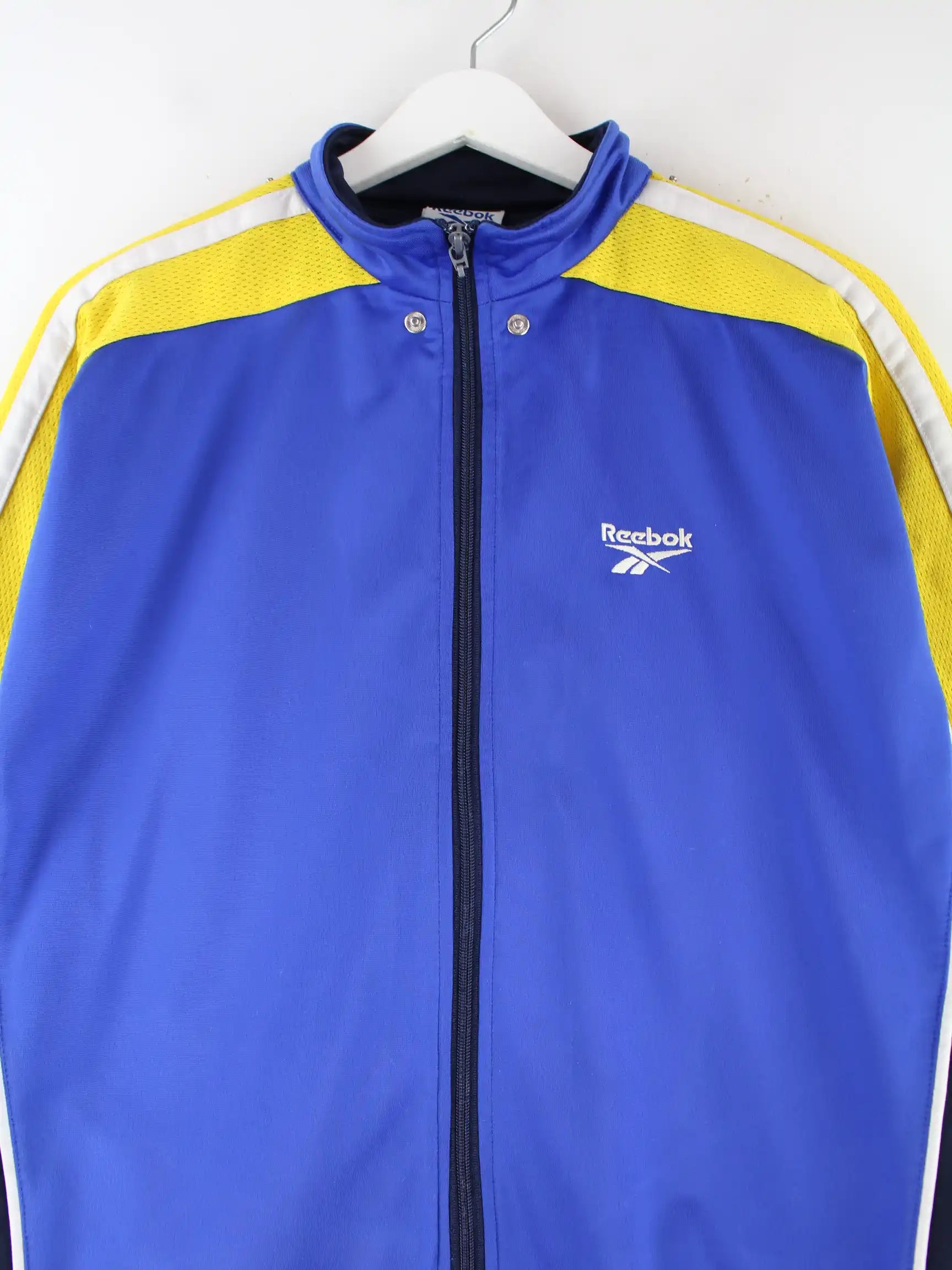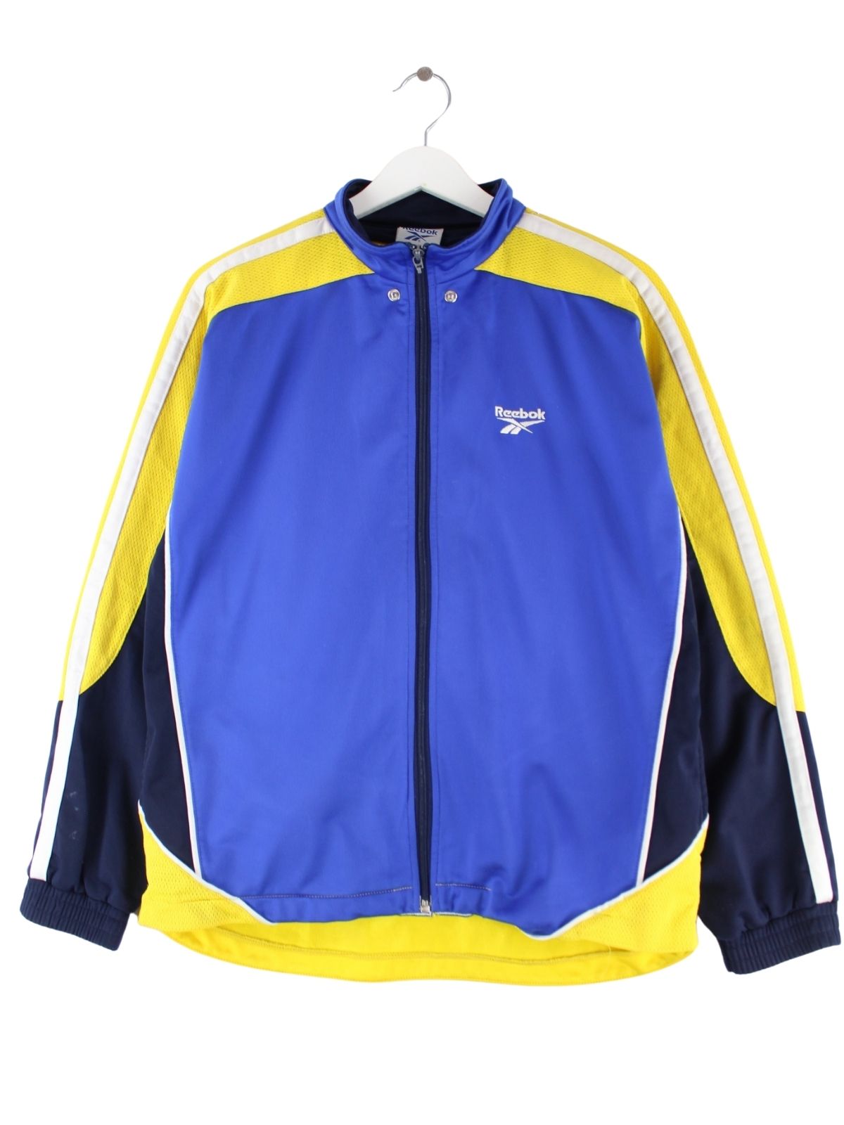 Trainingsjacke vom Brand Reebok in Größe L. Sie ist aus Synthetik und in Blau im Angebot.