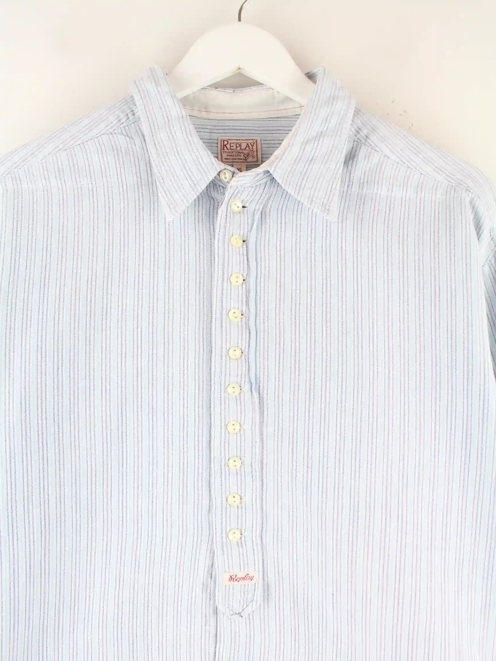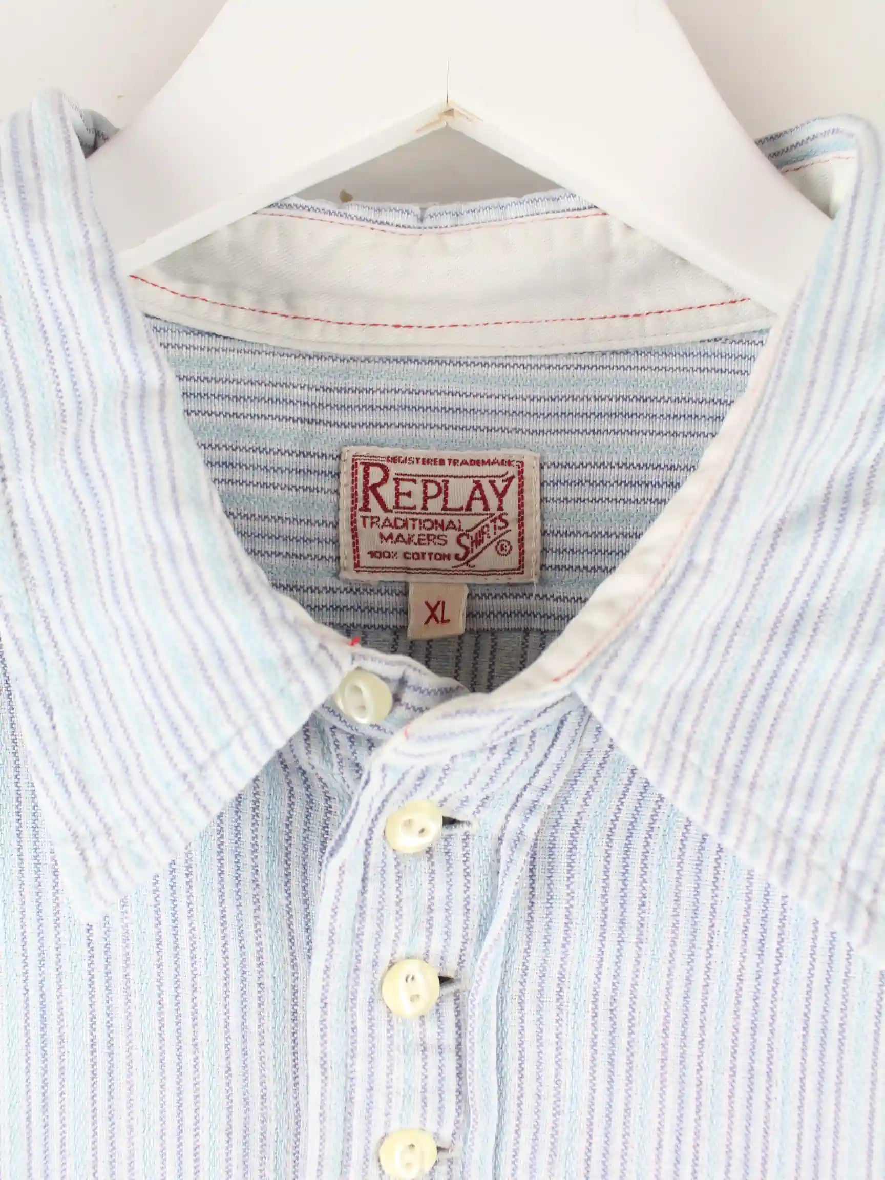 Blaues Freizeit Hemd der Brand Replay aus den 90'ern in Größe XL. Es ist aus Baumwolle produziert und in sehr gutem Zustand bei uns vorrätig.