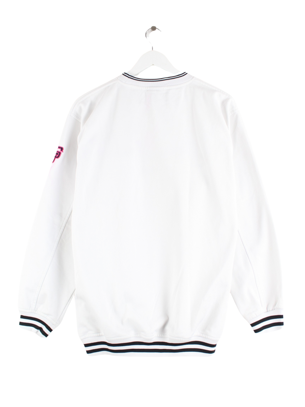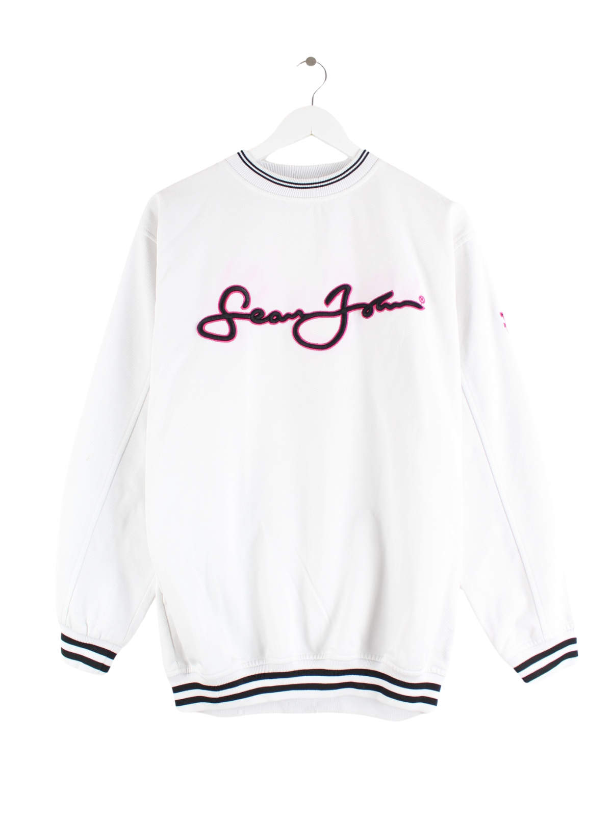 Weißer Sweater mit Stick von Sean John in Größe M. Er ist aus einer Baumwollmischung hergestellt. Den Zustand würden wir als 'In Ordnung' bezeichnen (vergl. Bilder).