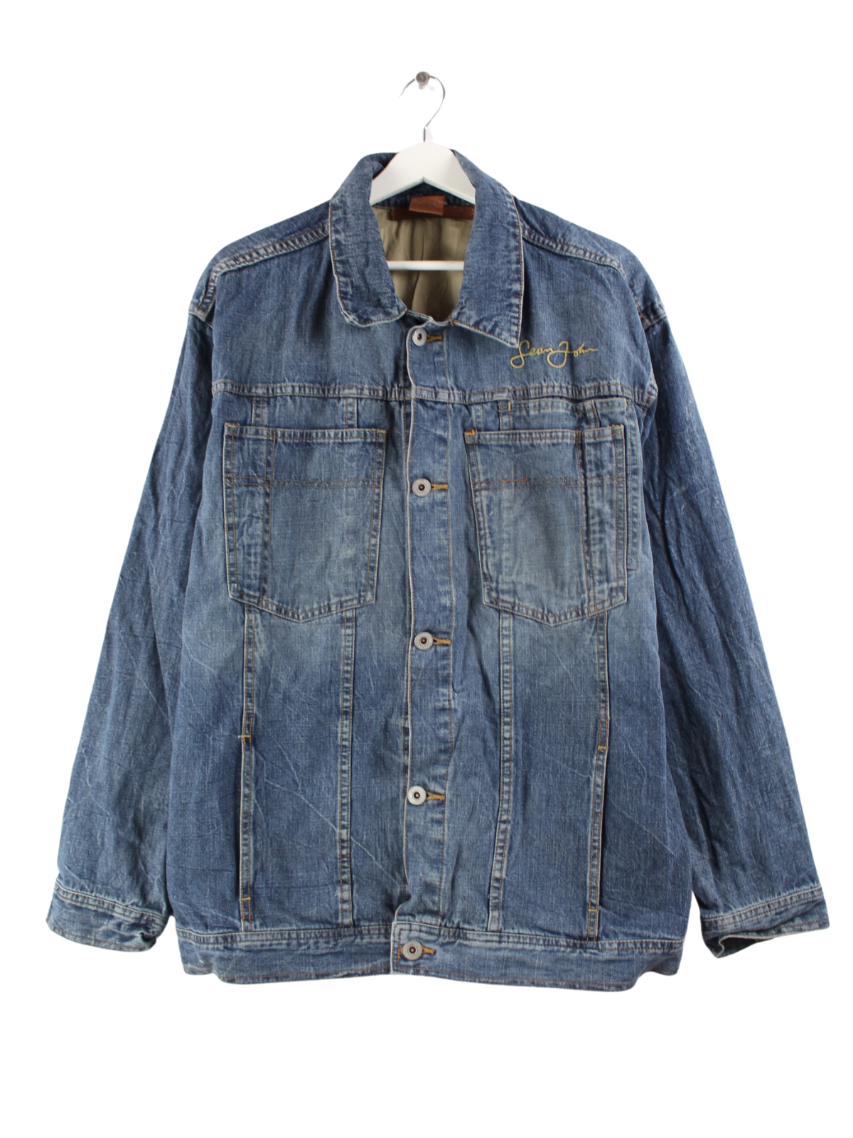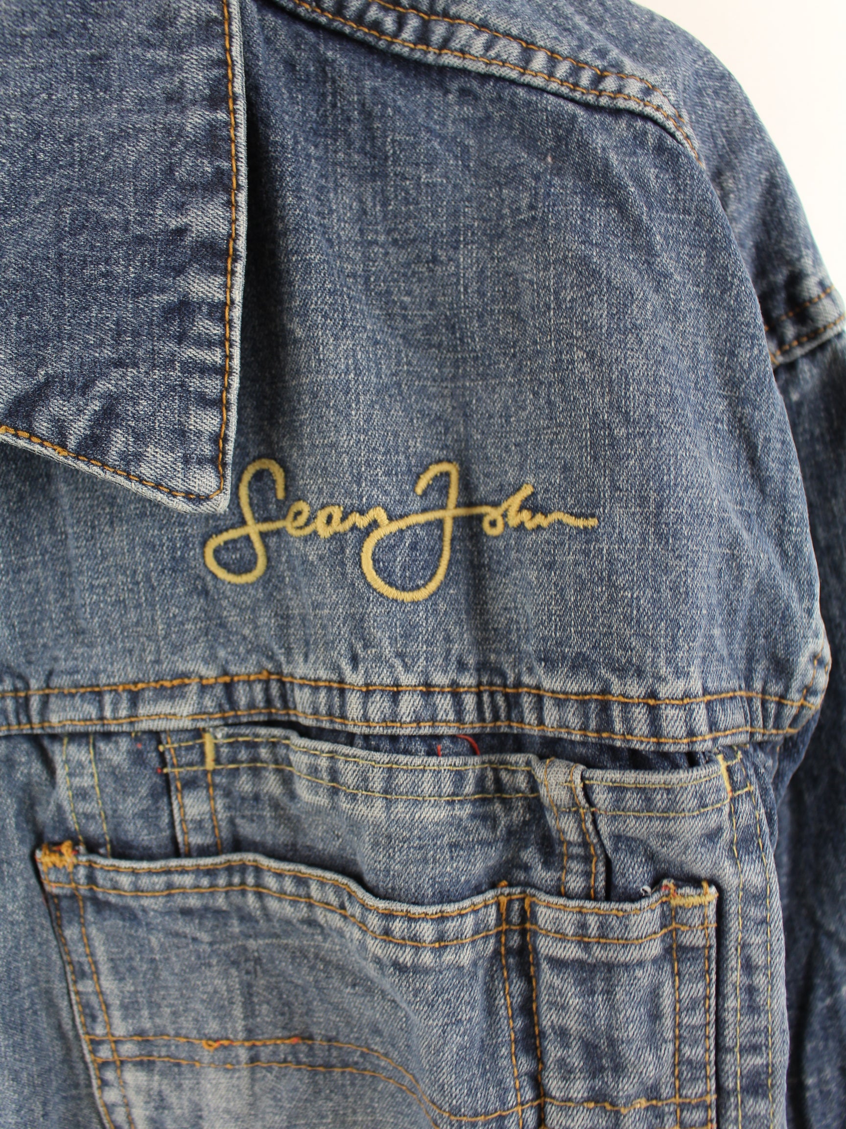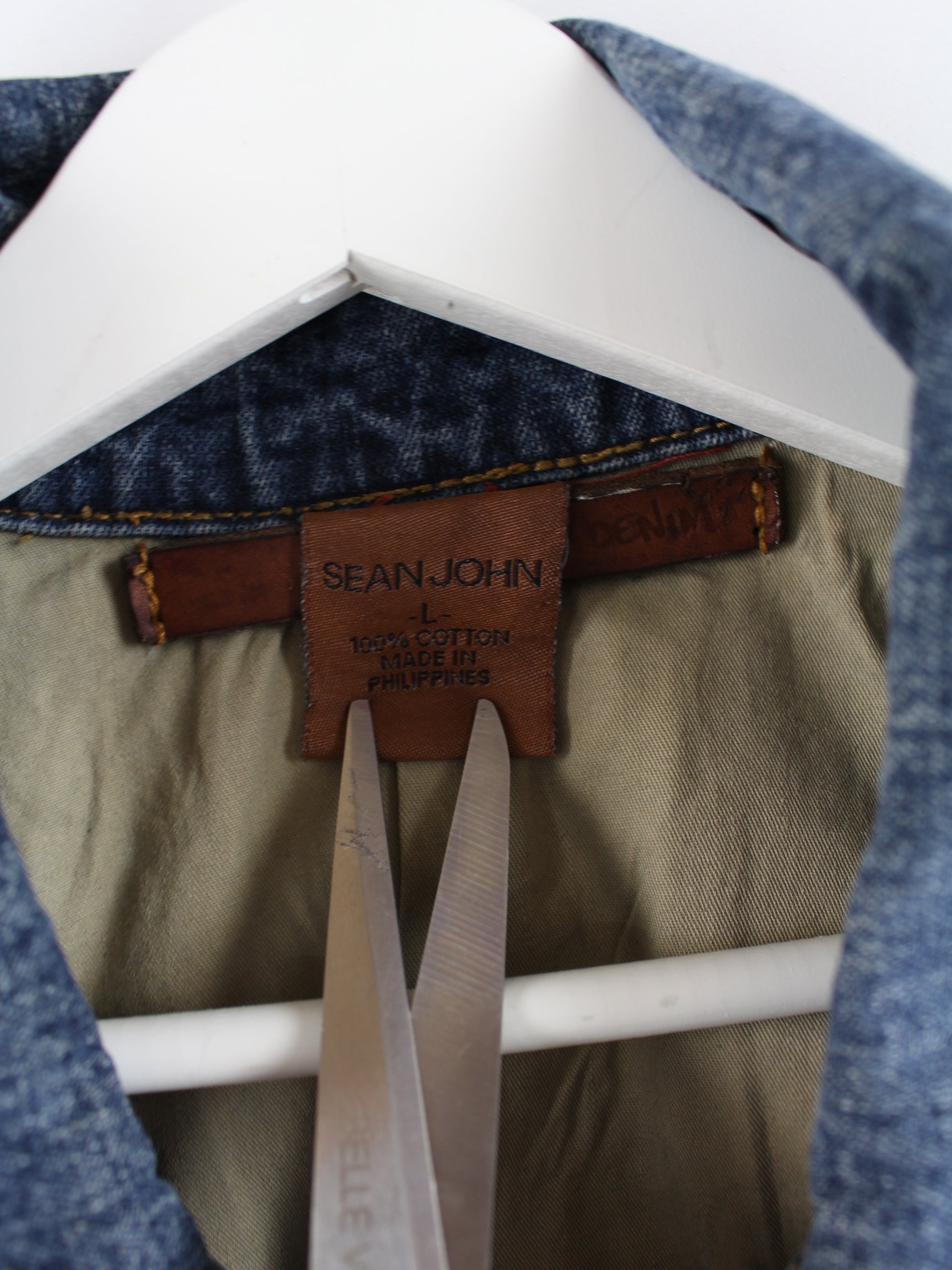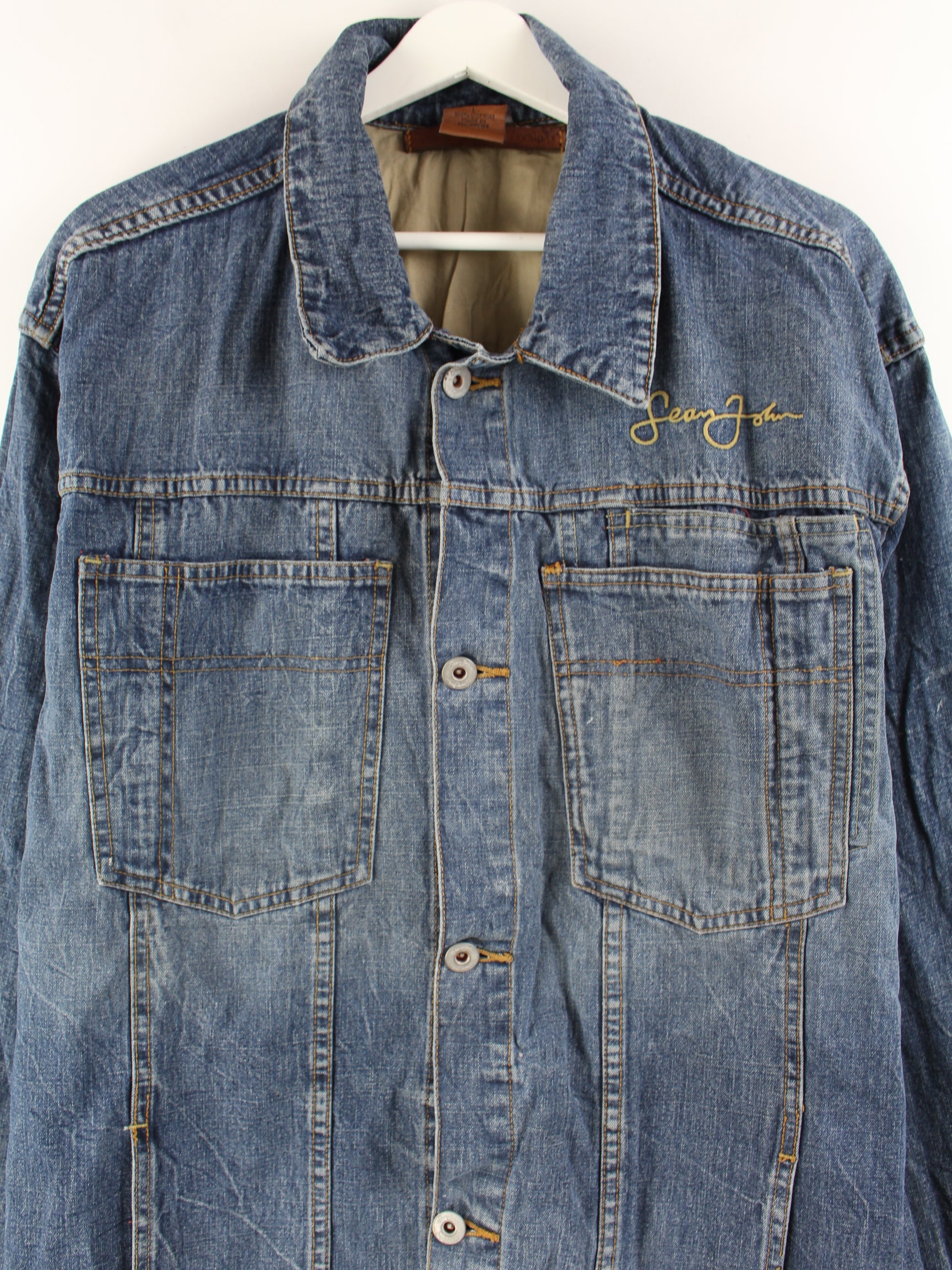 Sean John 90s Vintage Embroidered Denim Jeans Jacke Blau L
