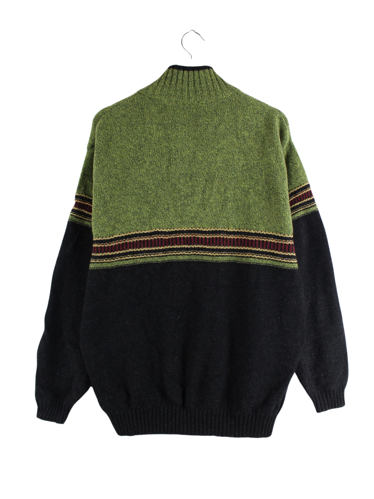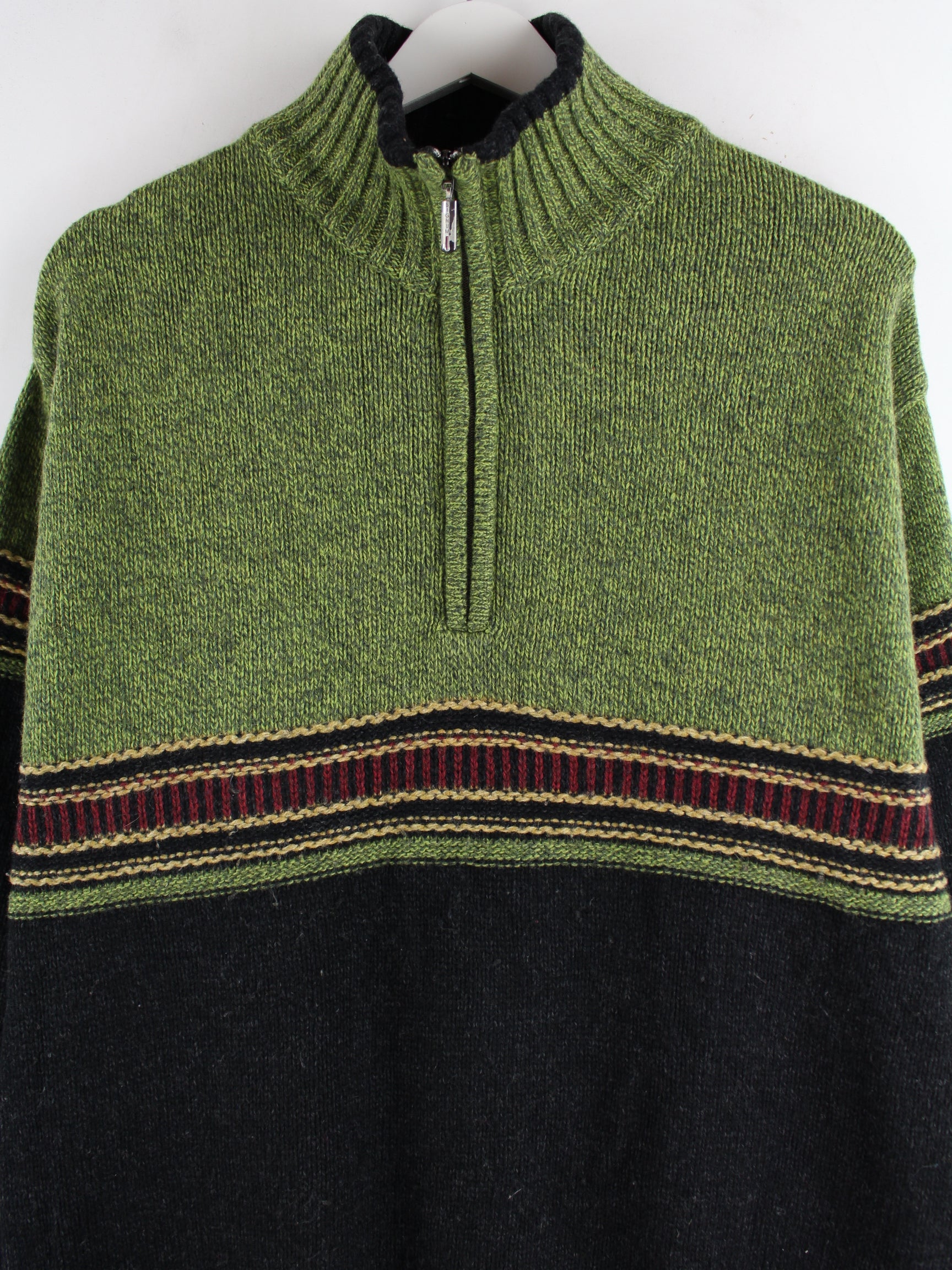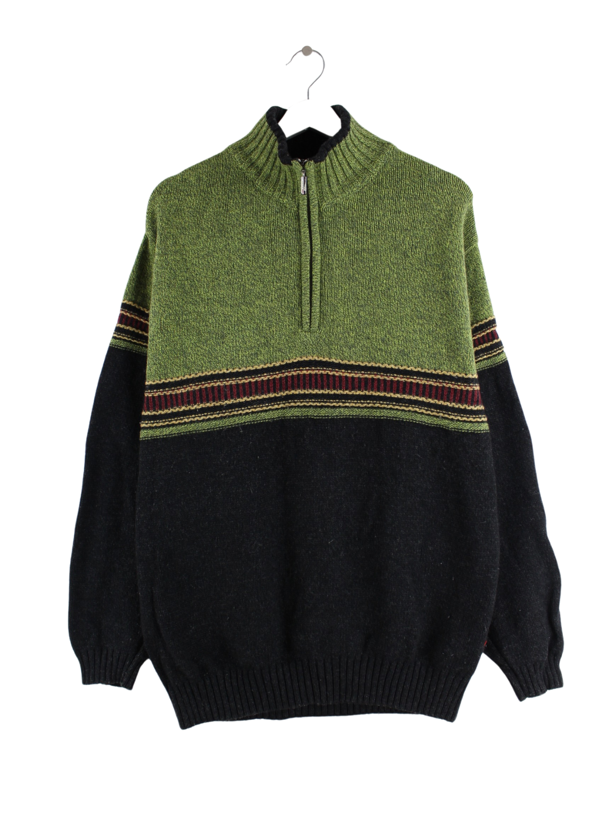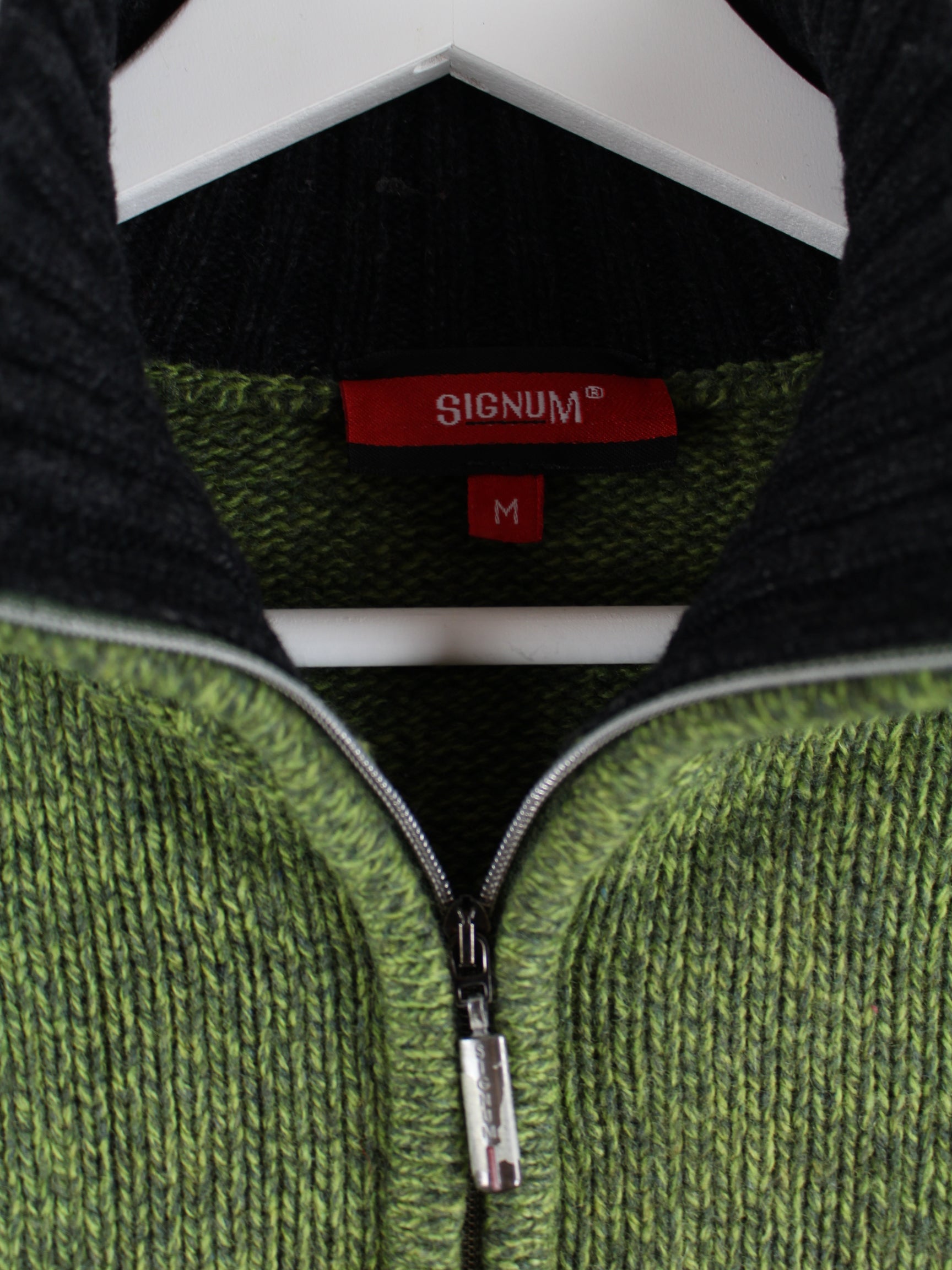 Grüner Pullover mit kurzem Reißverschluß der Brand Signum in Größe M. Er ist aus Wolle gemacht und in gutem Zustand lieferbar.