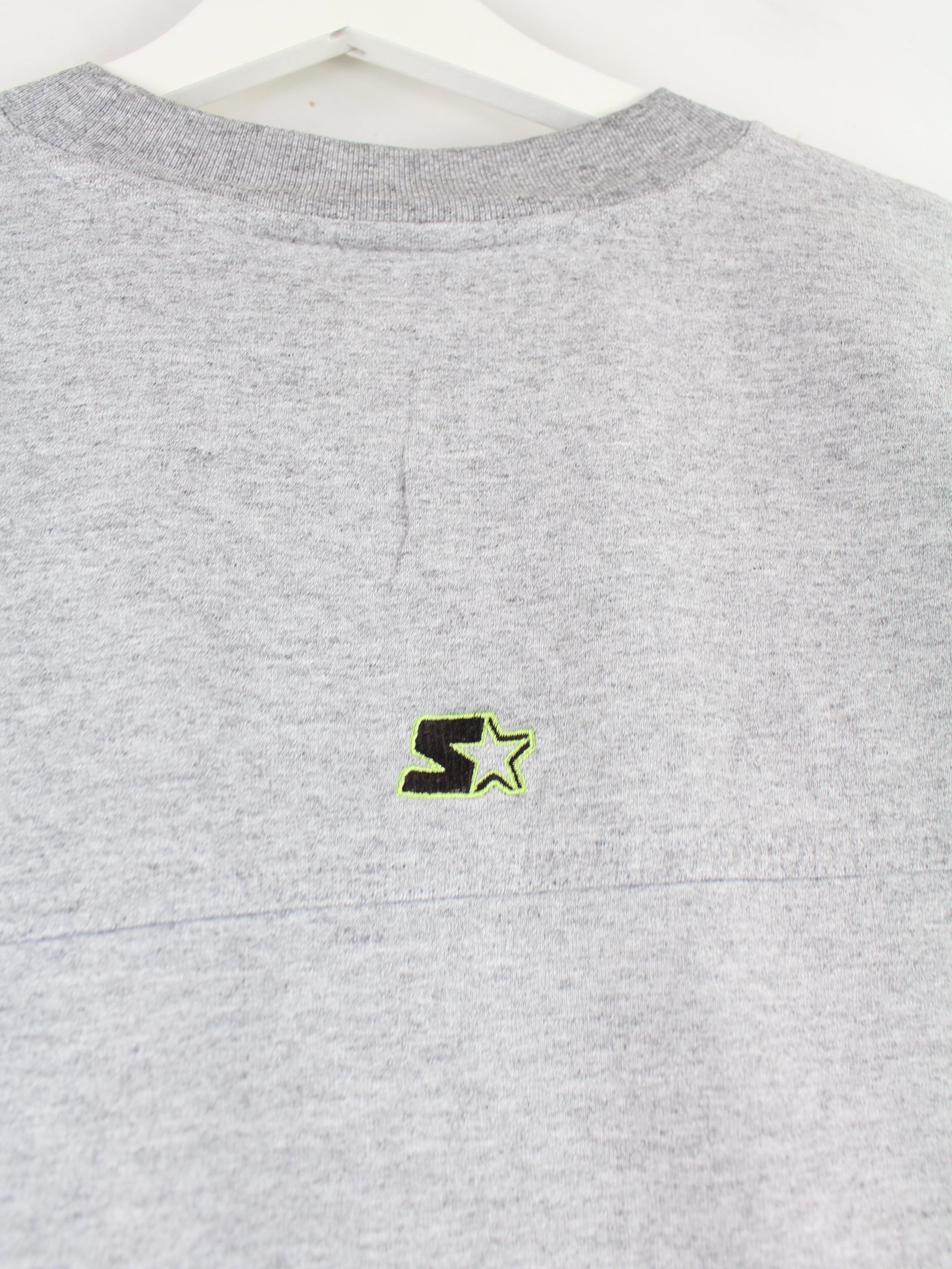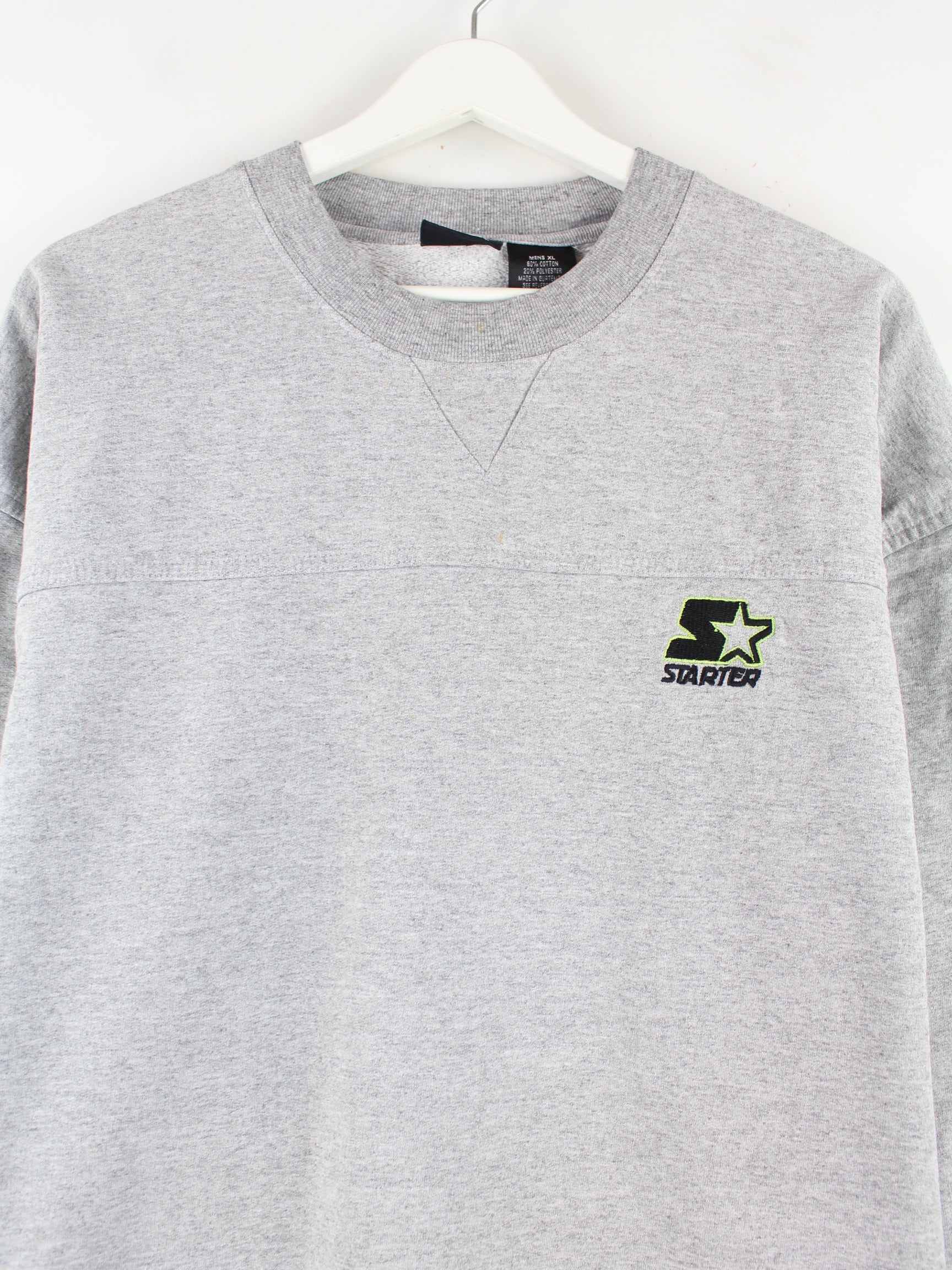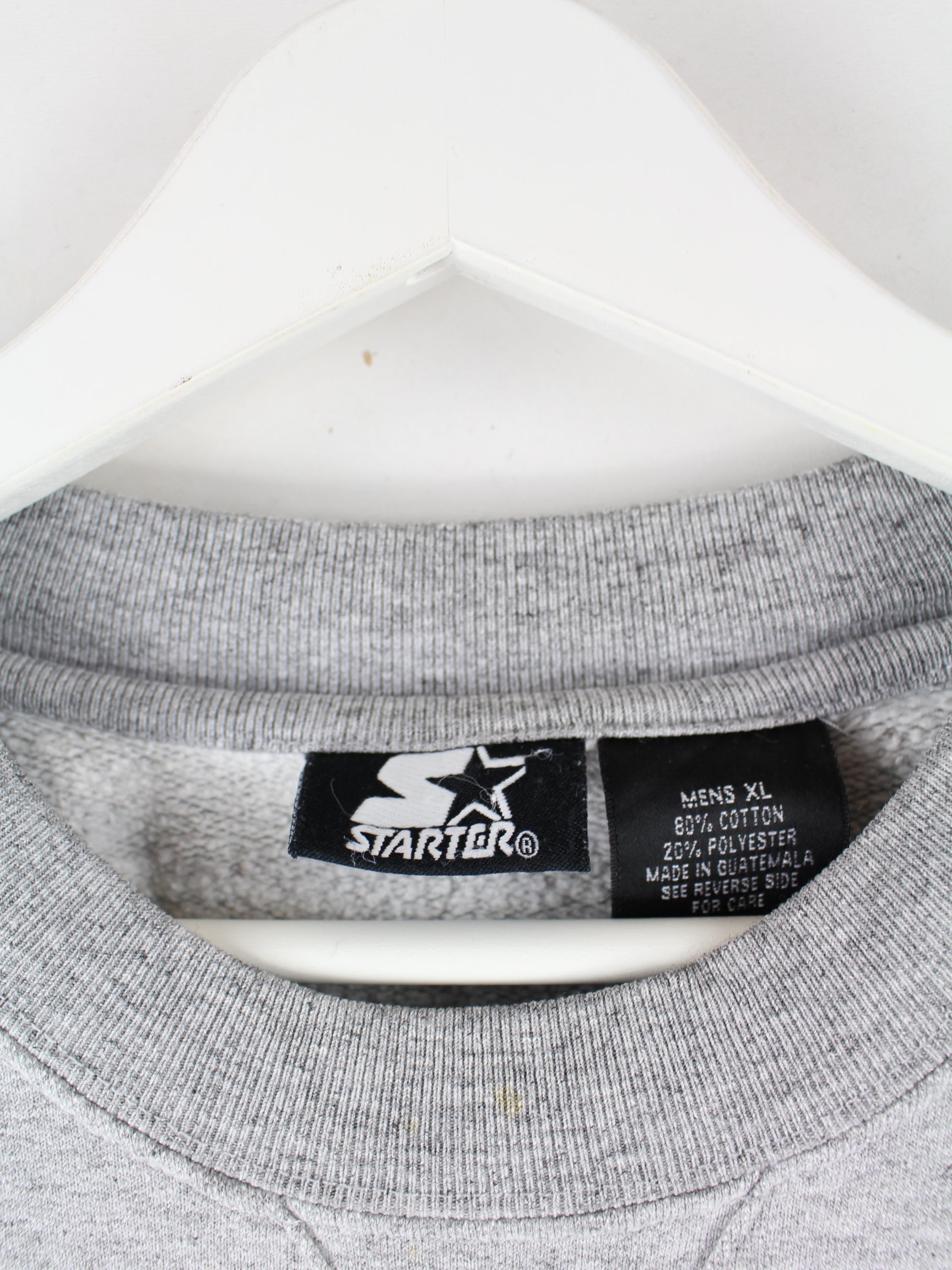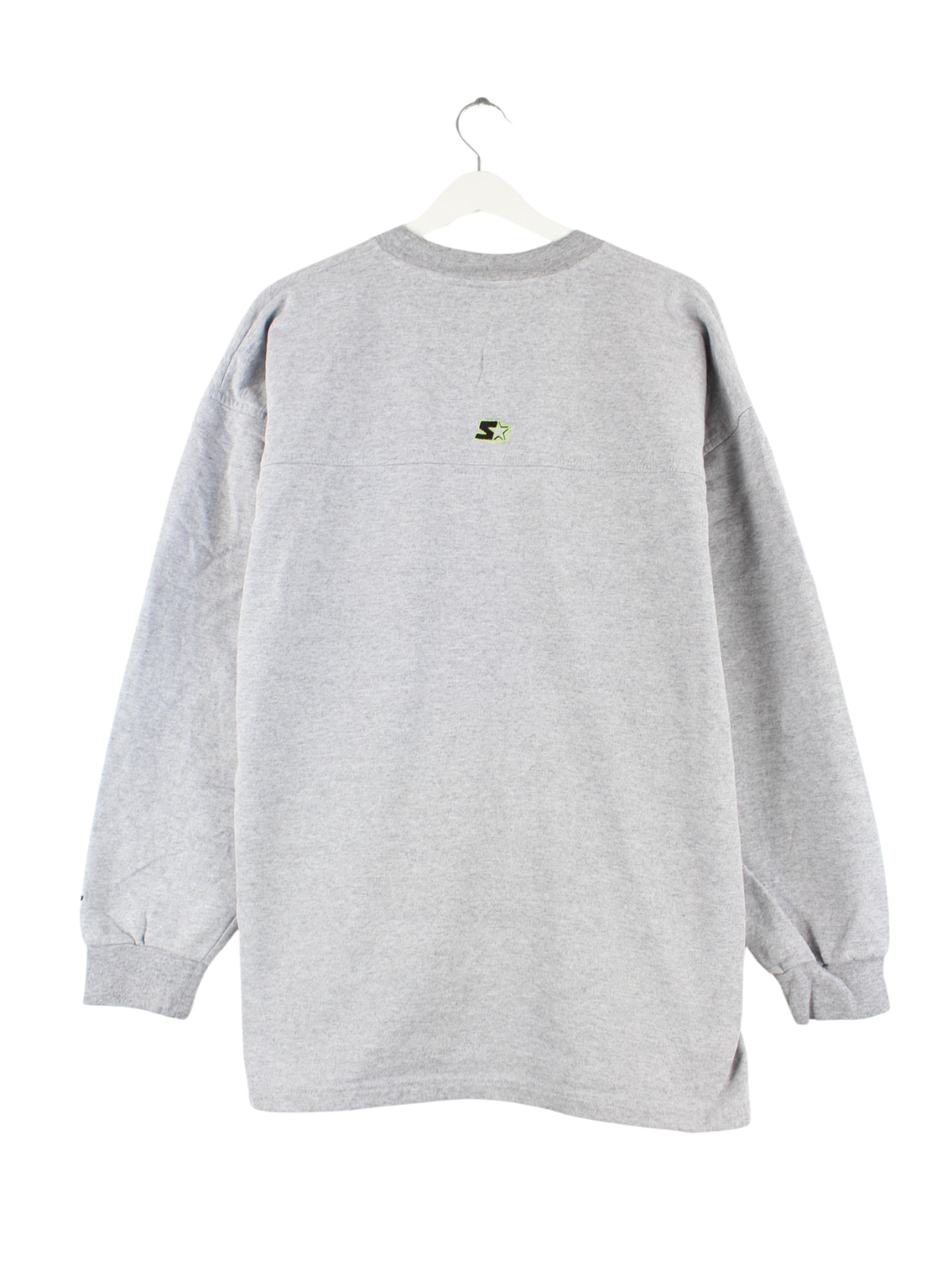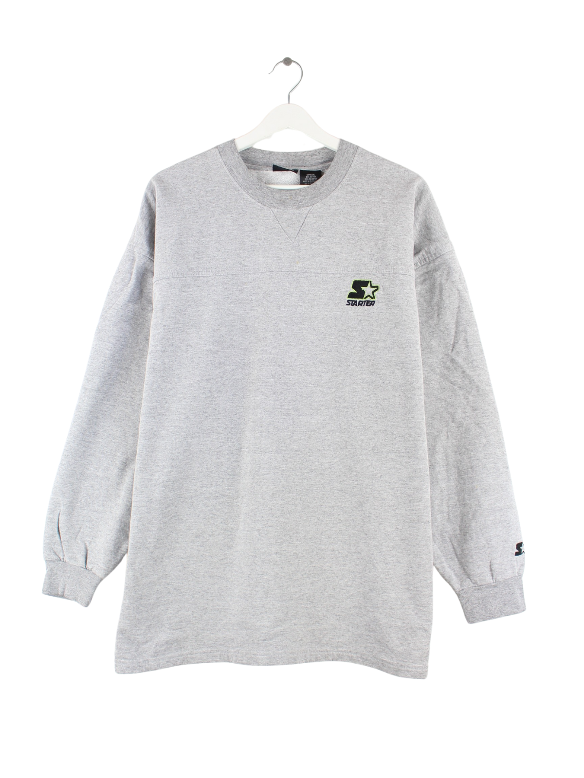 Sweater der Brand Starter mit Stickereien in Größe XL. Er ist aus einer Baumwollmischung gefertigt und in Grau auf Lager.