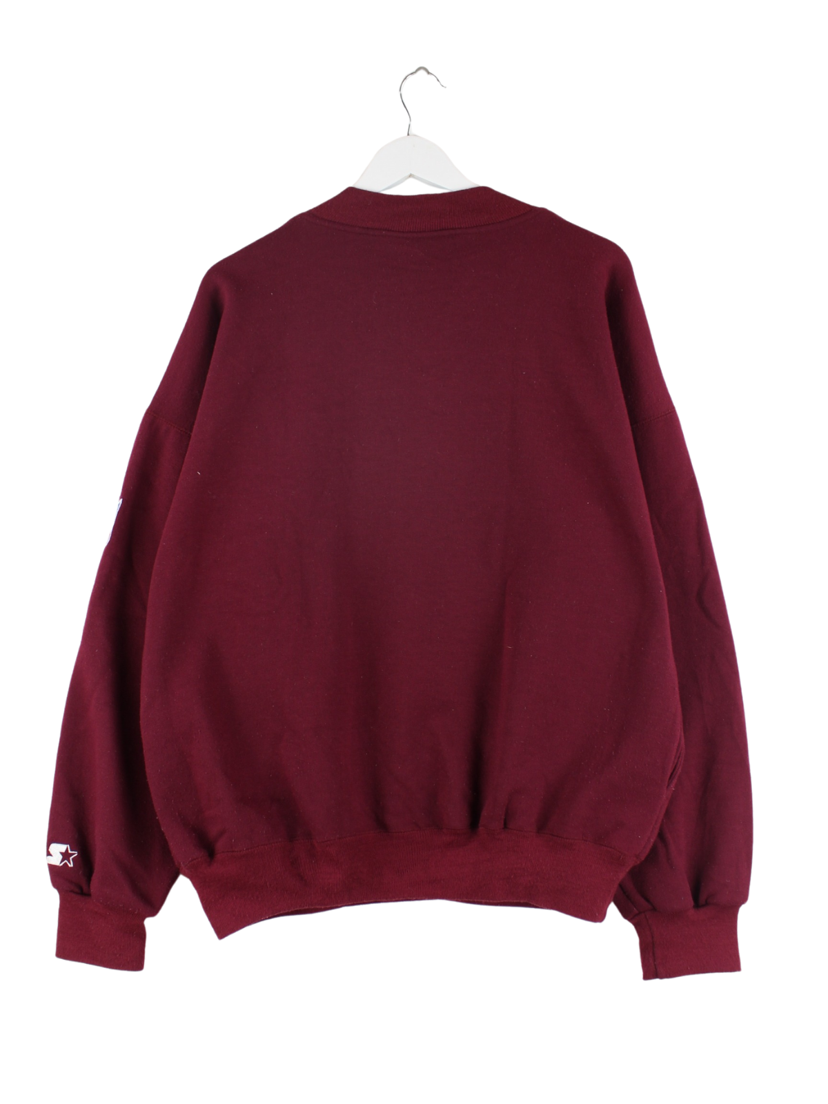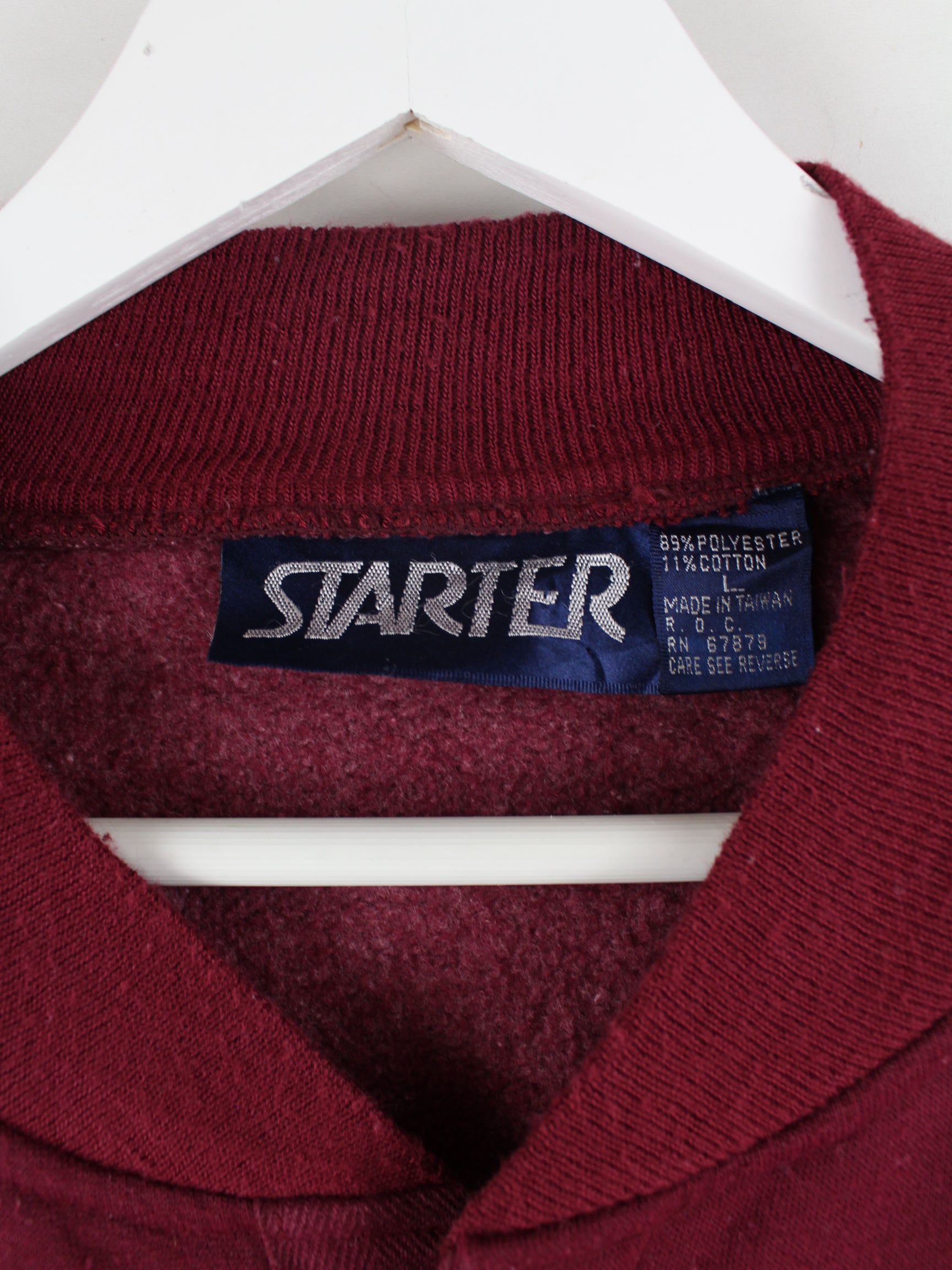 Sweater des Labels Starter mit Stick in Größe L aus den 90'ern. Er ist aus einer Baumwollmischung gefertigt und in Rot im Angebot.