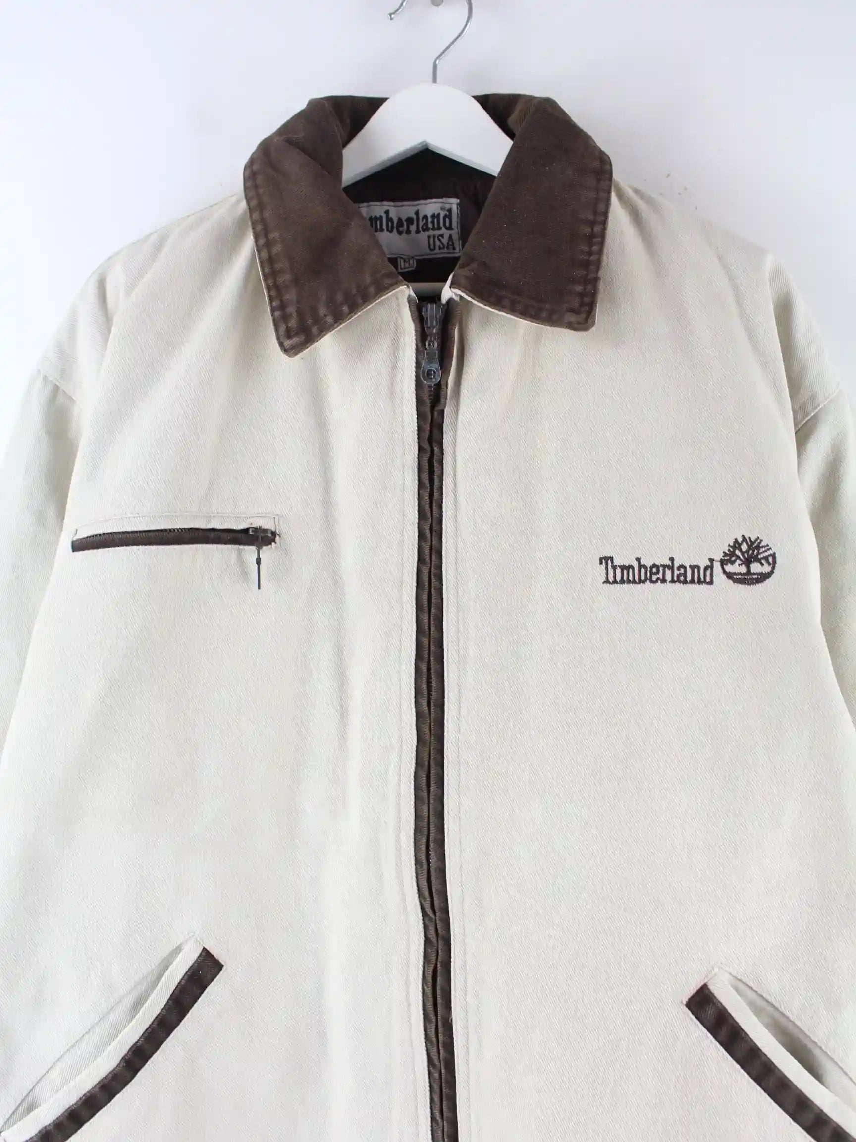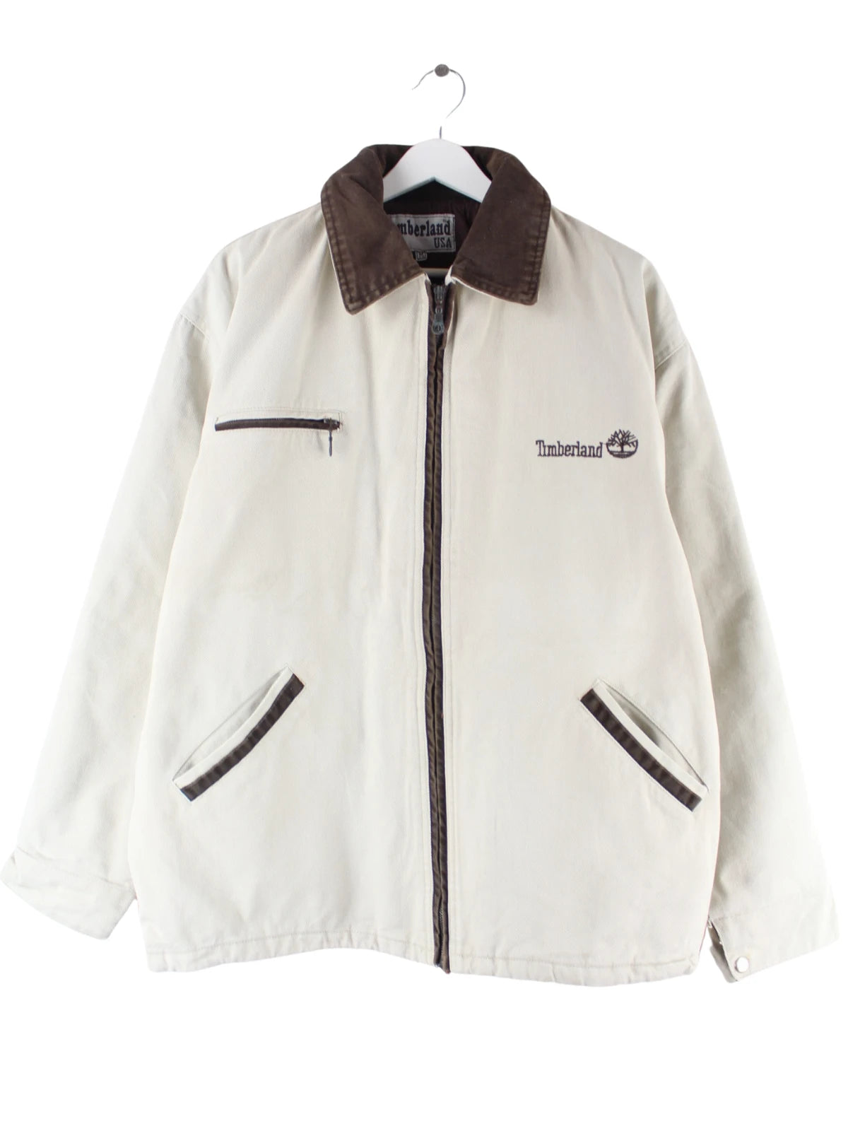 Beigefarbene Leichte Jacke des Labels Timberland aus den 80'ern in Größe XL. Sie ist aus Baumwolle gemacht. Den Zustand würden wir als 'In Ordnung' bezeichnen (vergl. Bilder).