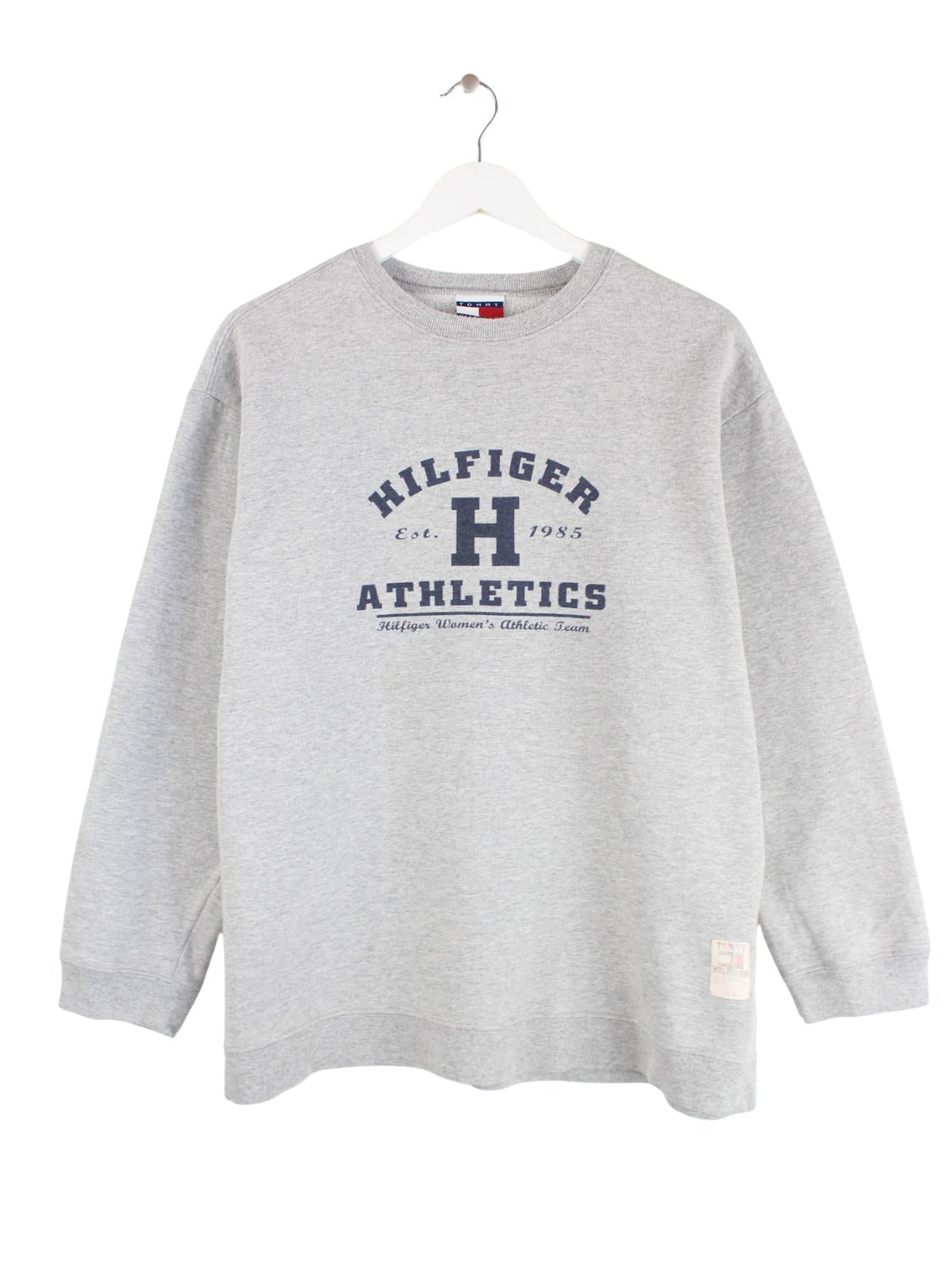 Grauer Sweater der Marke Tommy Hilfiger in Größe L. Er ist aus einer Baumwollmischung angefertigt und in gutem Zustand im Angebot. Mit schickem 00s Print.