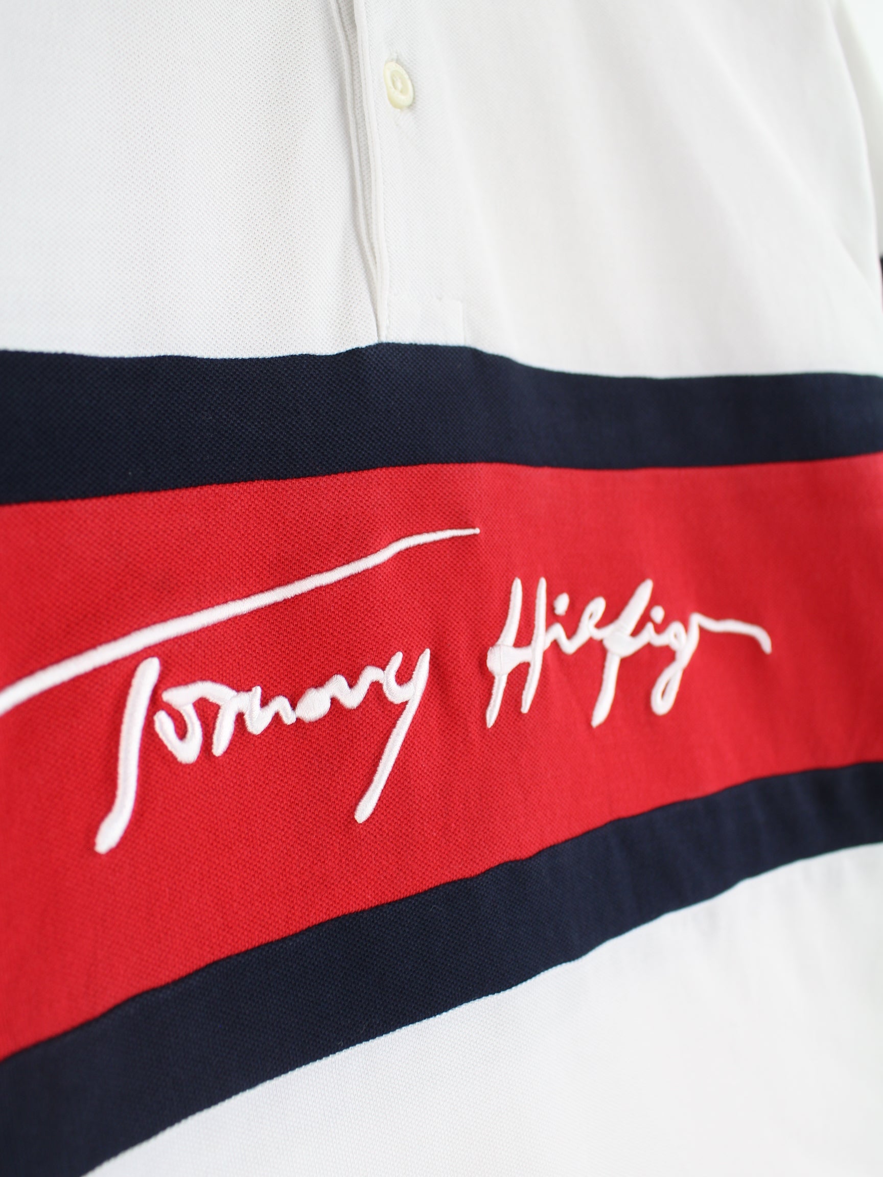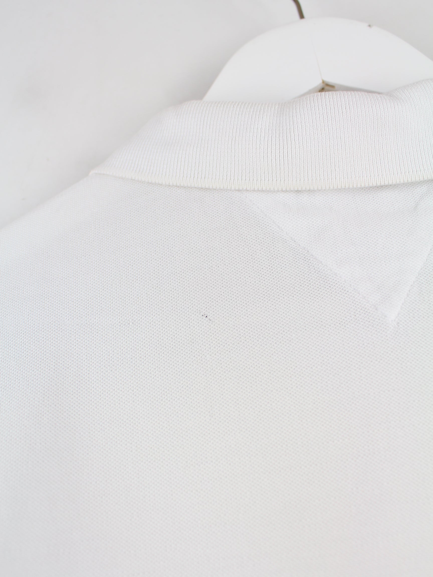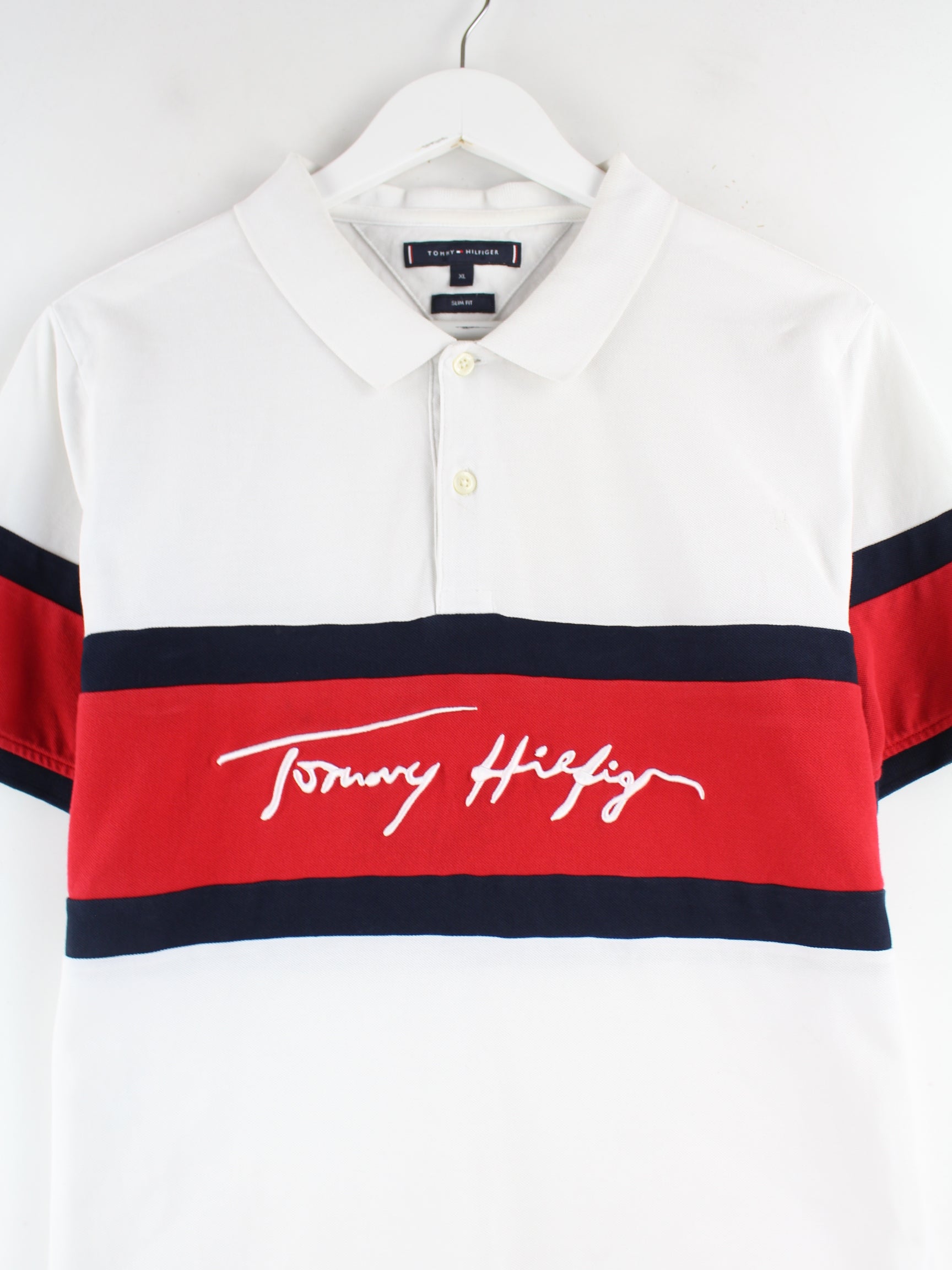 Poloshirt vom Brand Tommy Hilfiger mit gesticktem Logo in Größe M. Es ist aus Baumwolle gefertigt und in Weiß zu bekommen.