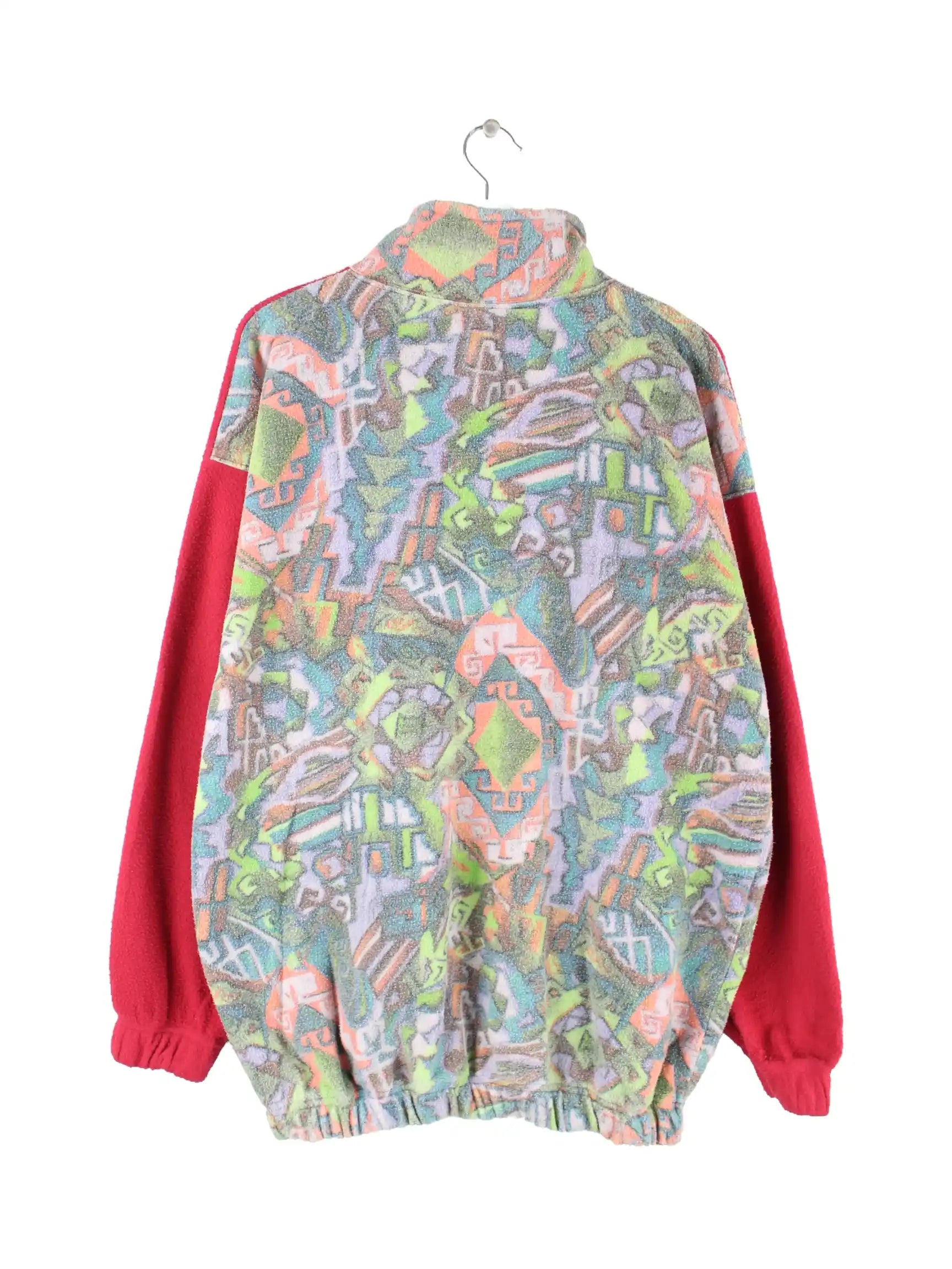 Vintage 80s Crazy Pattern Fleece Jacke Rot L