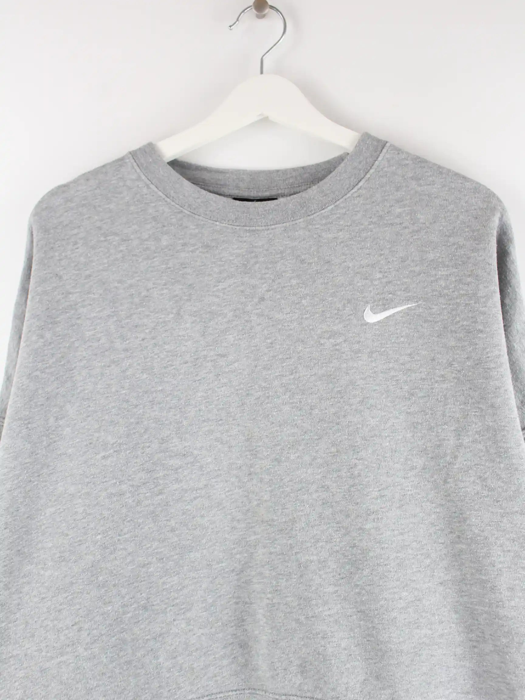 Grauer Sweater aus dem Hause Nike in Größe L. Er ist aus einer Baumwollmischung gefertigt und in sehr gutem Zustand bei uns vorrätig.