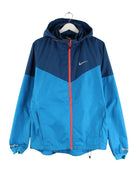 Blaue Leichte Jacke vom Brand Nike in Größe M. Sie ist aus Synthetik hergestellt und in gutem Zustand bei uns vorrätig.