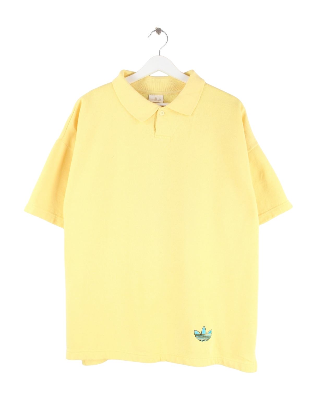 Gelbes Poloshirt des Labels Adidas aus den 80'ern in Größe L. Es ist aus Baumwolle hergestellt. Den Zustand würden wir als 'In Ordnung' bezeichnen (vergl. Bilder).