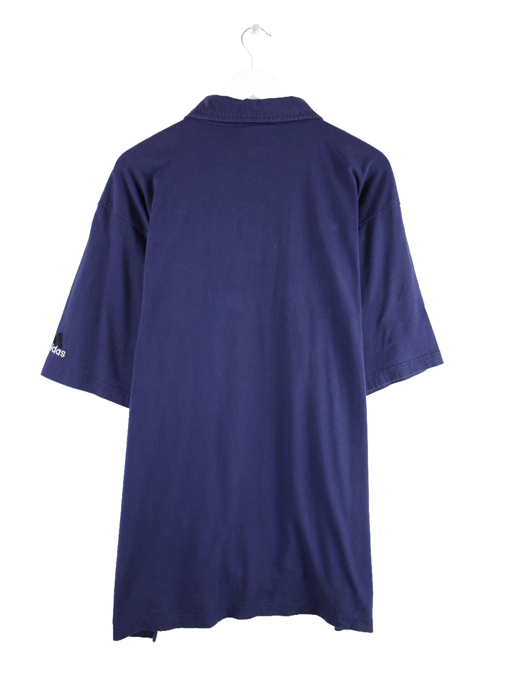 Blaues Poloshirt vom Brand Adidas aus den 90'ern in Größe 3XL. Es ist aus Baumwolle gefertigt und in gutem Zustand in Stock.