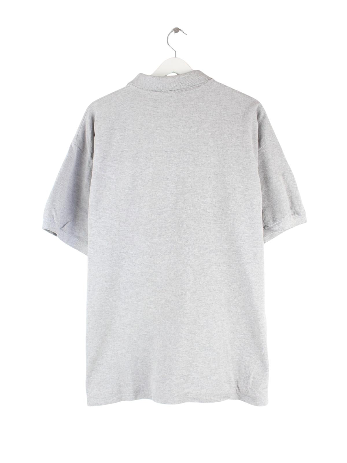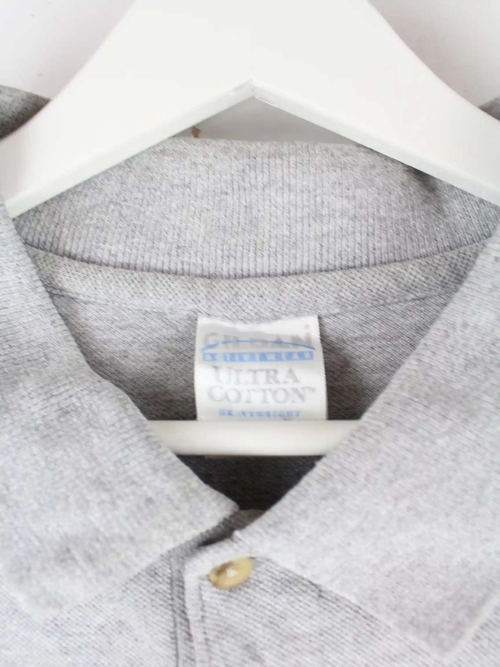 Graues Poloshirt vom Label Gildan aus den 90'ern in Größe L. Es ist aus Baumwolle produziert und in gutem Zustand bei uns vorrätig.