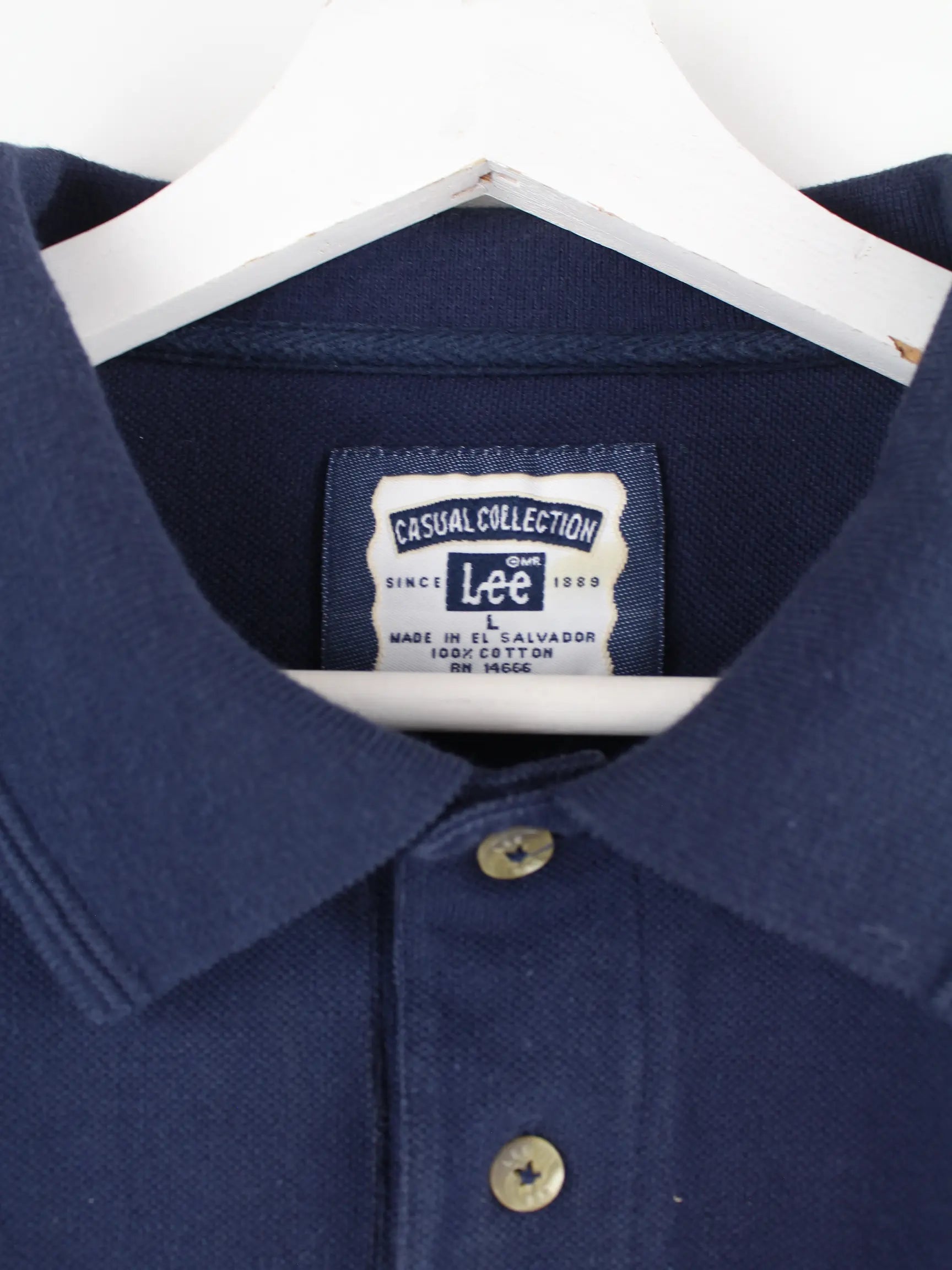 Blaues Poloshirt vom Label Lee in Größe L. Es ist aus Baumwolle produziert und in sehr gutem Zustand im Bestand.