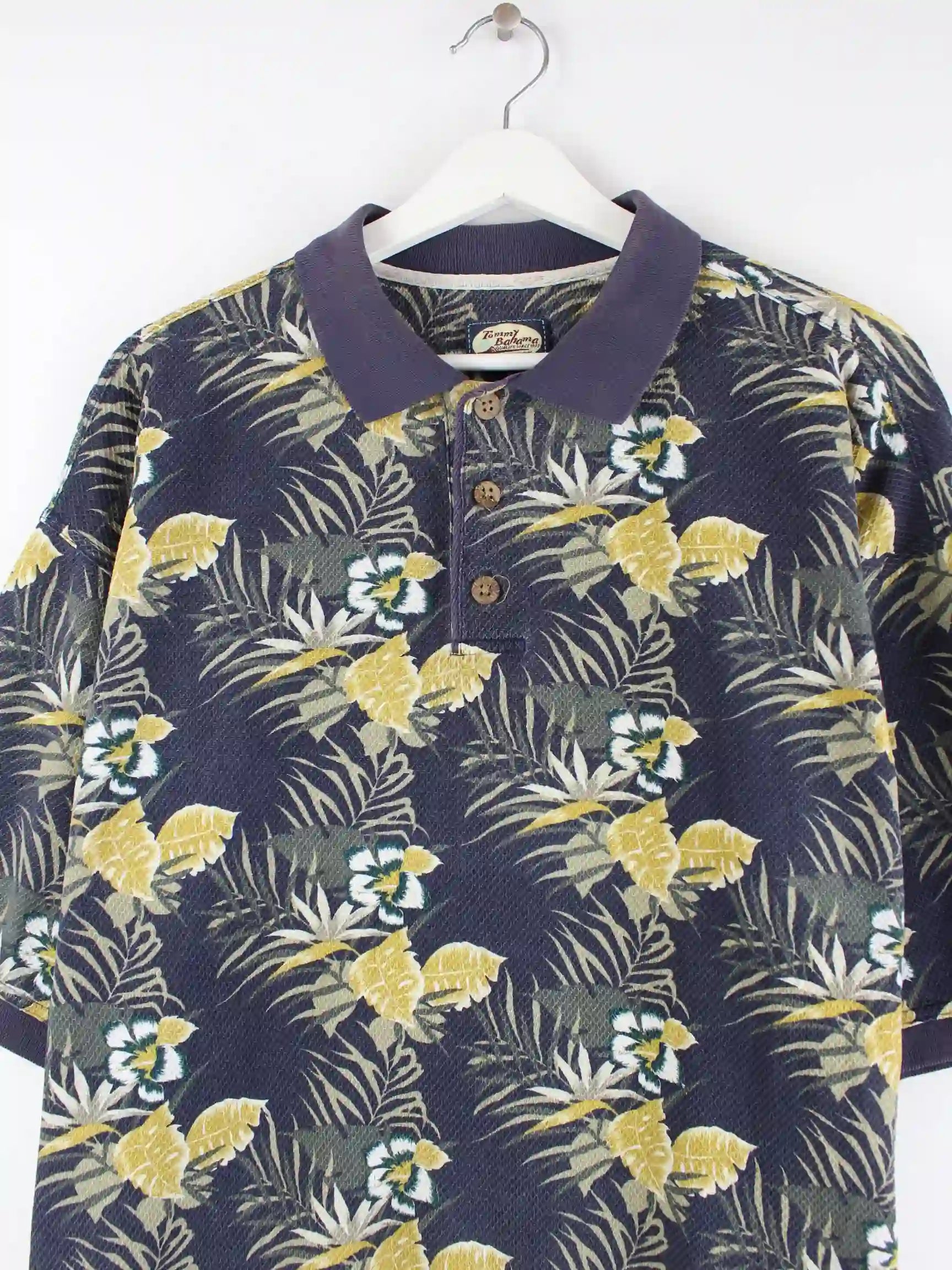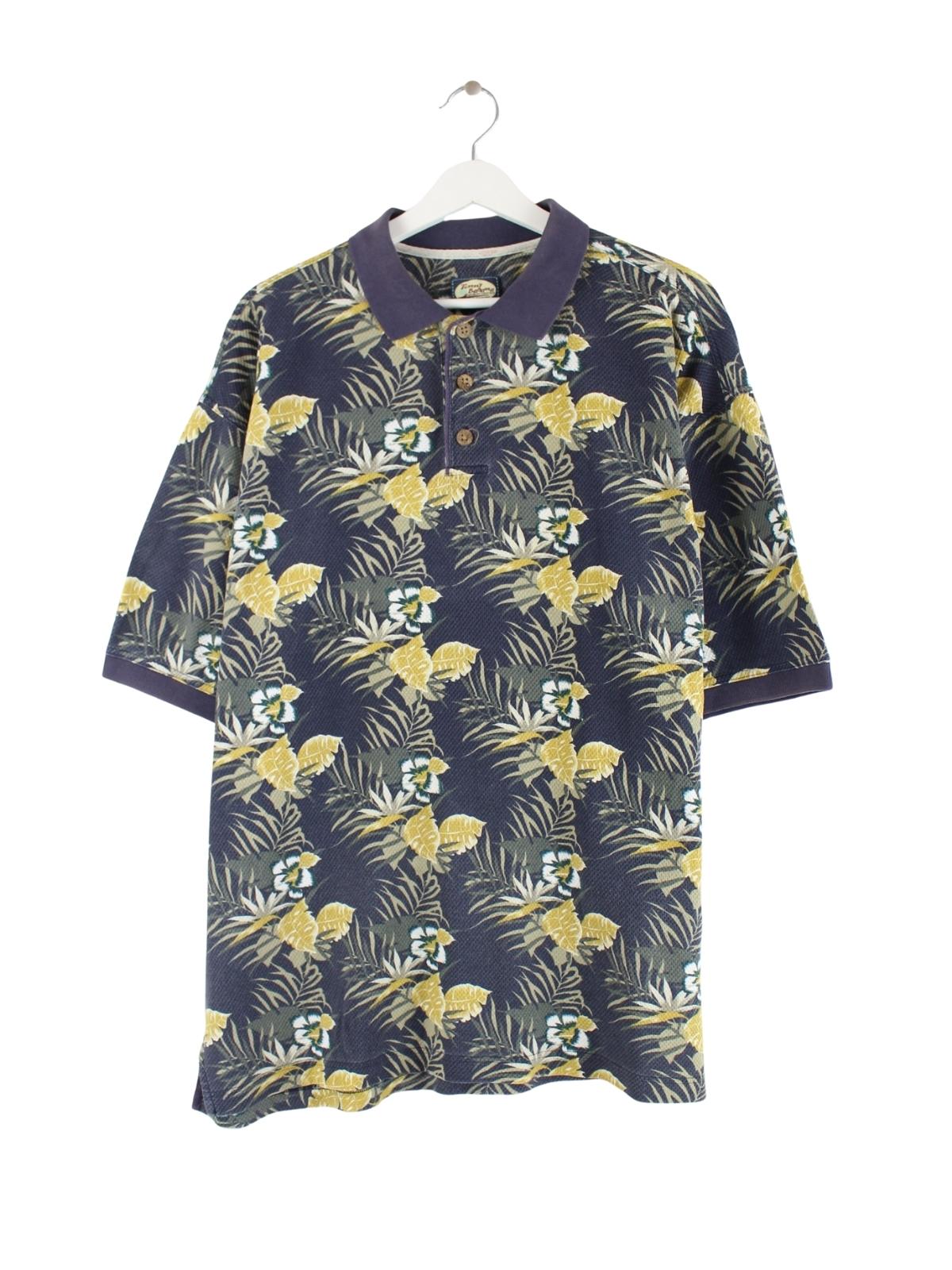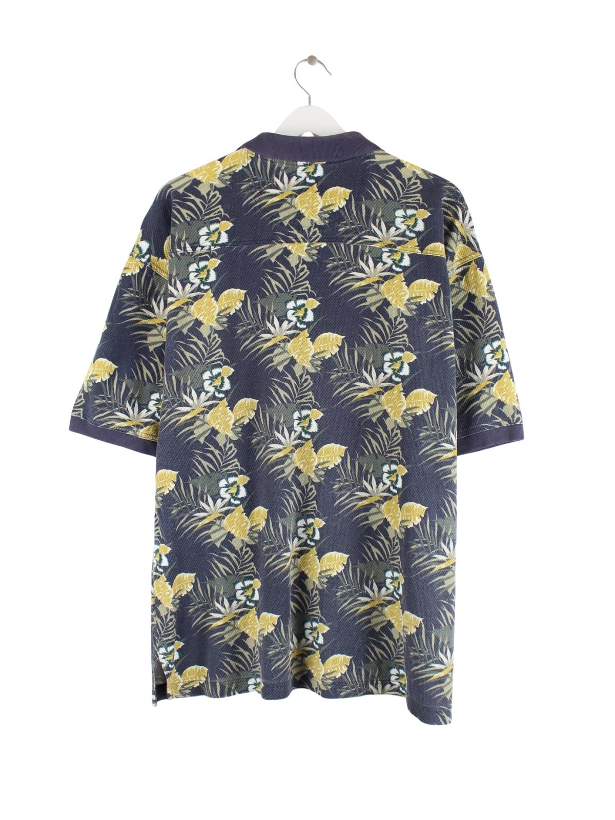 Tommy Bahama 90s Vintage Flower Pattern Polo Blau L
