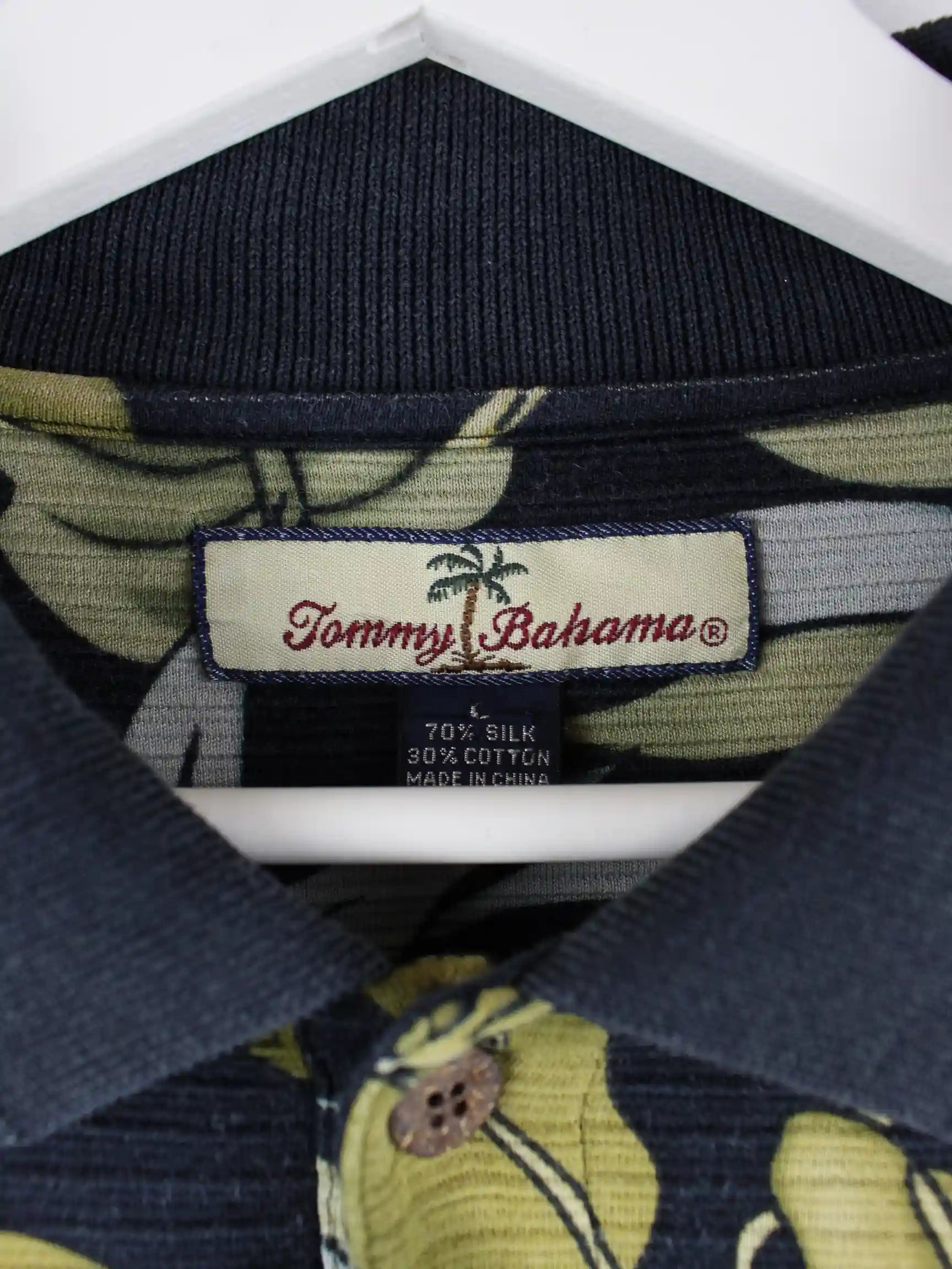 Poloshirt des Labels Tommy Bahama in Größe L aus den 90'ern. Es ist aus Seide gefertigt und in bunten Farben lieferbar.