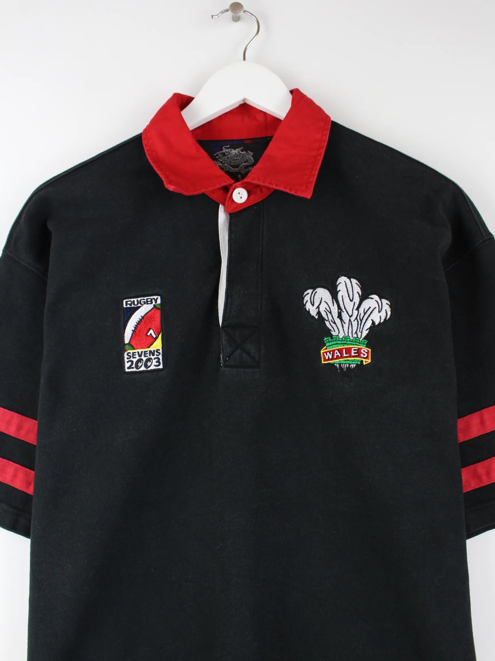 Vintage 2003 Wales Rugby Sevens Polo Schwarz S