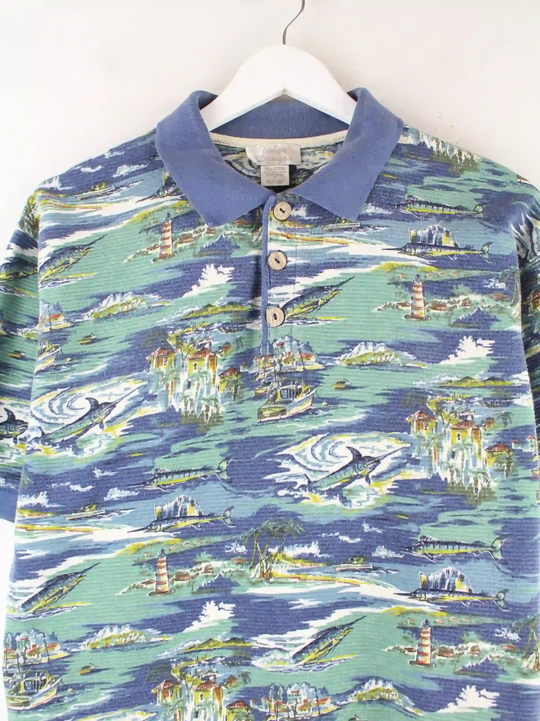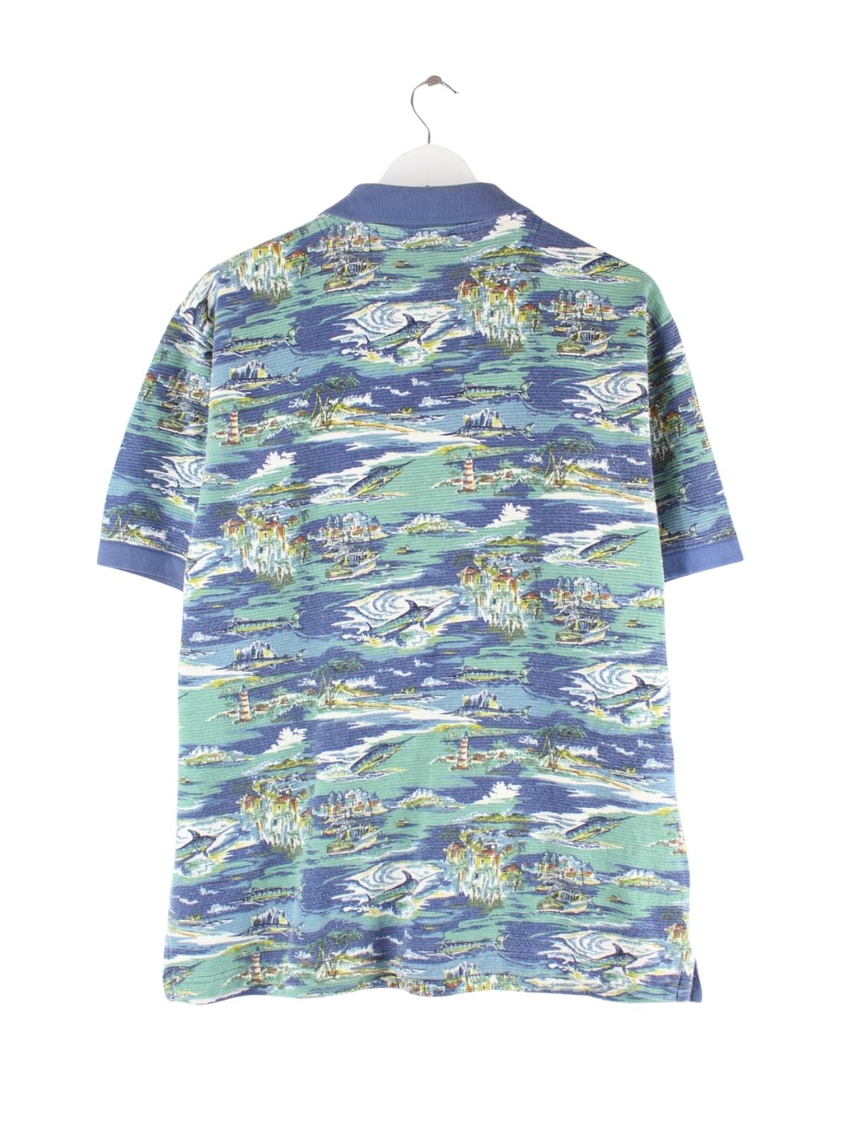 Blaues Vintage Poloshirt aus den 90'ern in Größe M. Es ist aus Baumwolle und in sehr gutem Zustand im Bestand.