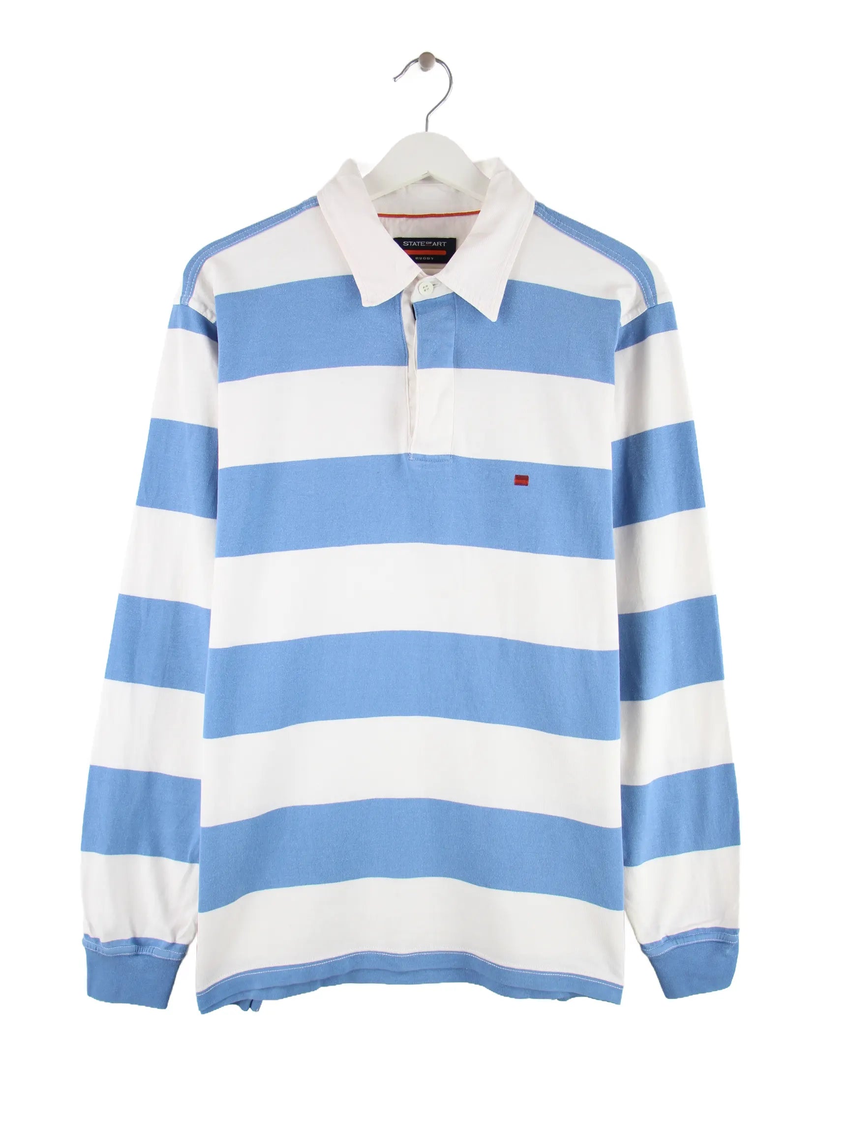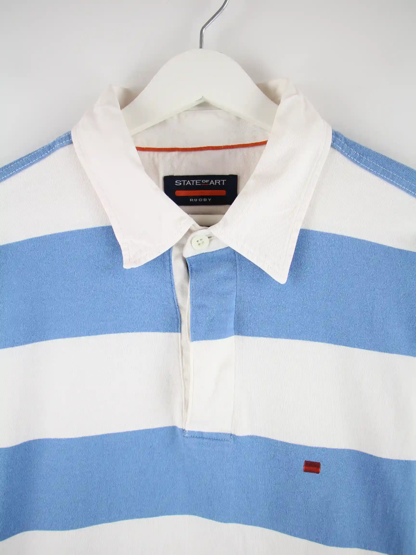 Vintage State of Art Stripe Langarm Polo Weiß/Blau M