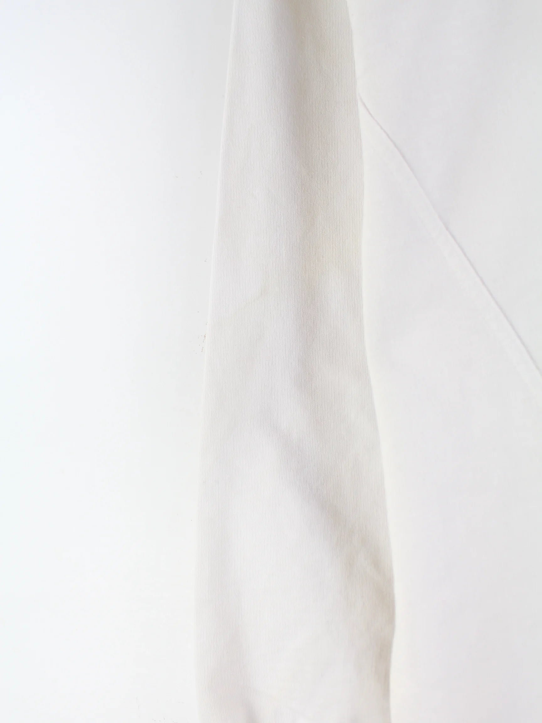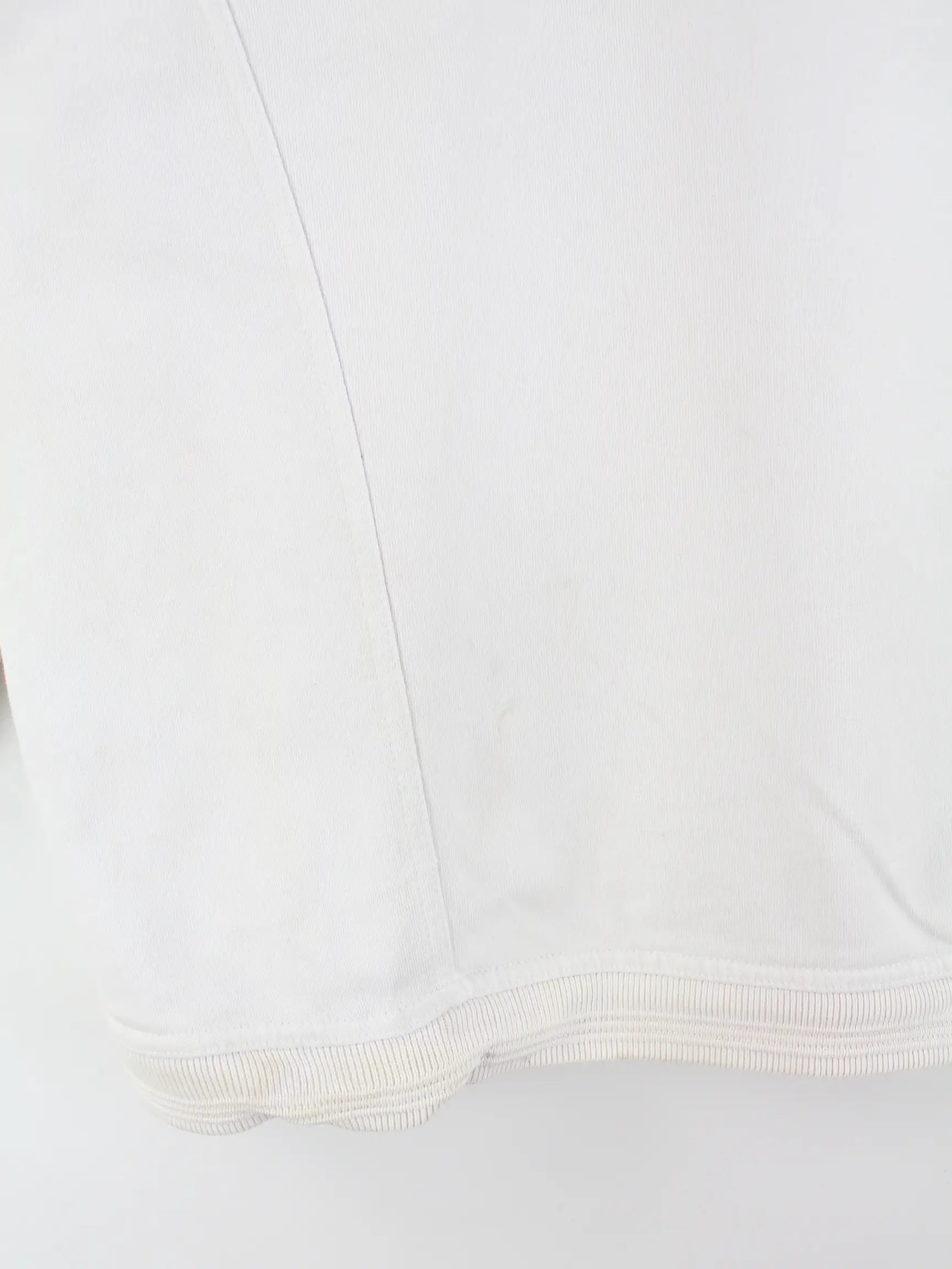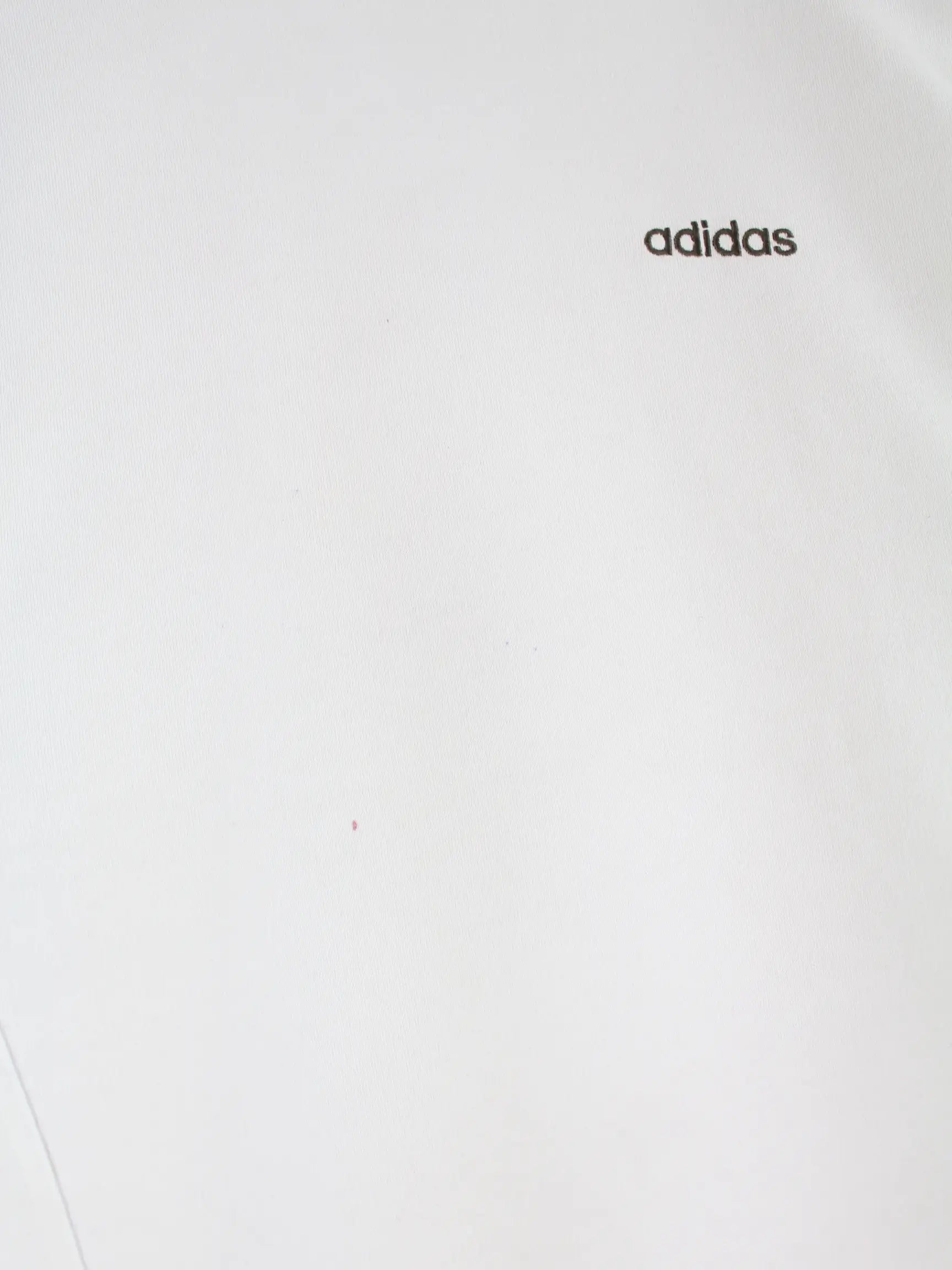 Weißer Sweater von Adidas aus den 90'ern in Größe S. Er ist aus einer Baumwollmischung angefertigt. Den Zustand würden wir als 'In Ordnung' bezeichnen (vergl. Bilder).