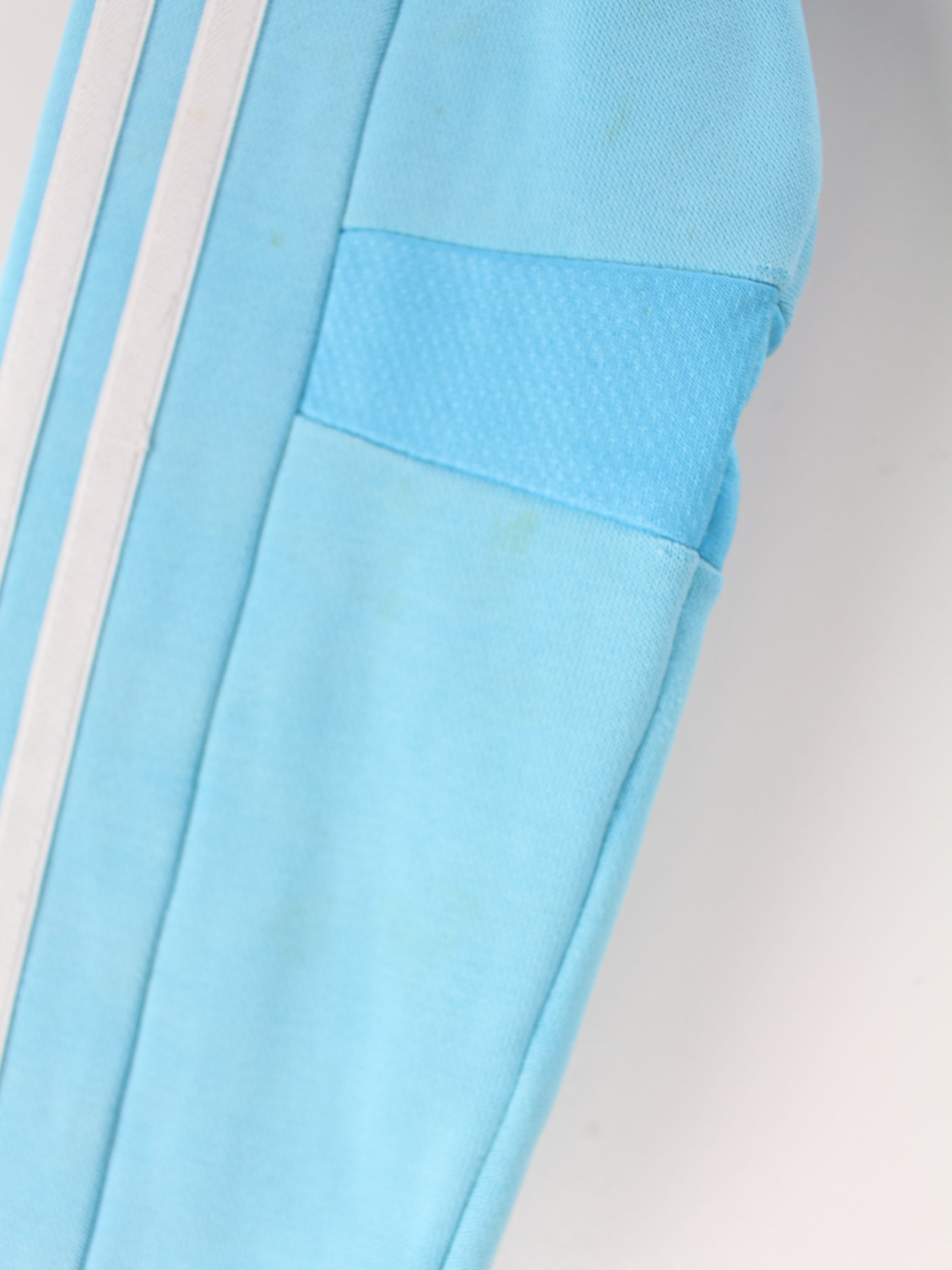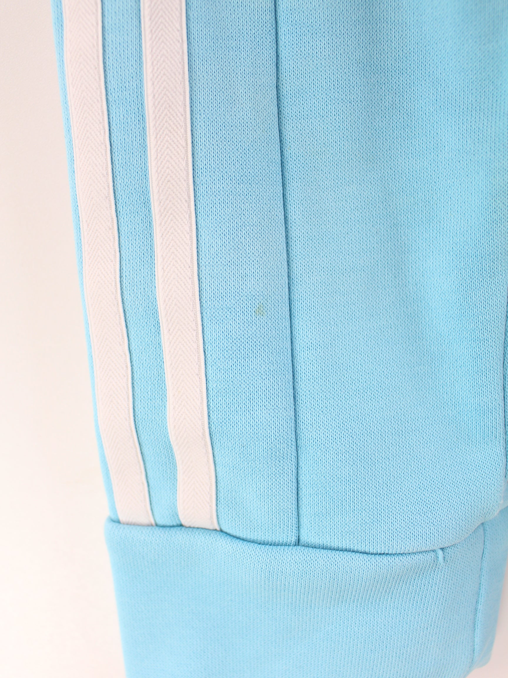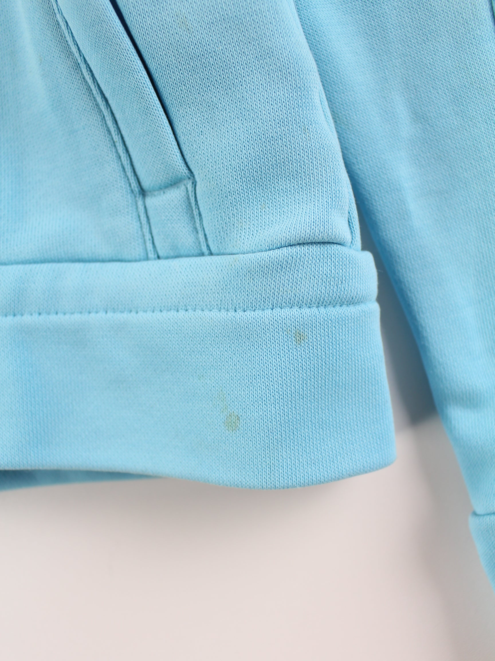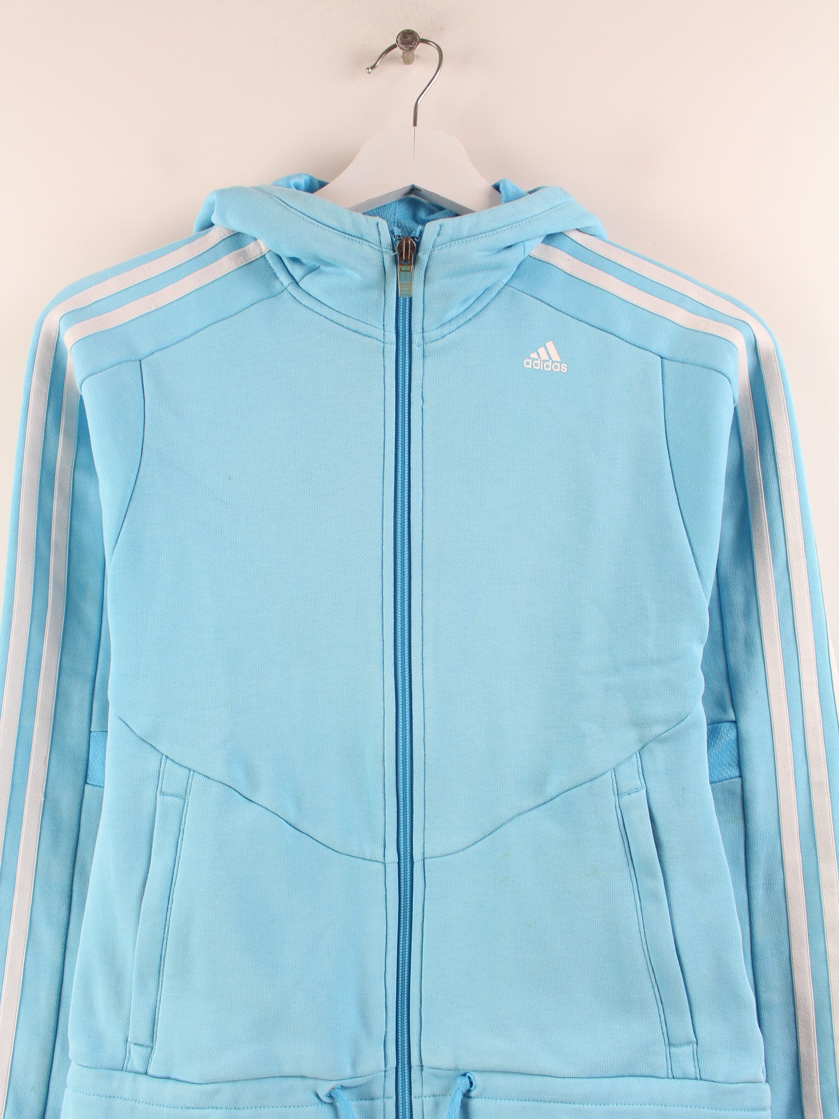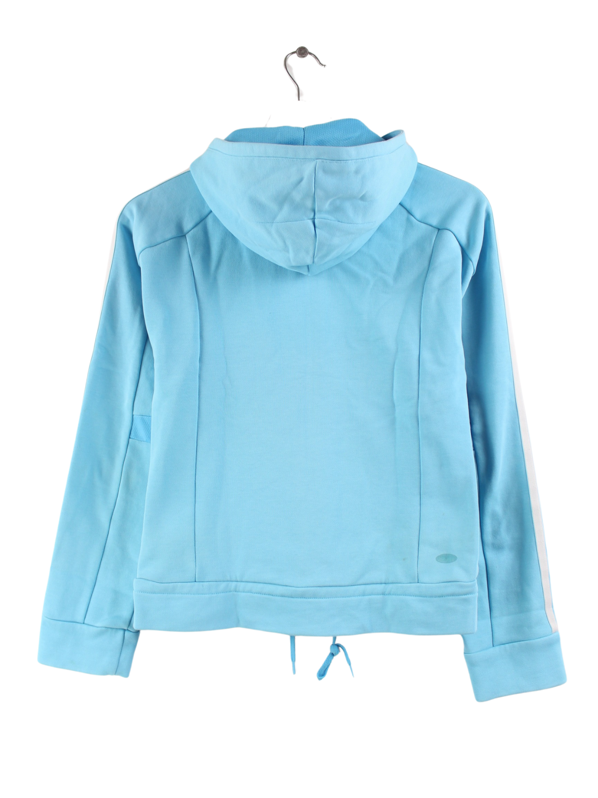 Hoodie von Adidas in Größe XXS aus Anfang der 2000'er. Er ist aus einer Baumwollmischung produziert und in Blau bei uns zu bekommen.