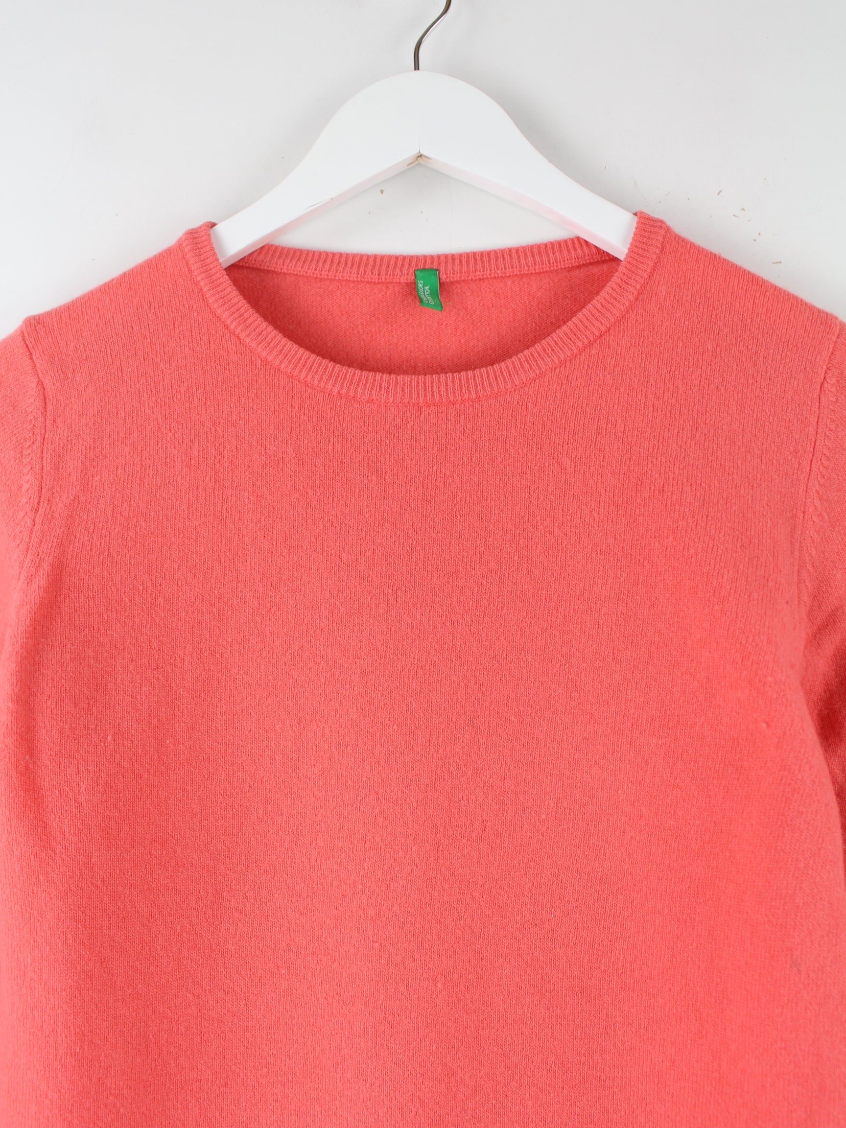 Orangefarbener Pullover des Labels Benetton in Größe XS. Er ist aus Baumwolle angefertigt. Den Zustand würden wir als 'In Ordnung' bezeichnen (vergl. Bilder).
