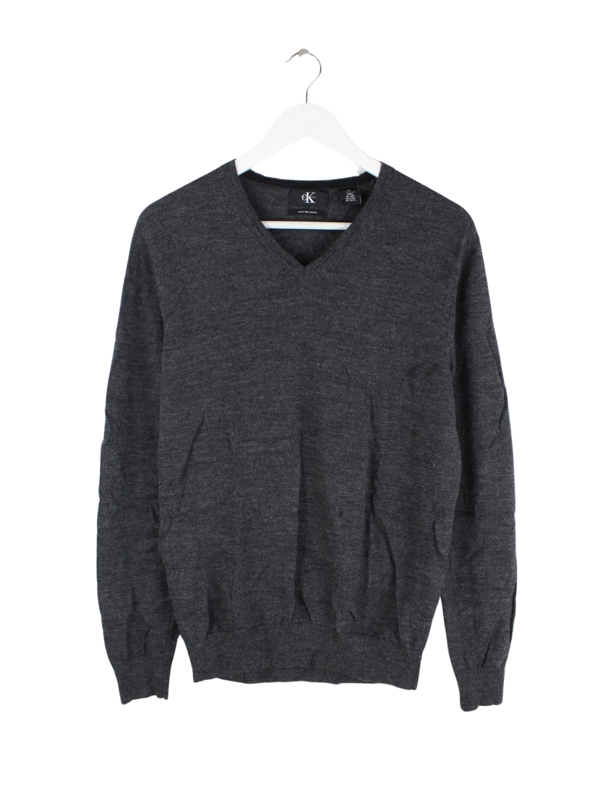 Grauer Pullover aus dem Hause Calvin Klein in Größe M. Er ist aus Wolle produziert. Den Zustand würden wir als 'In Ordnung' bezeichnen (vergl. Bilder).