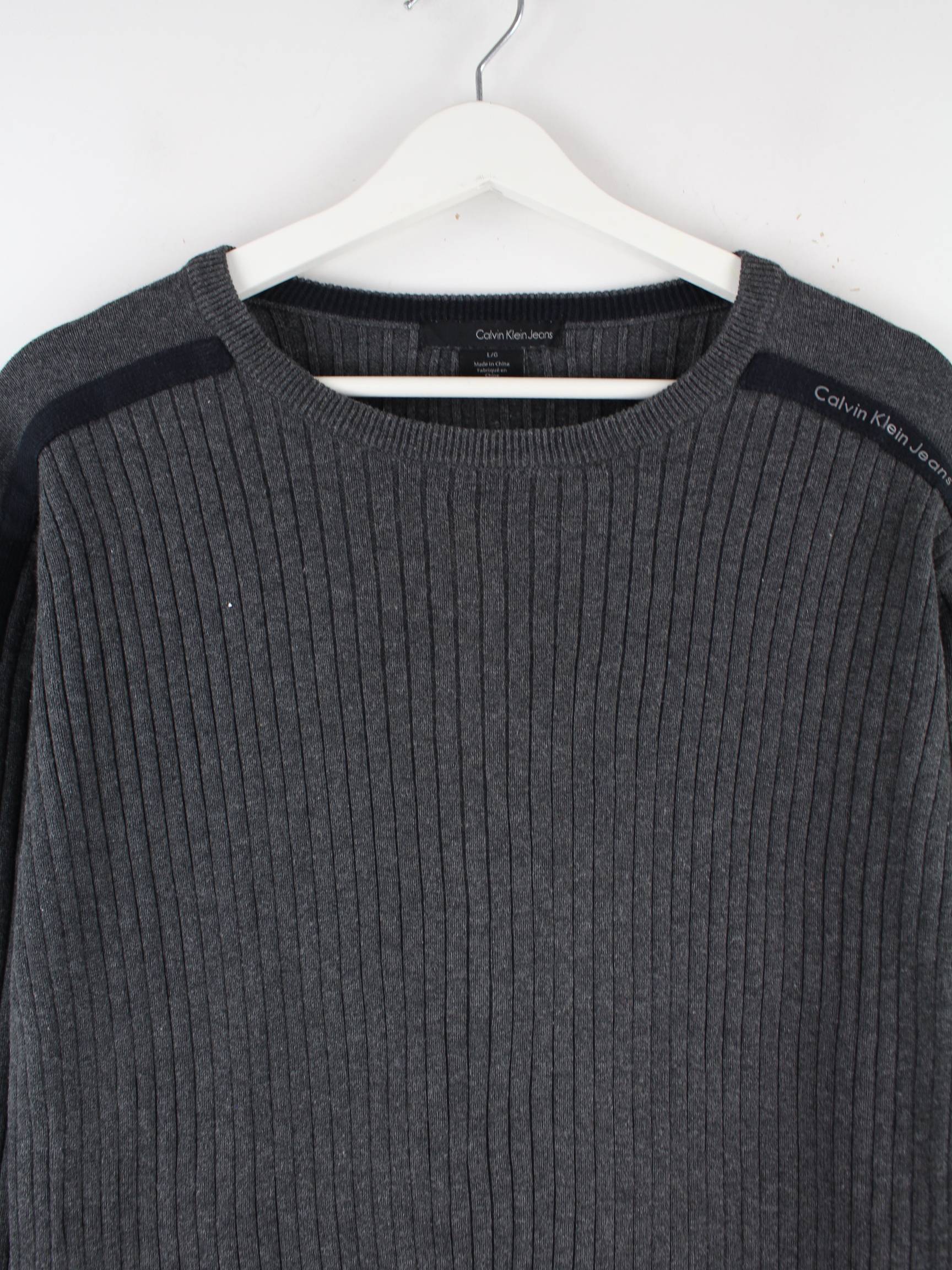 Grauer Pullover von Calvin Klein in Größe L. Er ist aus Baumwolle gemacht und in sehr gutem Zustand im Bestand.