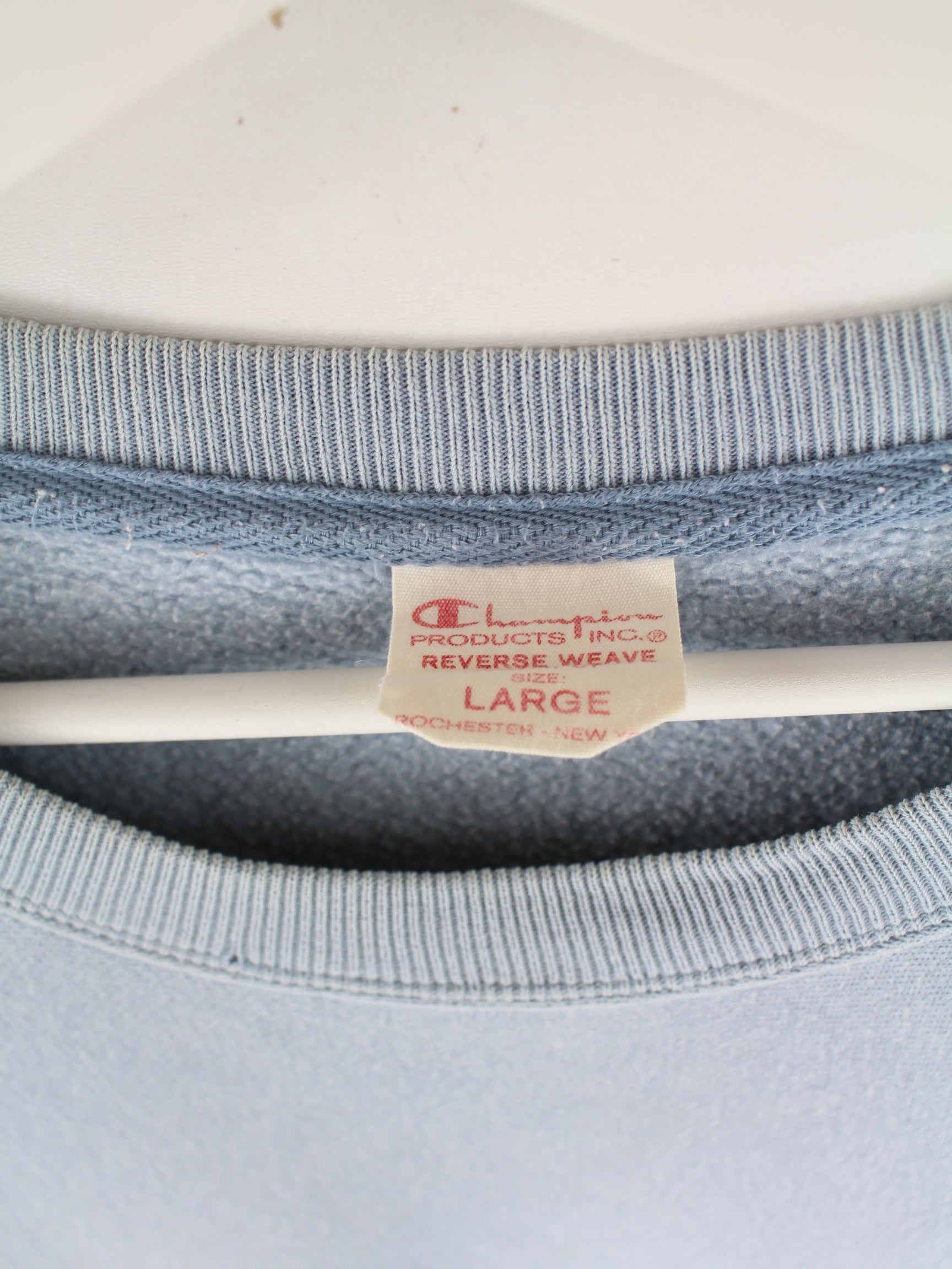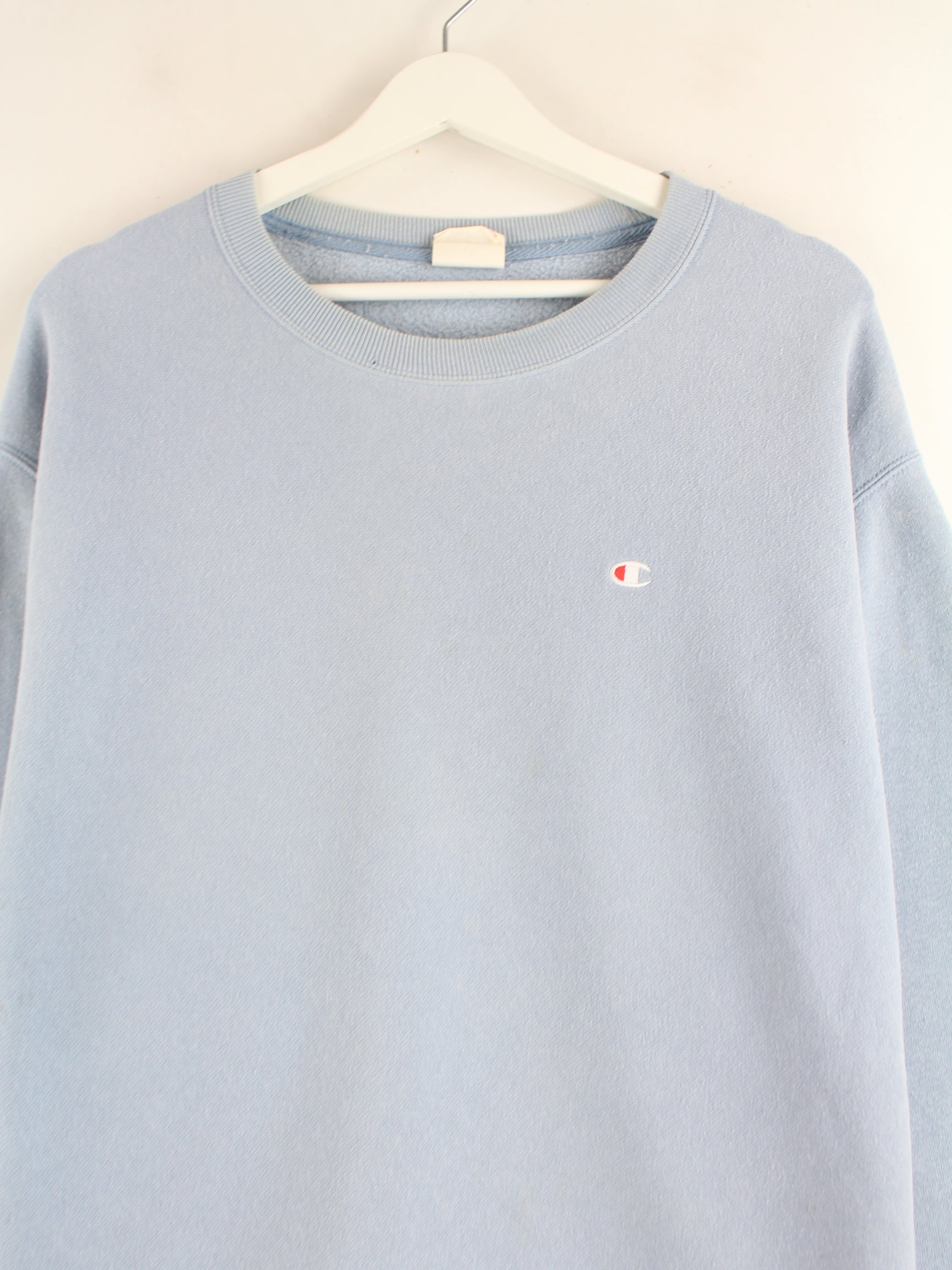 Sweater aus dem Hause Champion in Größe L. Er ist aus einer Baumwollmischung gefertigt und in Blau zu haben.