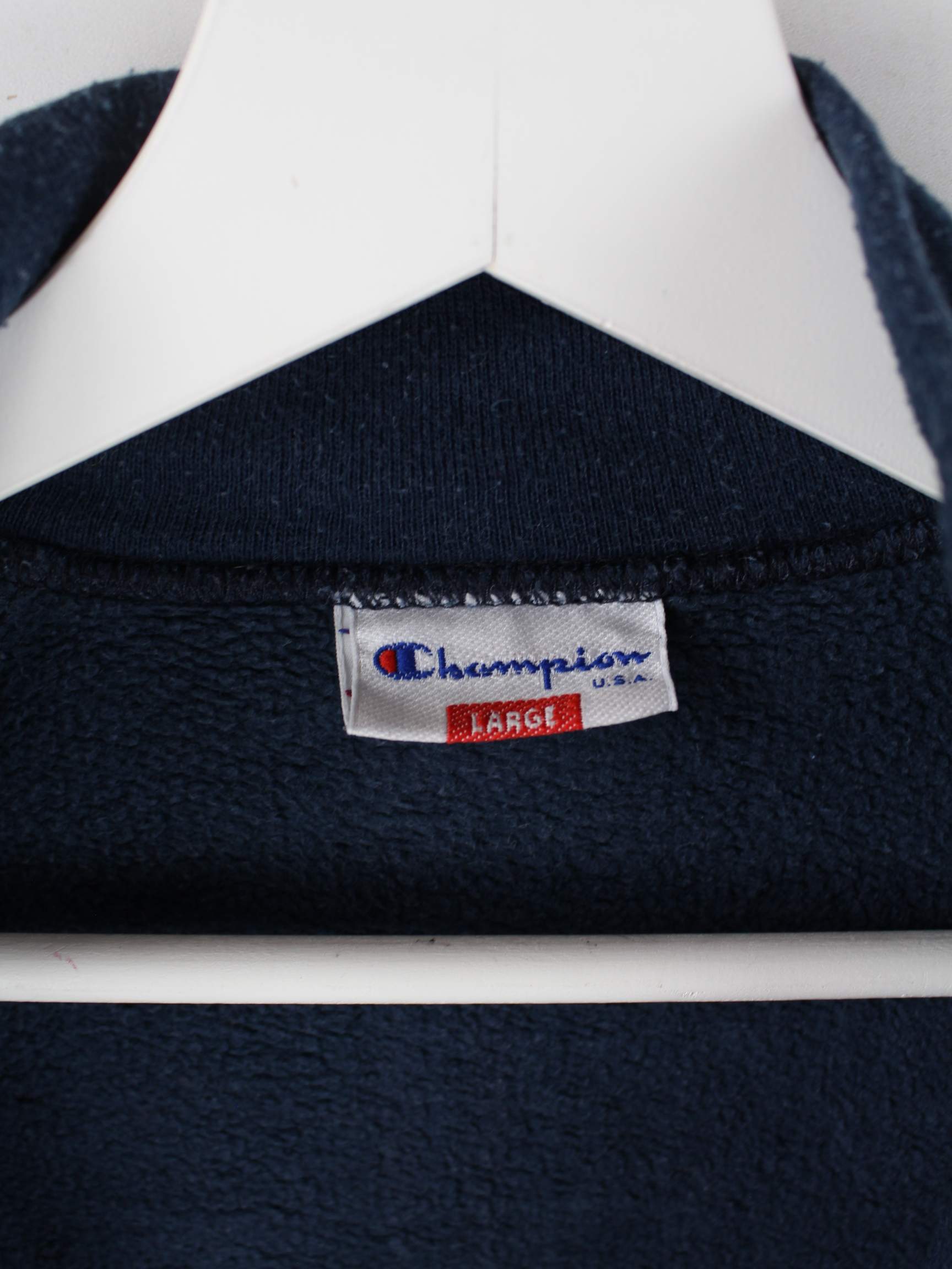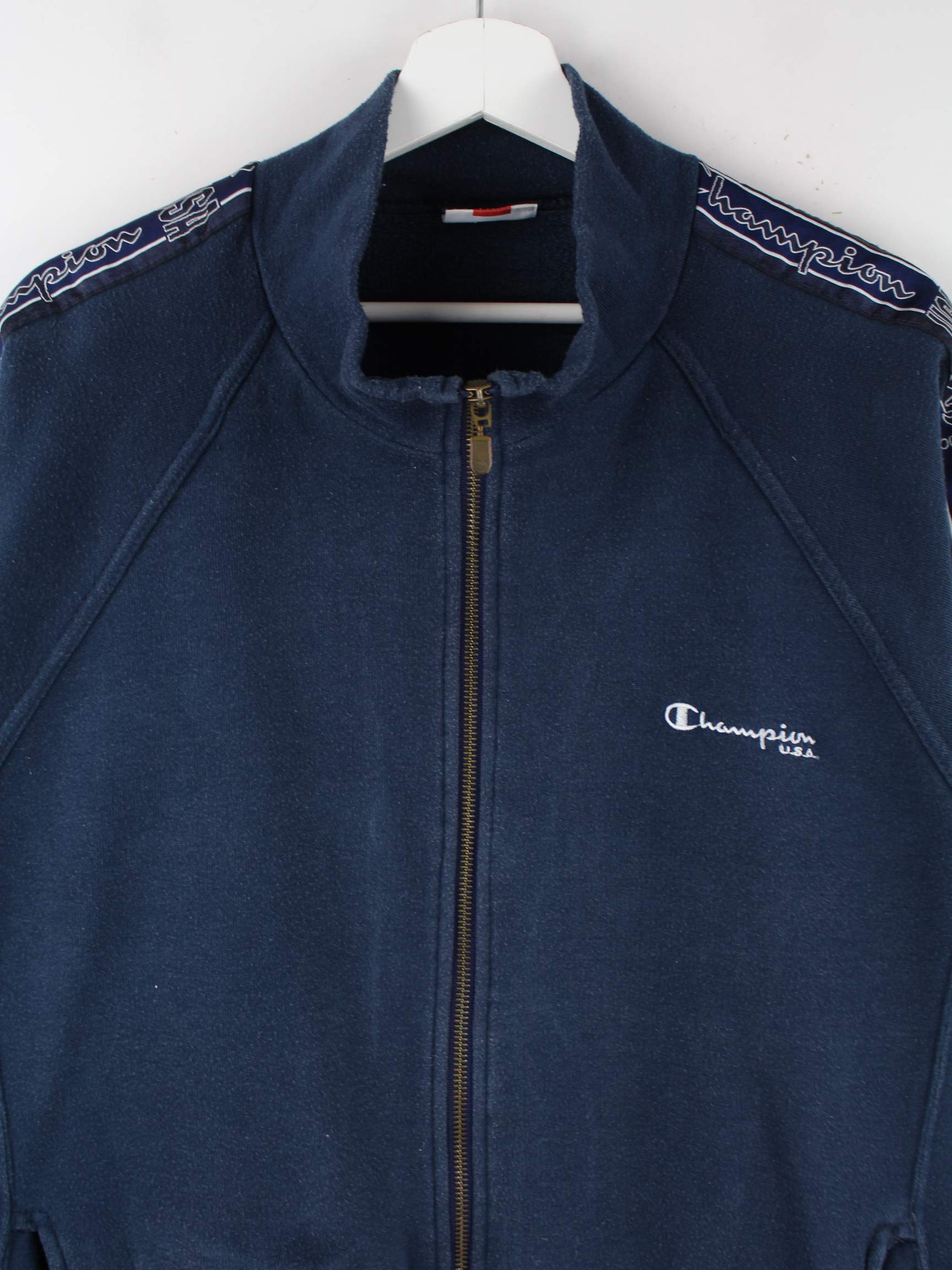 Blaue Sweatjacke vom Label Champion in Größe L. Sie ist aus einer Baumwollmischung und in sehr gutem Zustand vorrätig.
