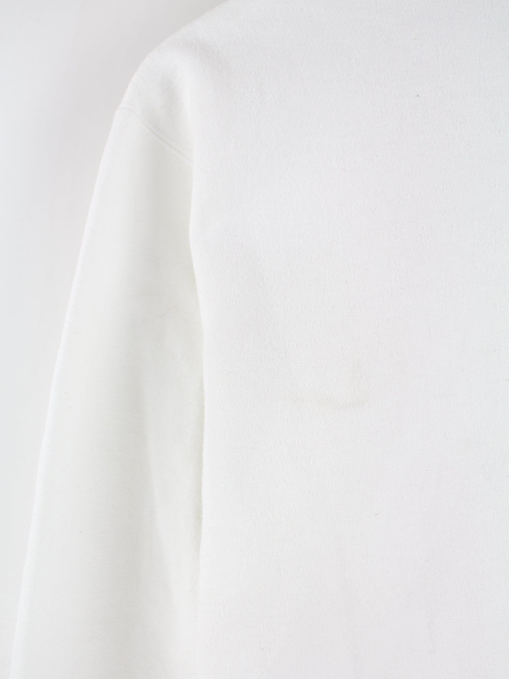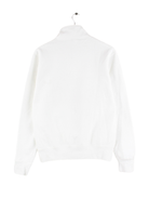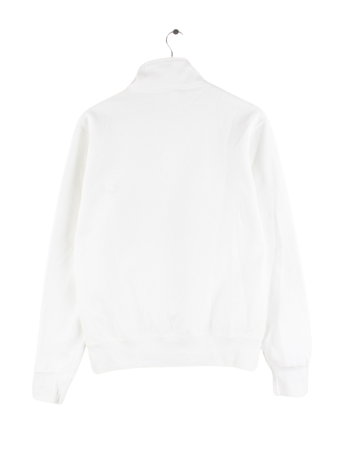 Weißer Sweater mit Stickereien und kurzem Reißverschluß der Brand Champion in Größe S. Er ist aus einer Baumwollmischung produziert und in gutem Zustand auf Lager.