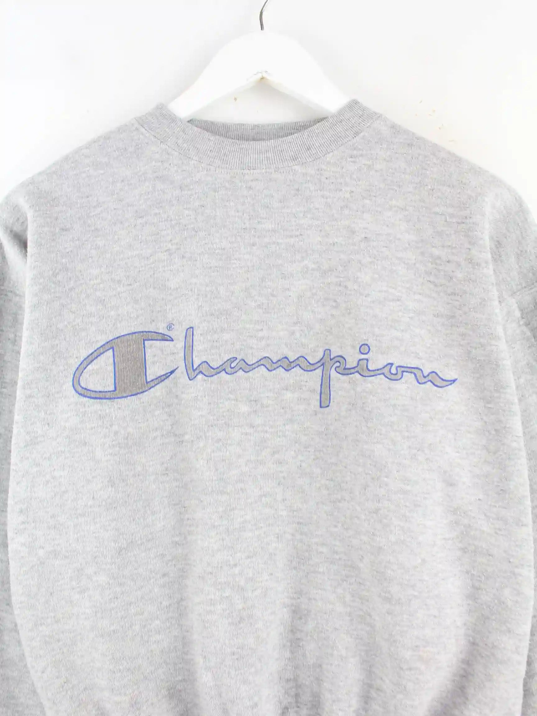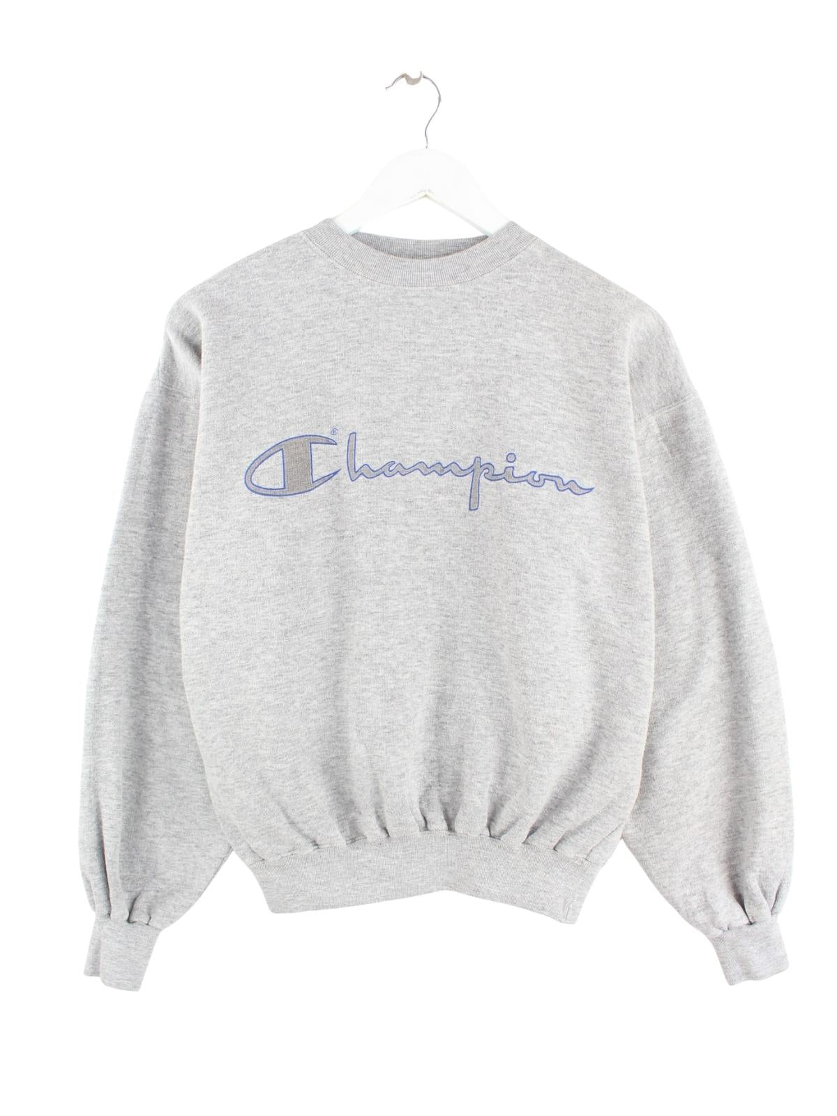 Sweater vom Brand Champion in Größe S aus den 90'ern. Er ist aus einer Baumwollmischung hergestellt und in Grau lieferbar. Mit seltenem Vintage Print.