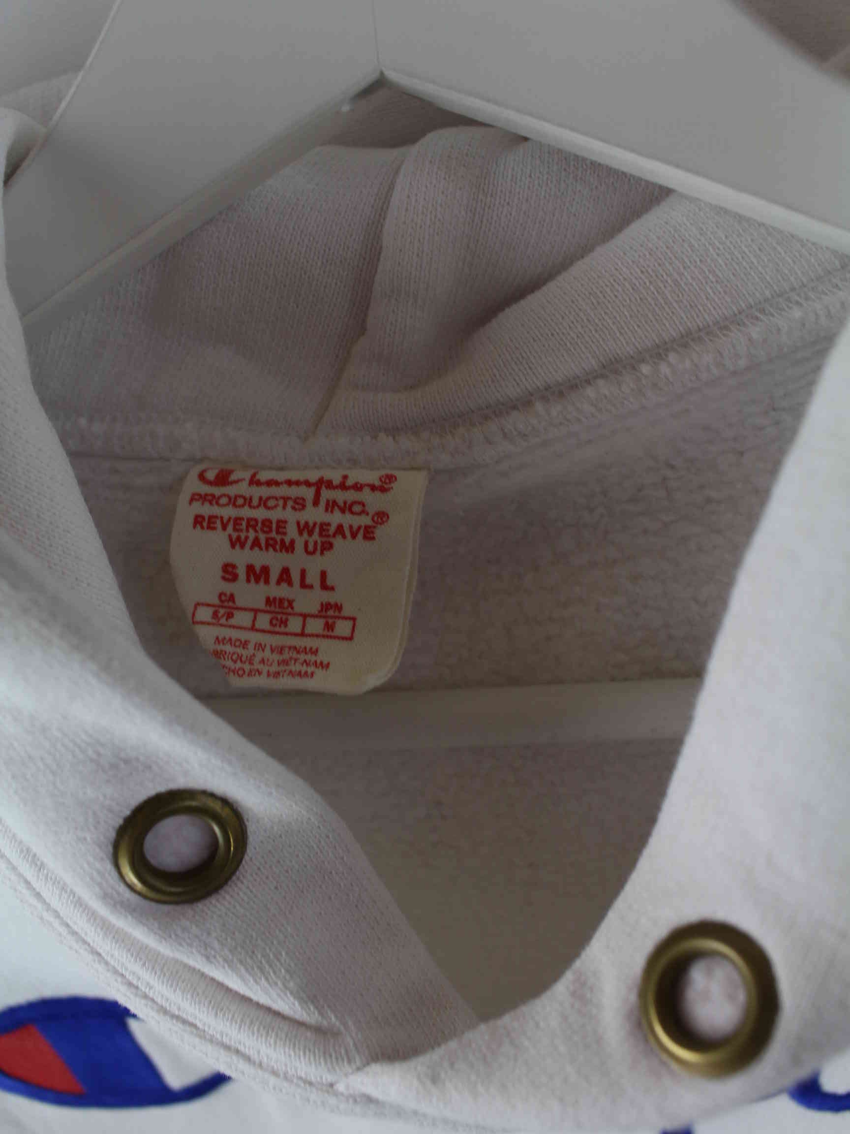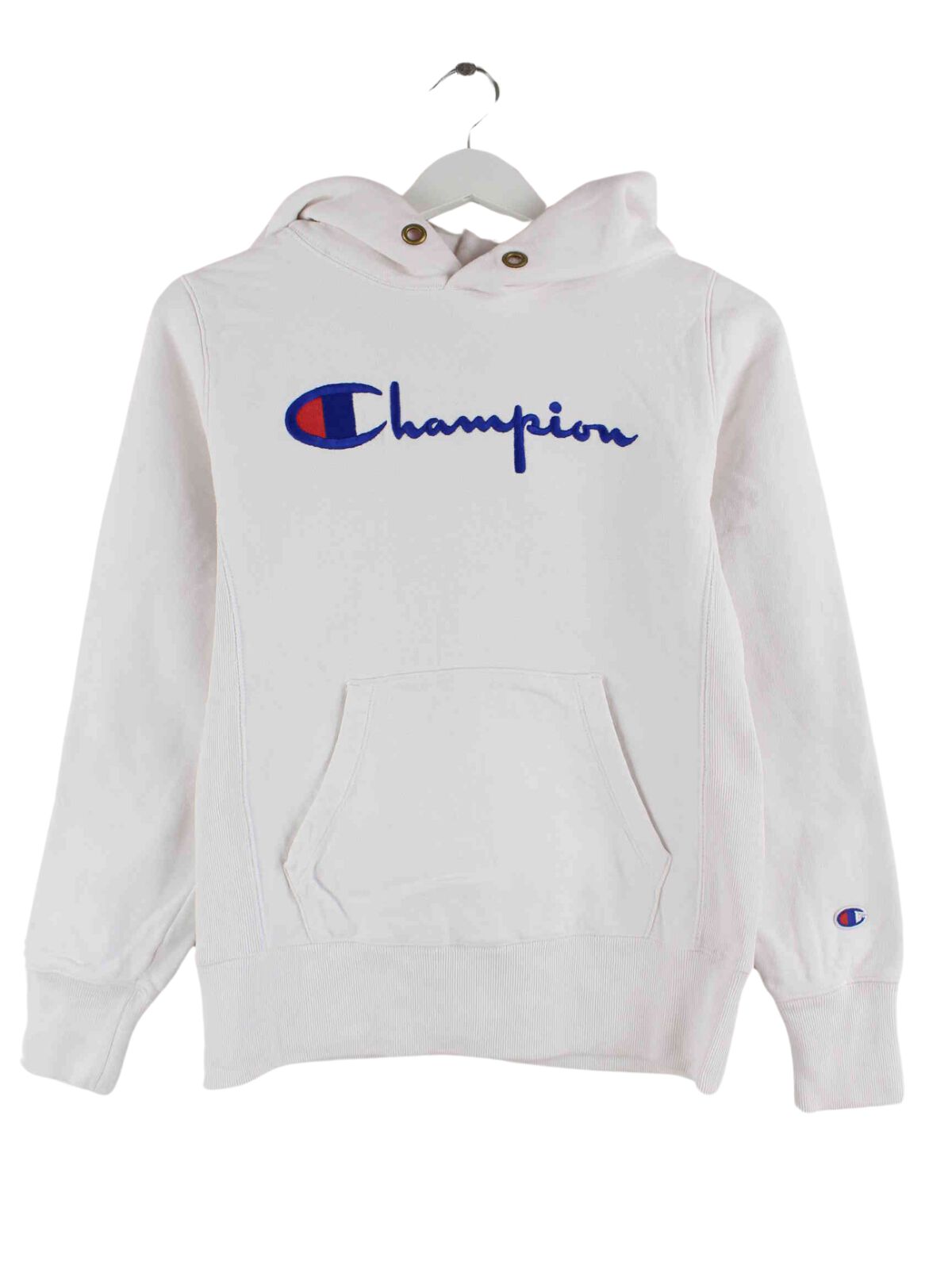 Hoodie vom Brand Champion in Größe S aus Anfang der 2000'er. Er ist aus einer Baumwollmischung angefertigt und in Weiß im Bestand.
