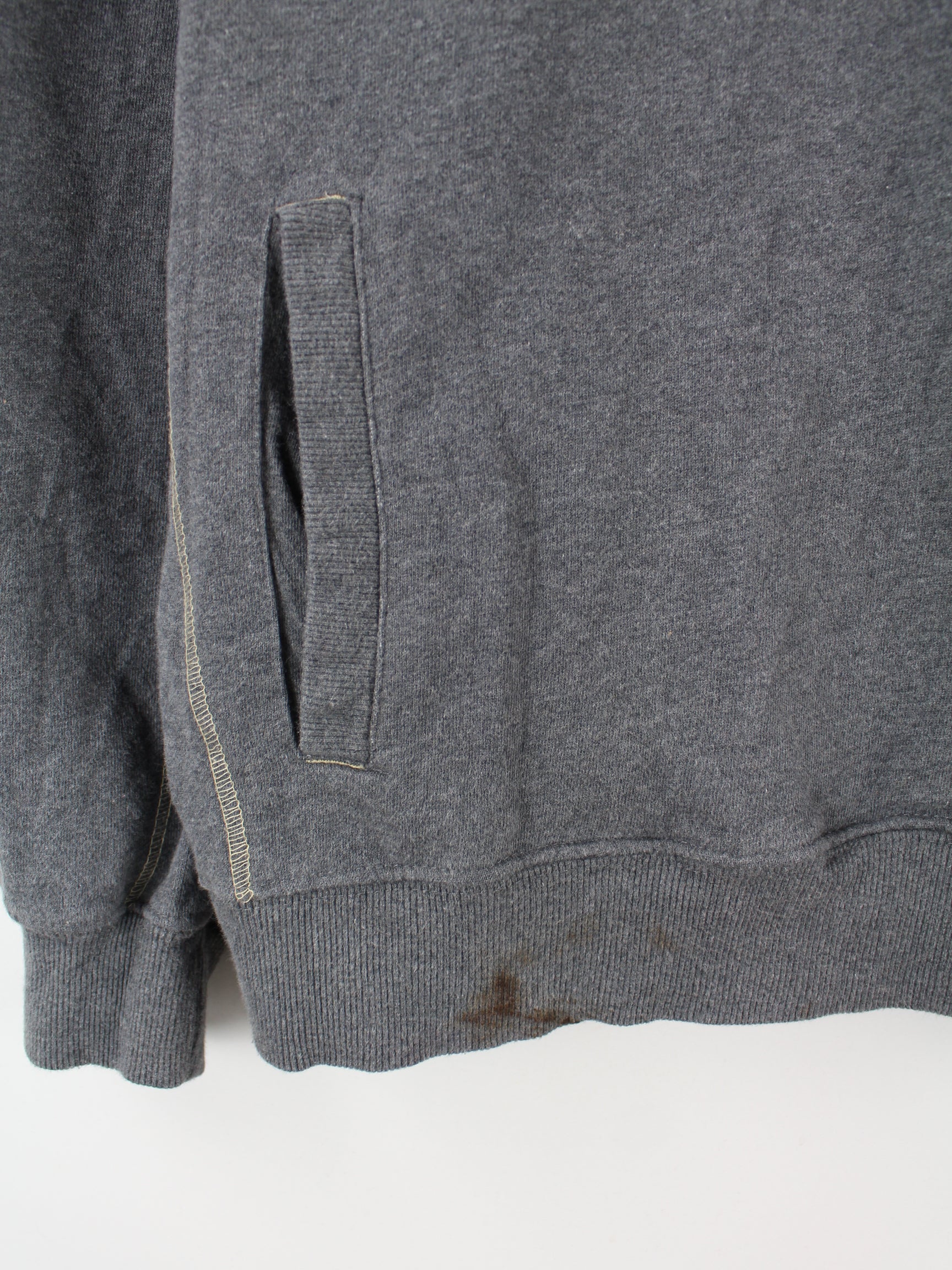 Sweater vom Label Champion mit Stick und halbem Reißverschluß in Größe XXL. Er ist aus einer Baumwollmischung angefertigt und in Grau auf Lager.